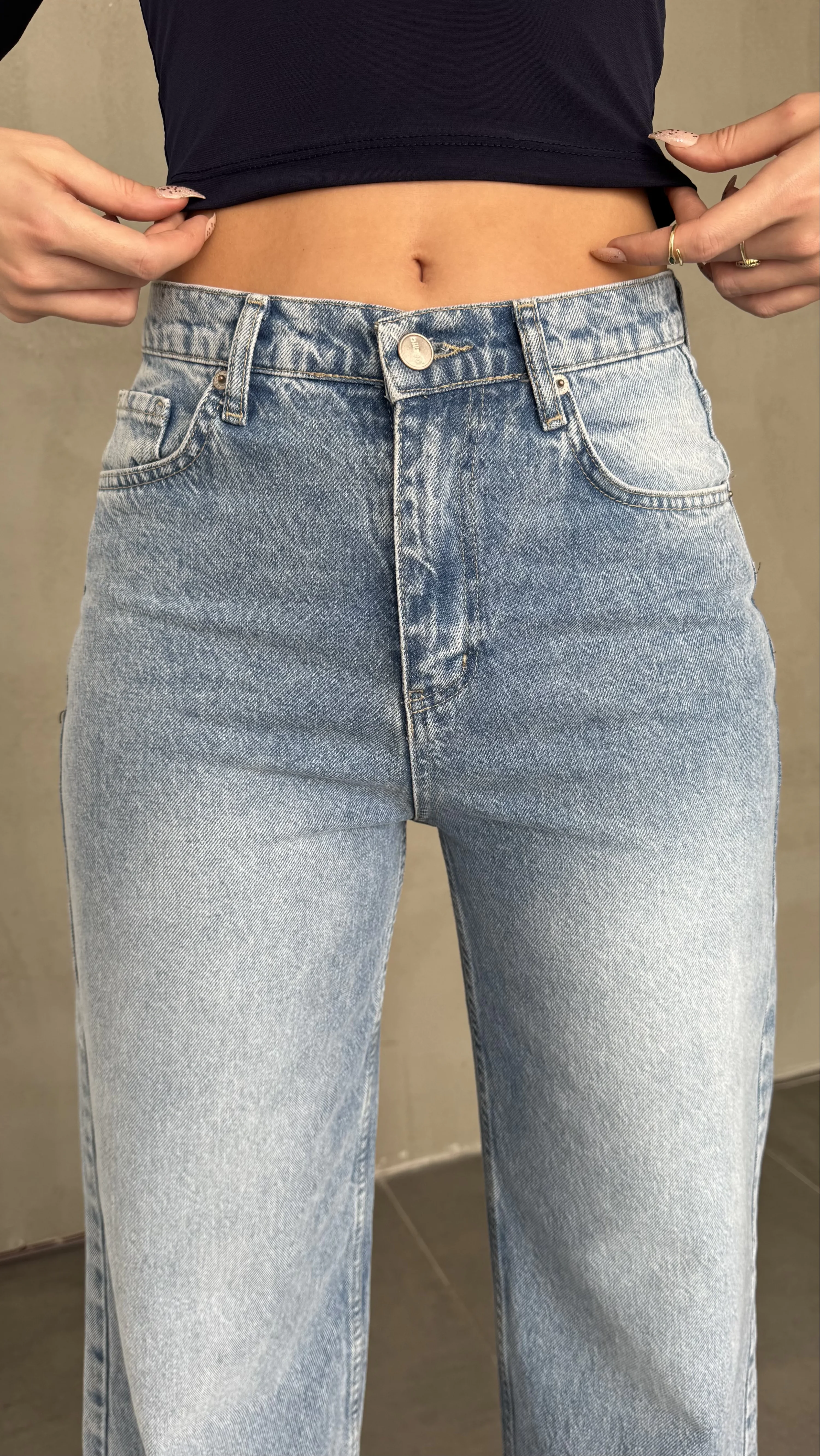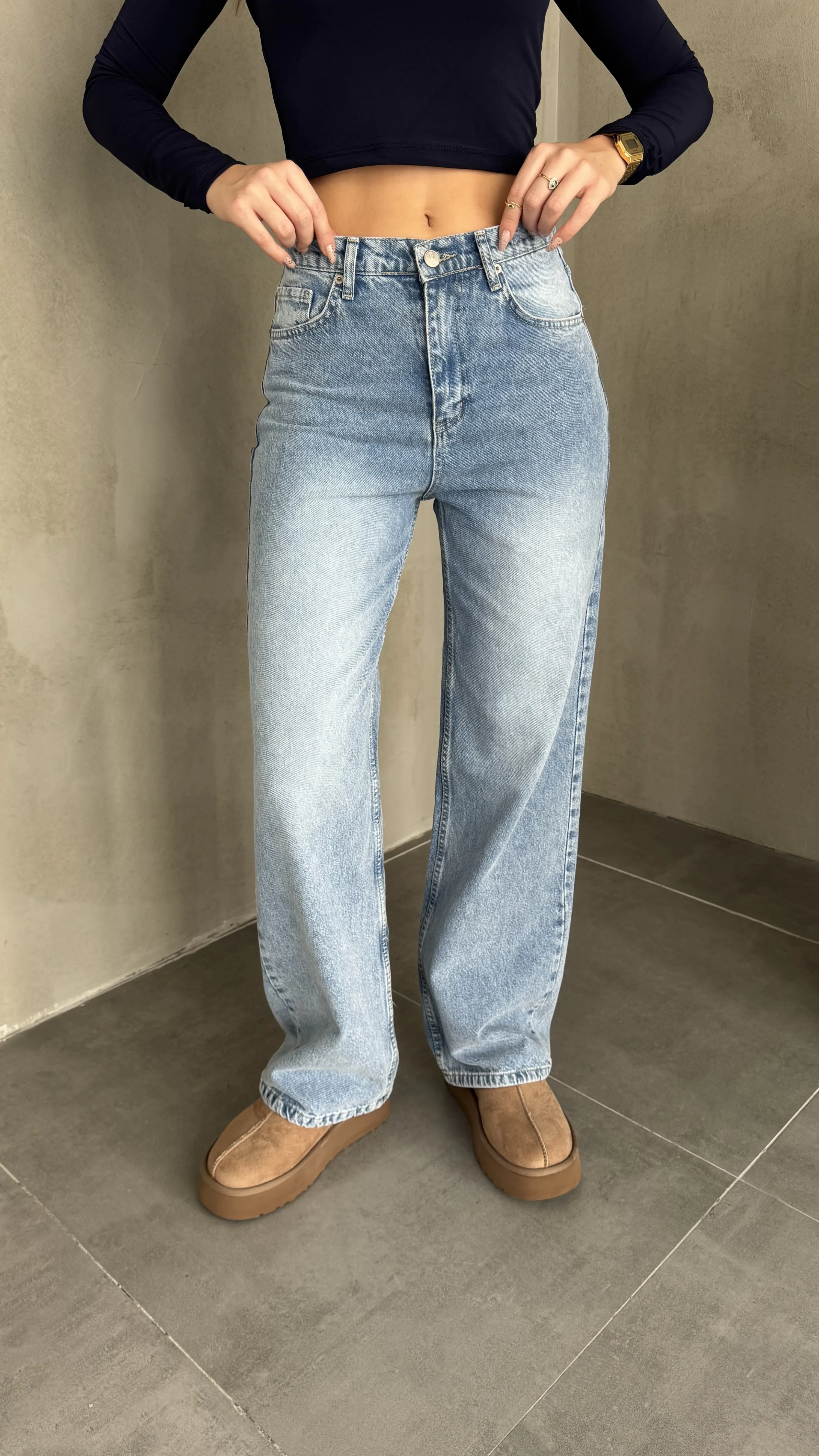 Açık Mavi Yıkamalı Baggy Geniş Paça Yüksek Bel Wide Leg Jean Kot Pantolon