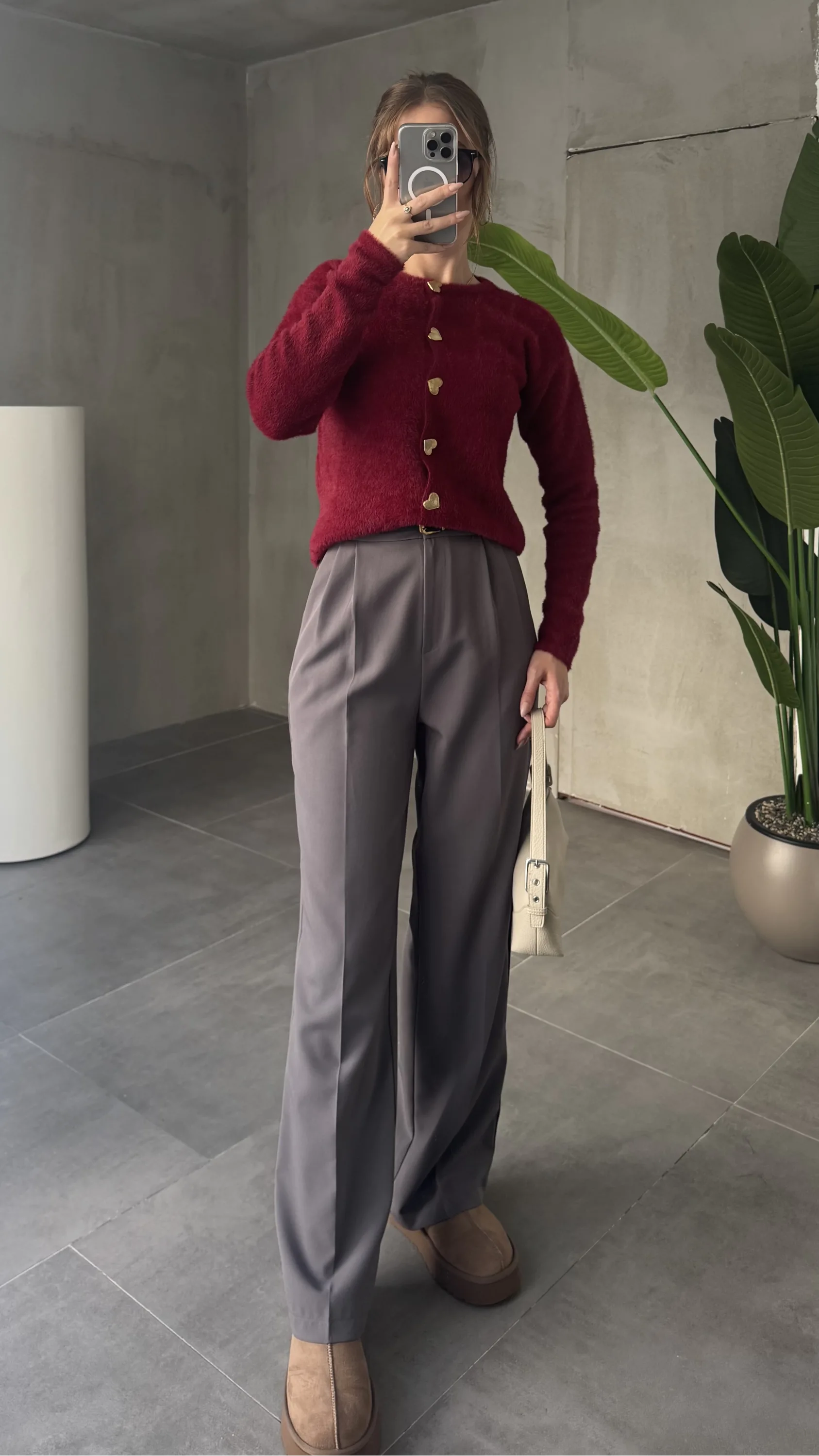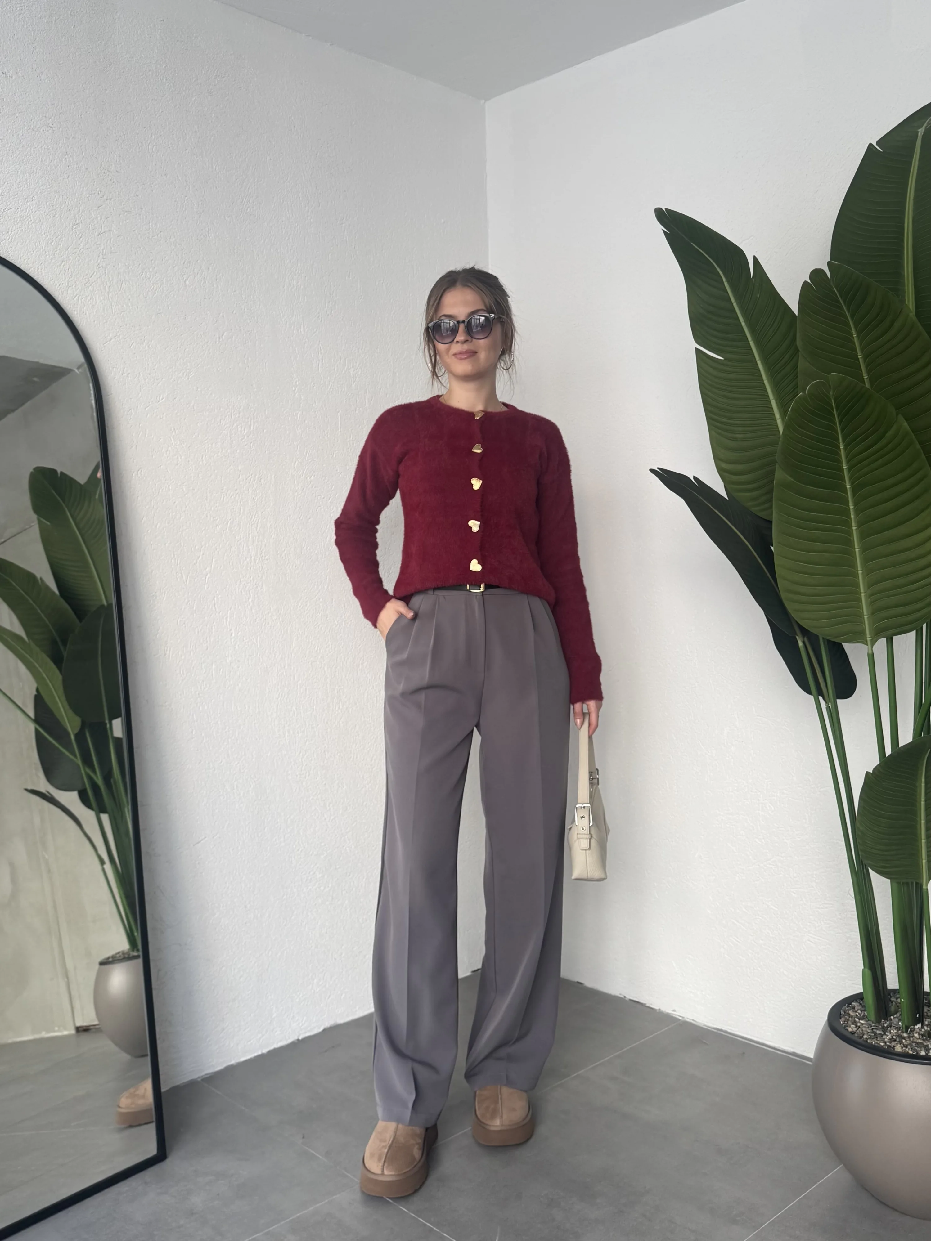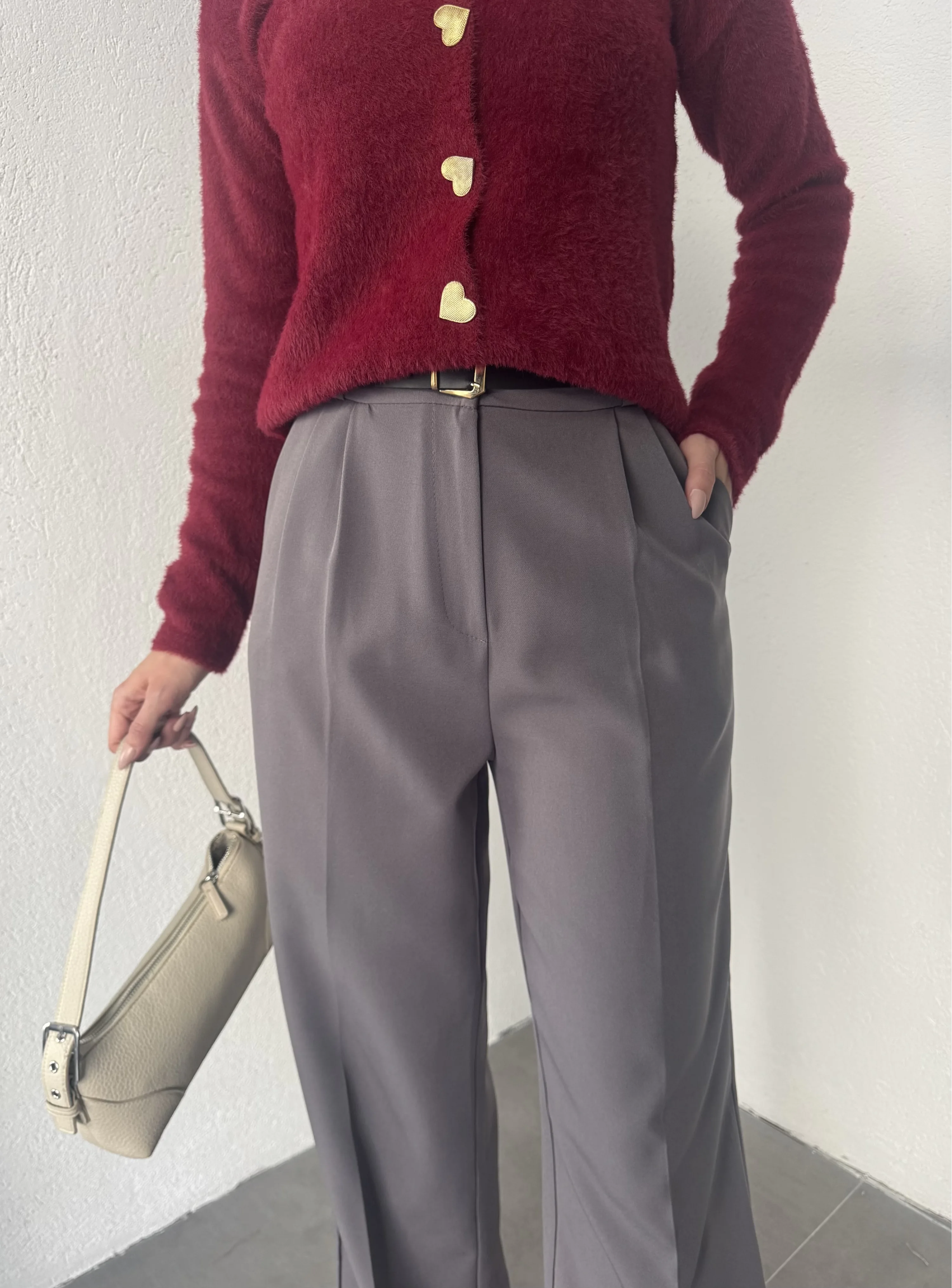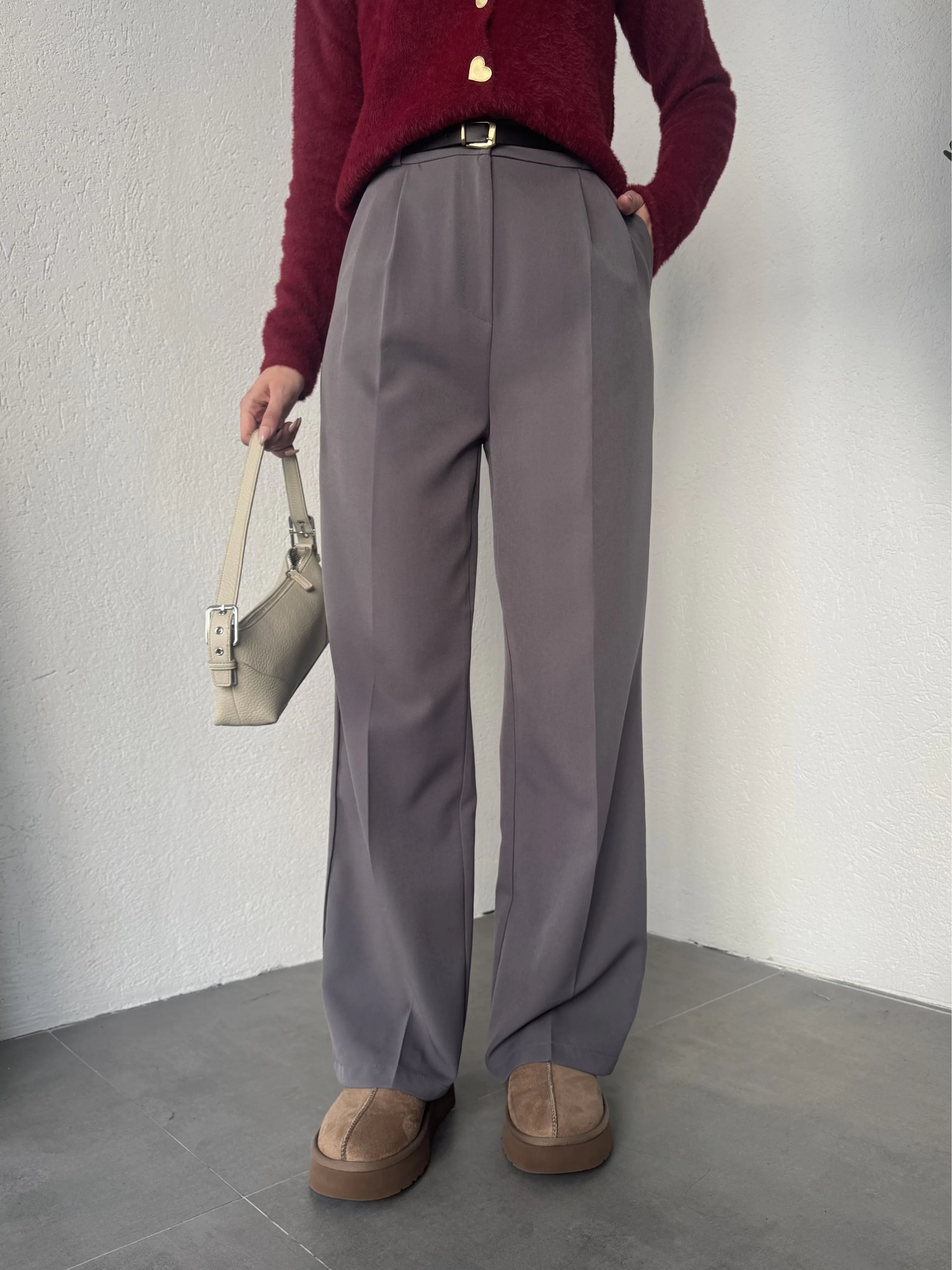 Antrasit Pileli Tam Kalıp Bel Oturtmalı Geniş Paça Palazzo Pantolon