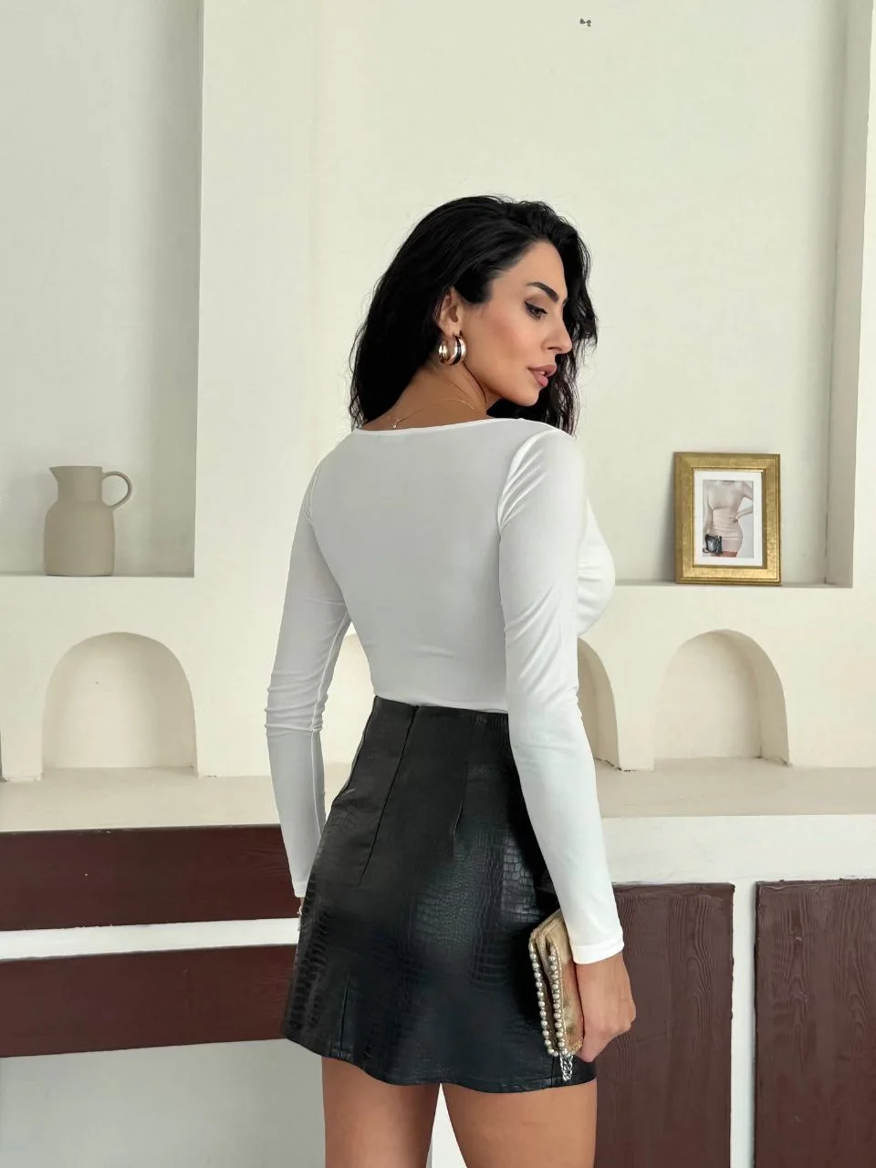 Beyaz Madonna Yaka Yumoş Triko Kazak