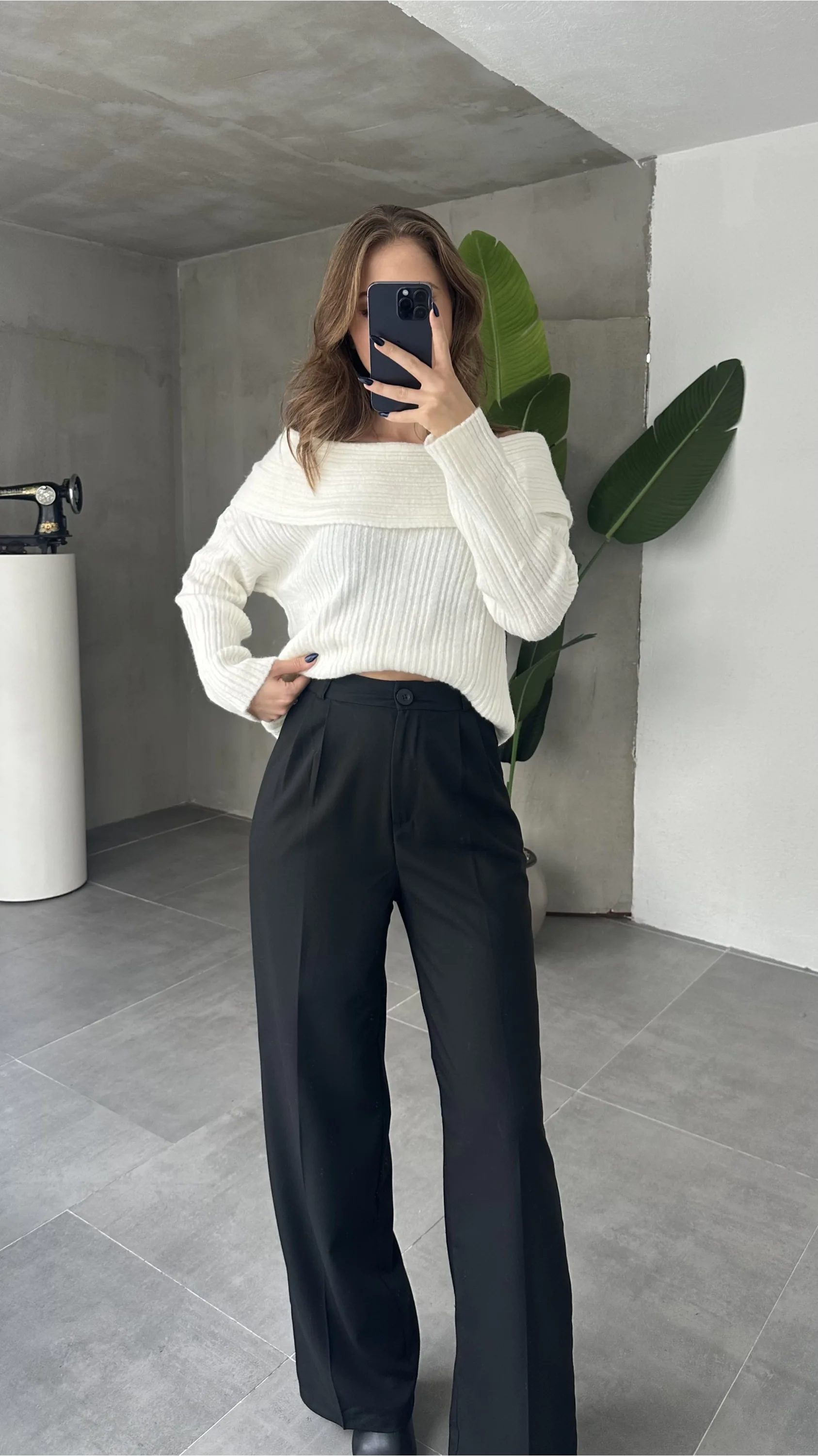 Siyah Madonna Yaka Yumoş Triko Kazak
