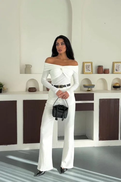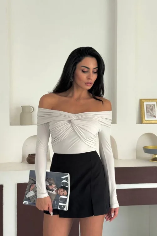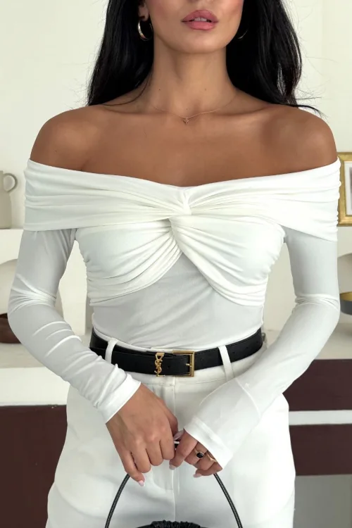 Beyaz Omuz Dekolteli Candy Body Bluz
