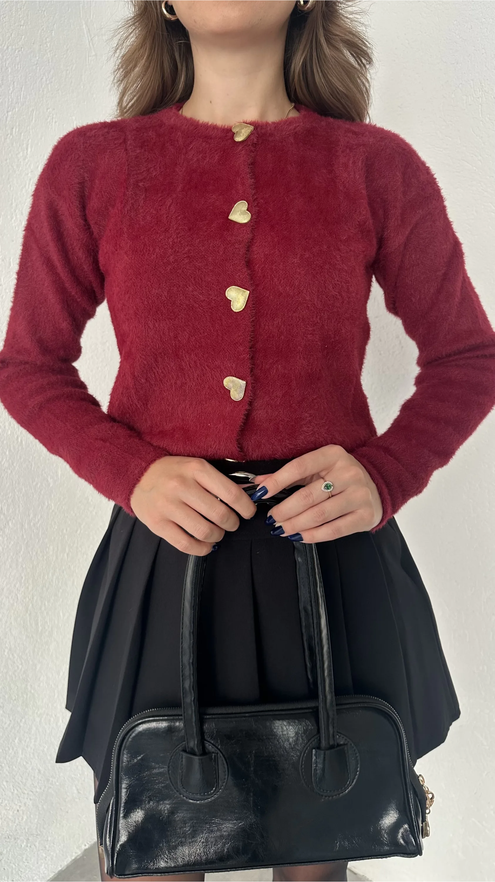 BİSİKLET YAKA KALPLİ DÜĞMELİ YUMOŞ TRİKO HIRKA