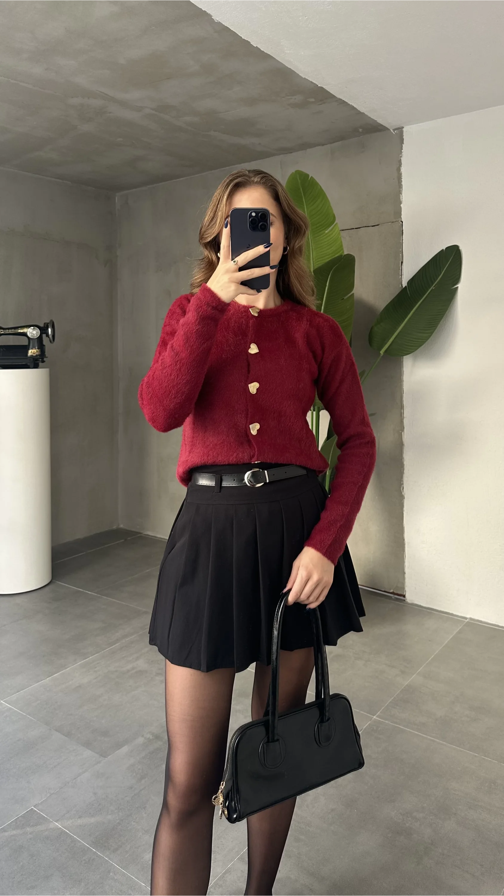 Bordo Bisiklet Yaka Kalpli Düğme Detaylı Yumoş Triko Hırka