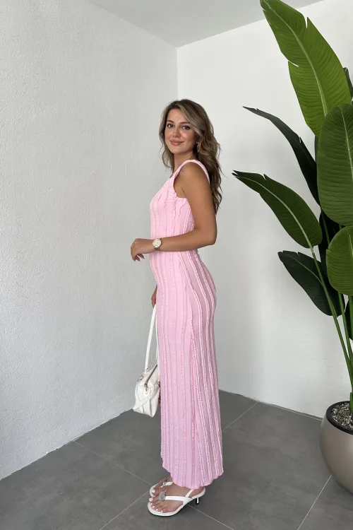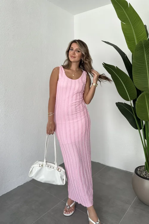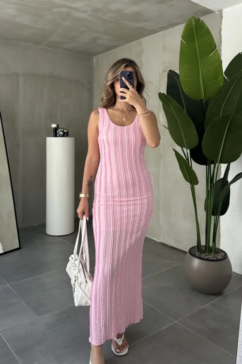 Pembe Askılı Kolsuz Maxi Boy Astarlı Elbise