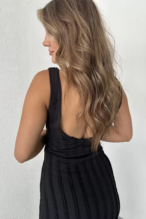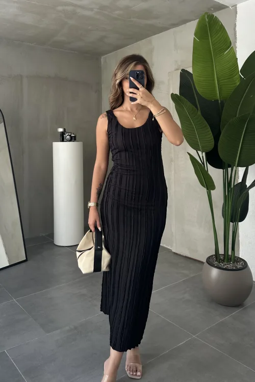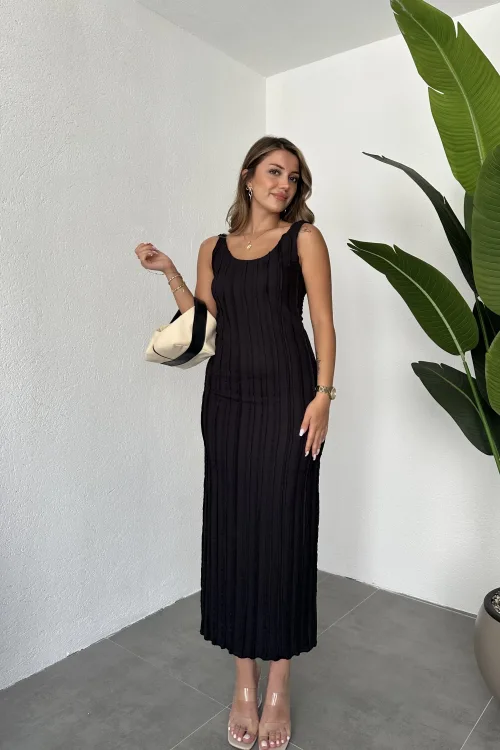 Siyah Askılı Kolsuz Maxi Boy Astarlı Elbise