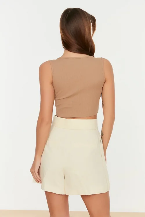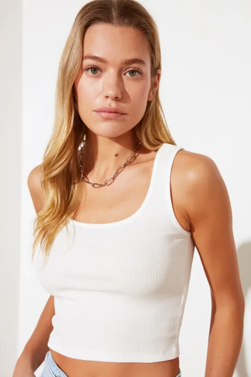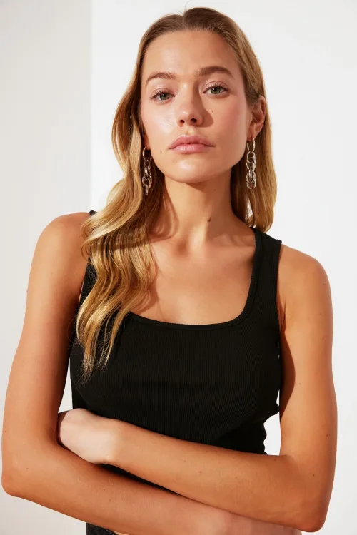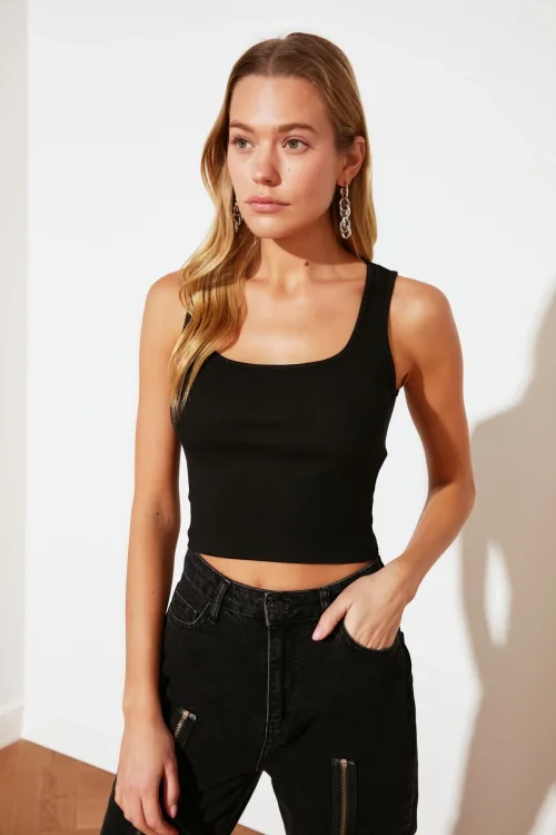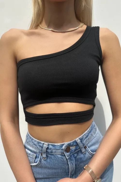 Siyah Tek Omuz Pencereli Crop Top Bluz
