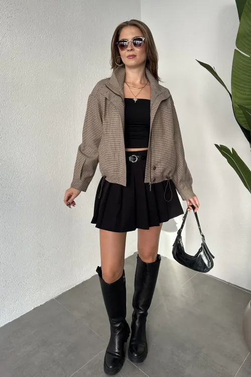 Pitikare Kısa Fermuarlı Oversize Ceket