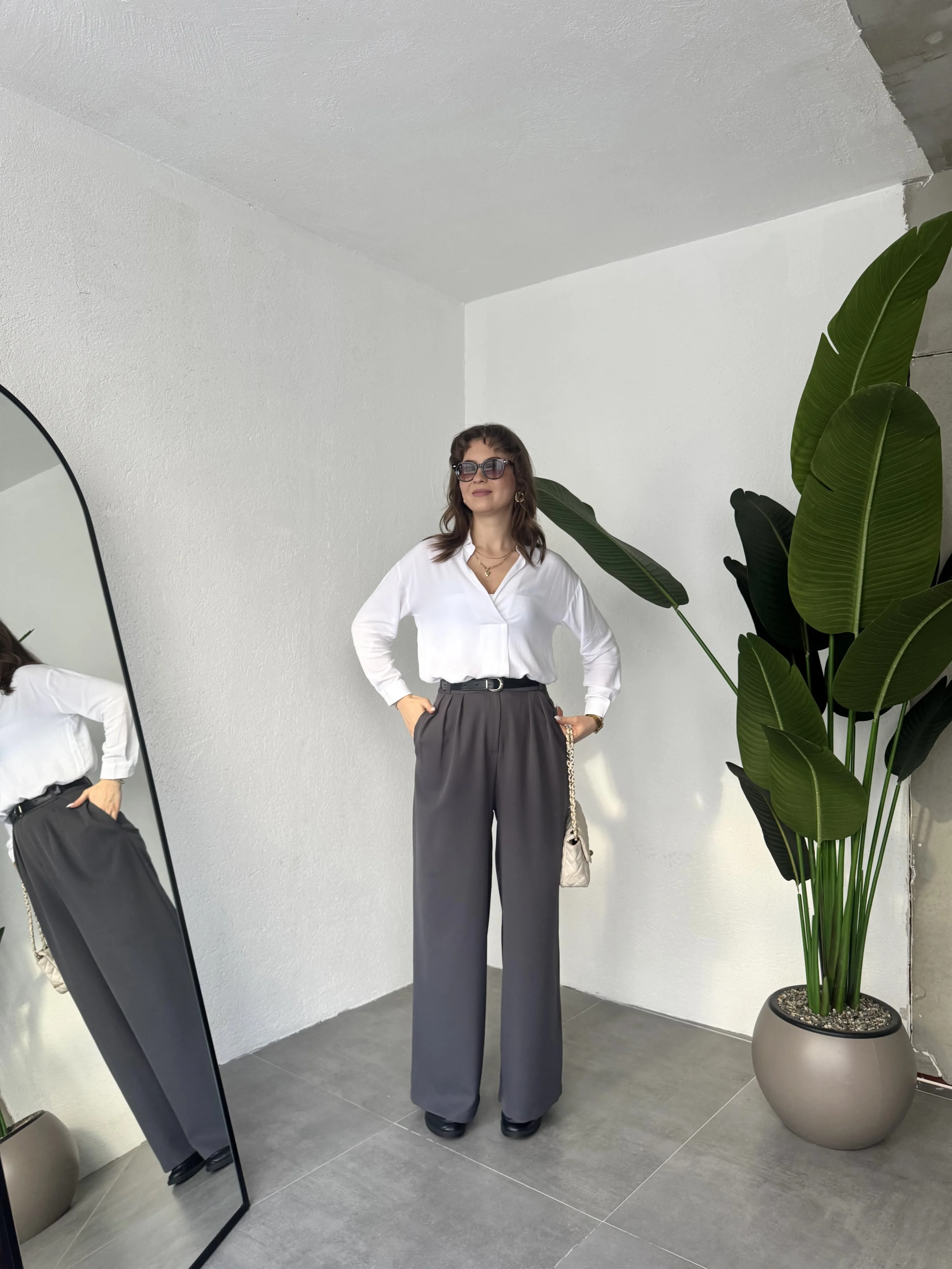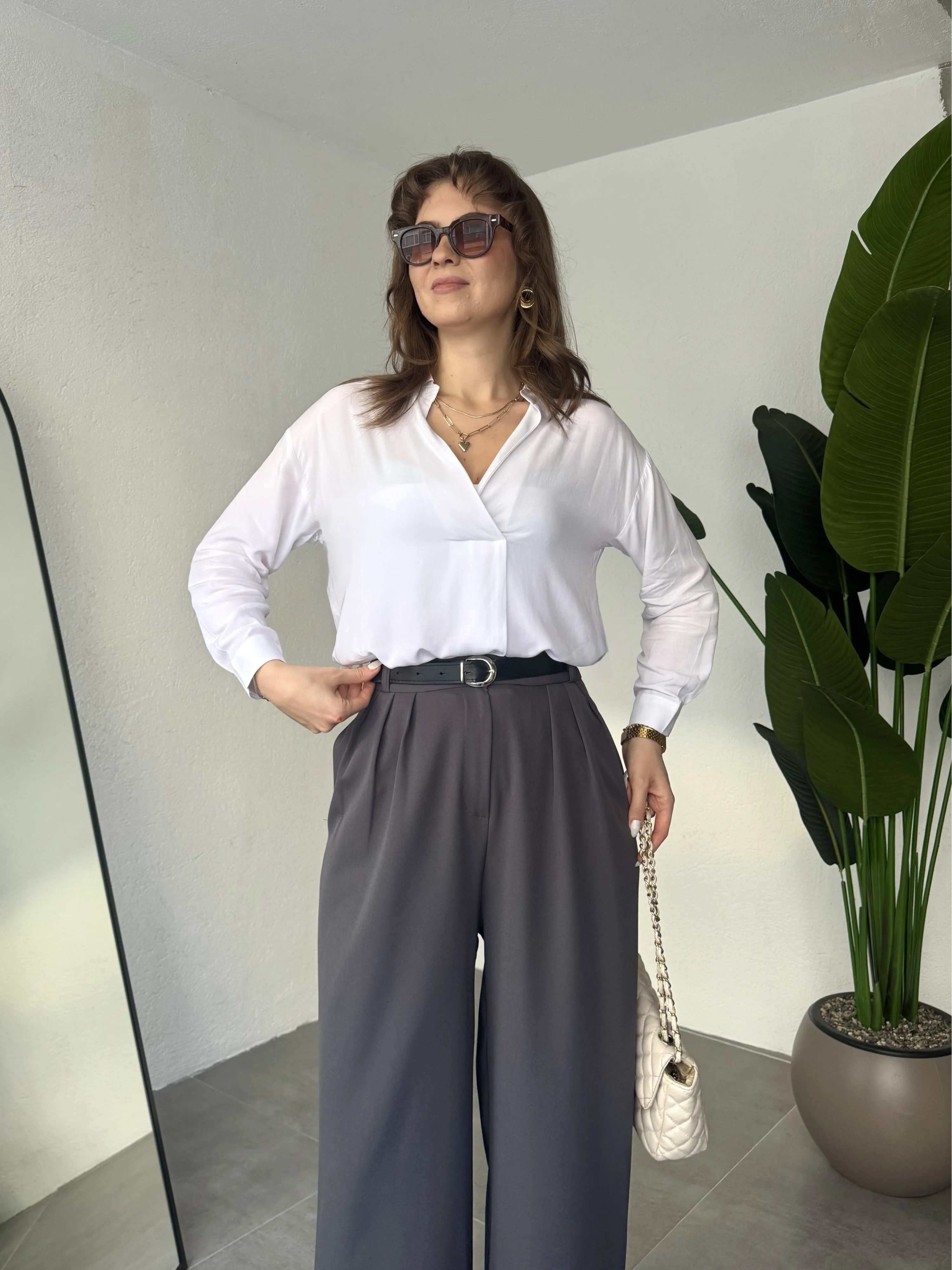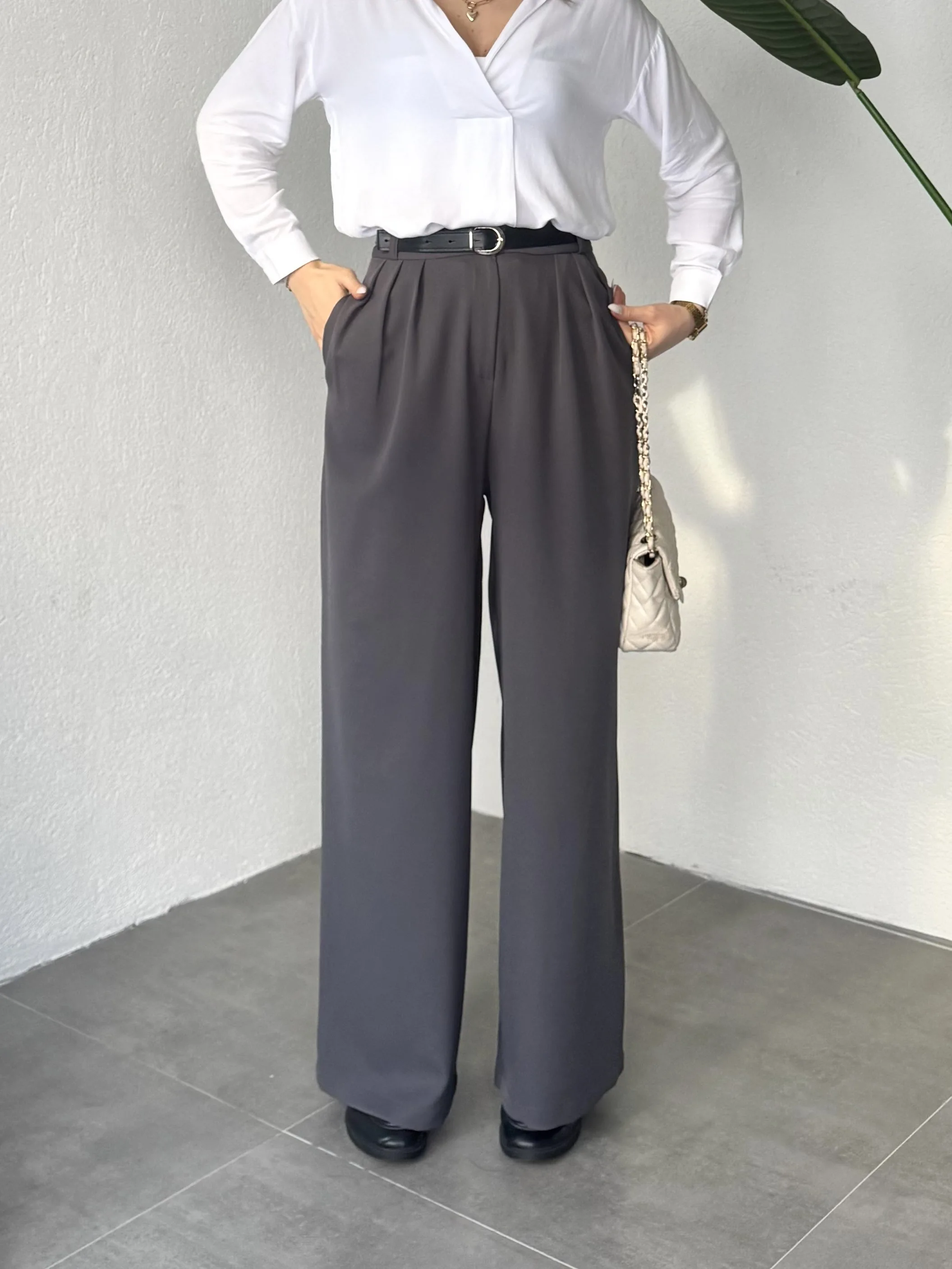 Minimal ve kurtarıcı bir parça arayanlar için tasarlanan bu pantolon, en çok tercih edilen yüksek bel bol paça pantolon modelleri arasında yer almaktadır.