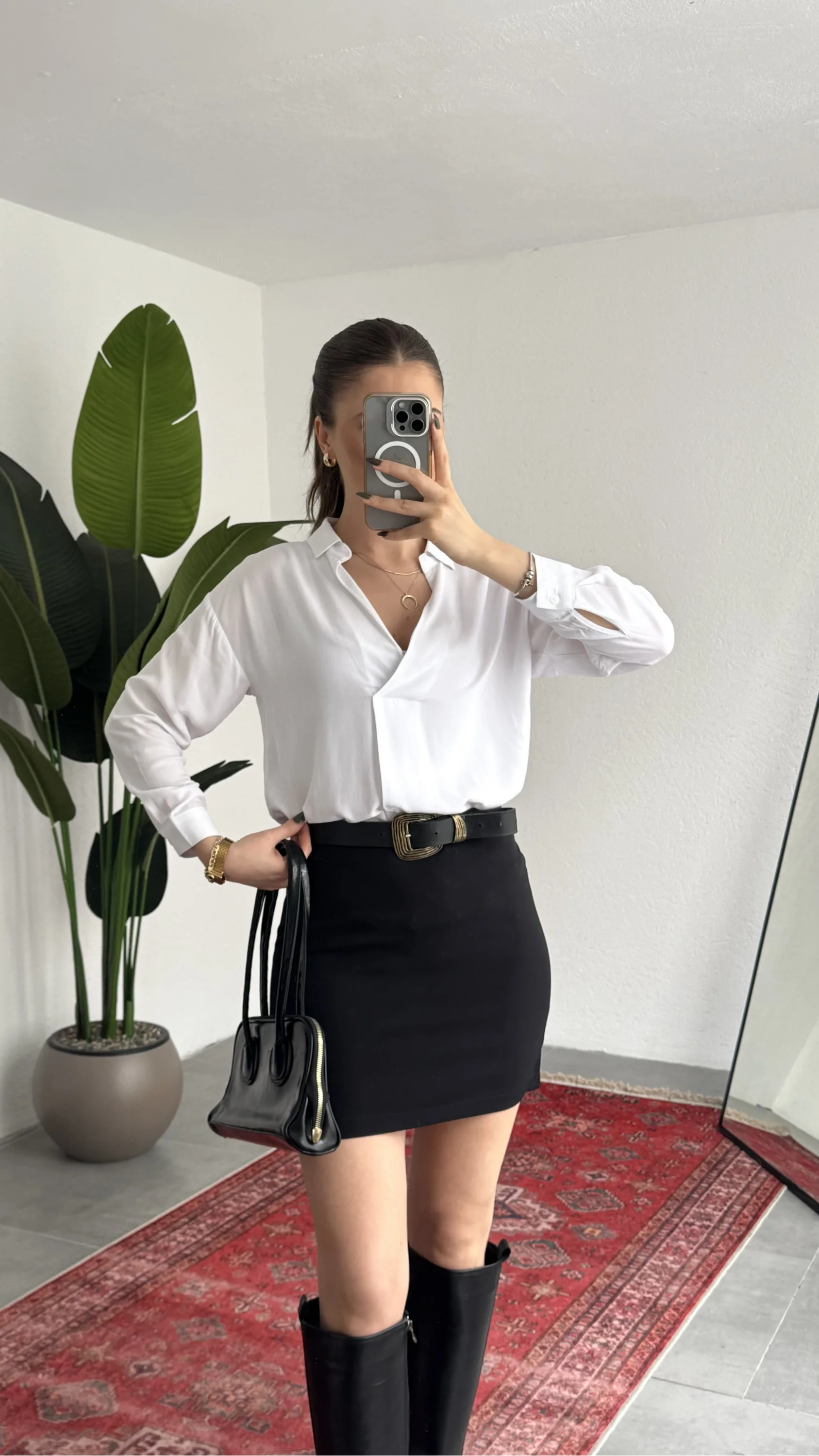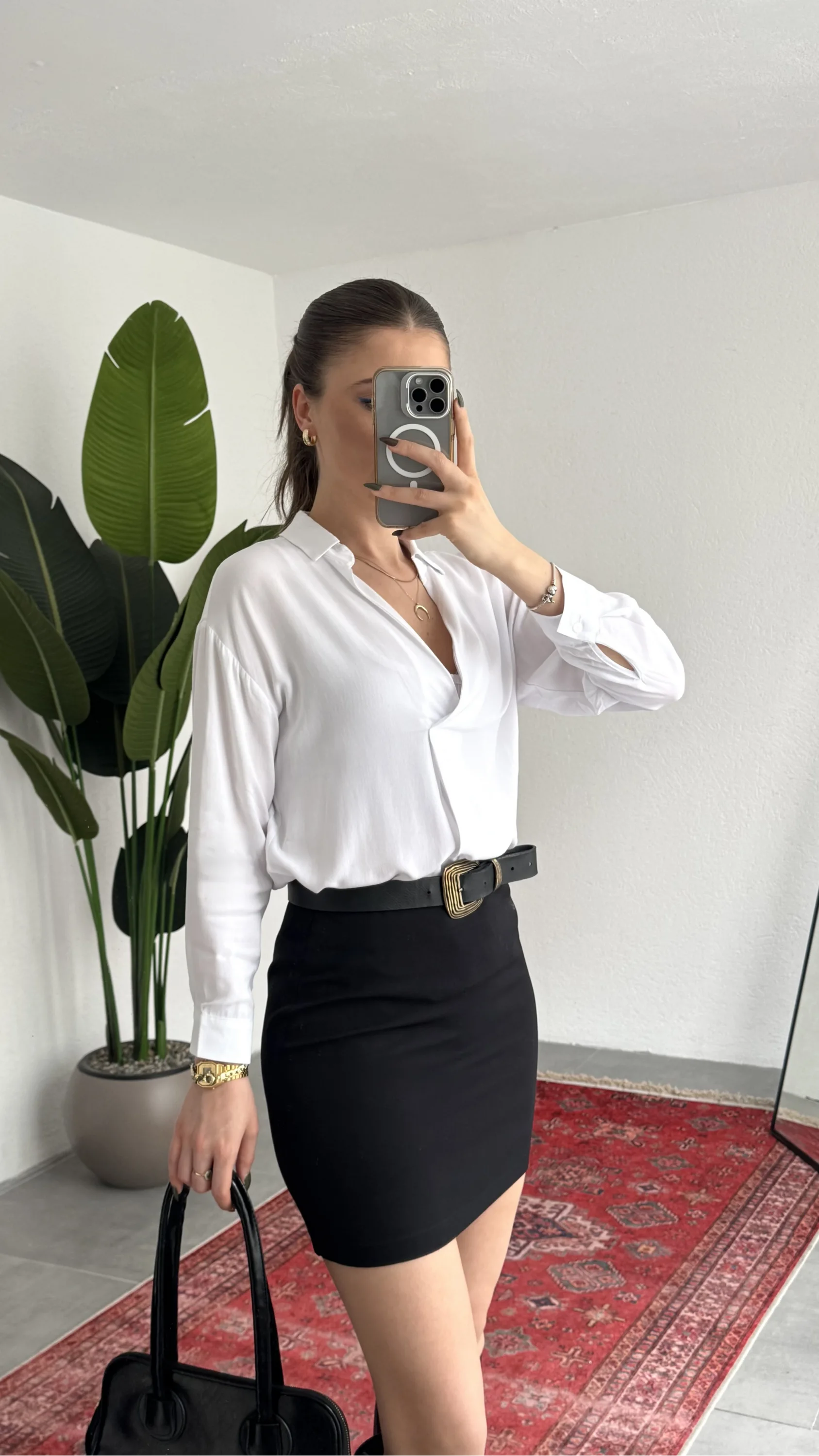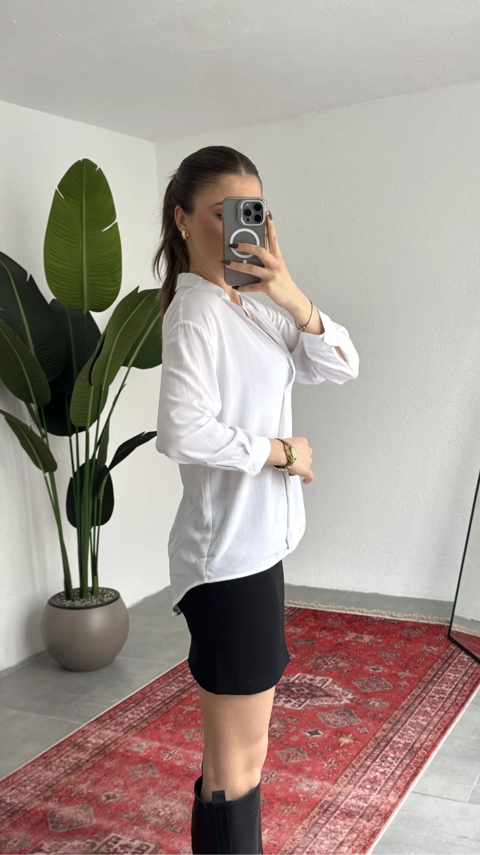 Modern kadının hızla değişen günlük temposuna uyum sağlayan bu beyaz gömlek, zamansız şıklığı ve fonksiyonelliği bir araya getiriyor. Minimal tasarımı sayesinde hem profesyonel ortamlarda hem de günlük kombinlerde maksimum verim sunar.