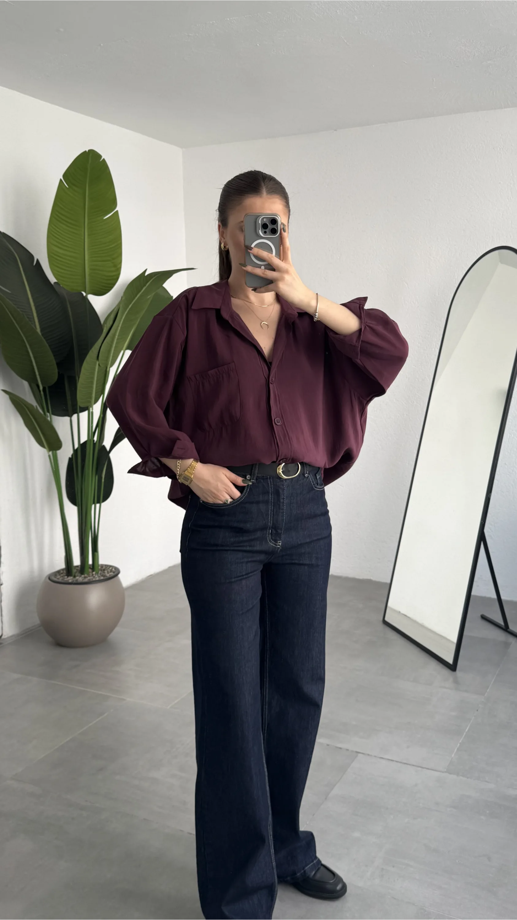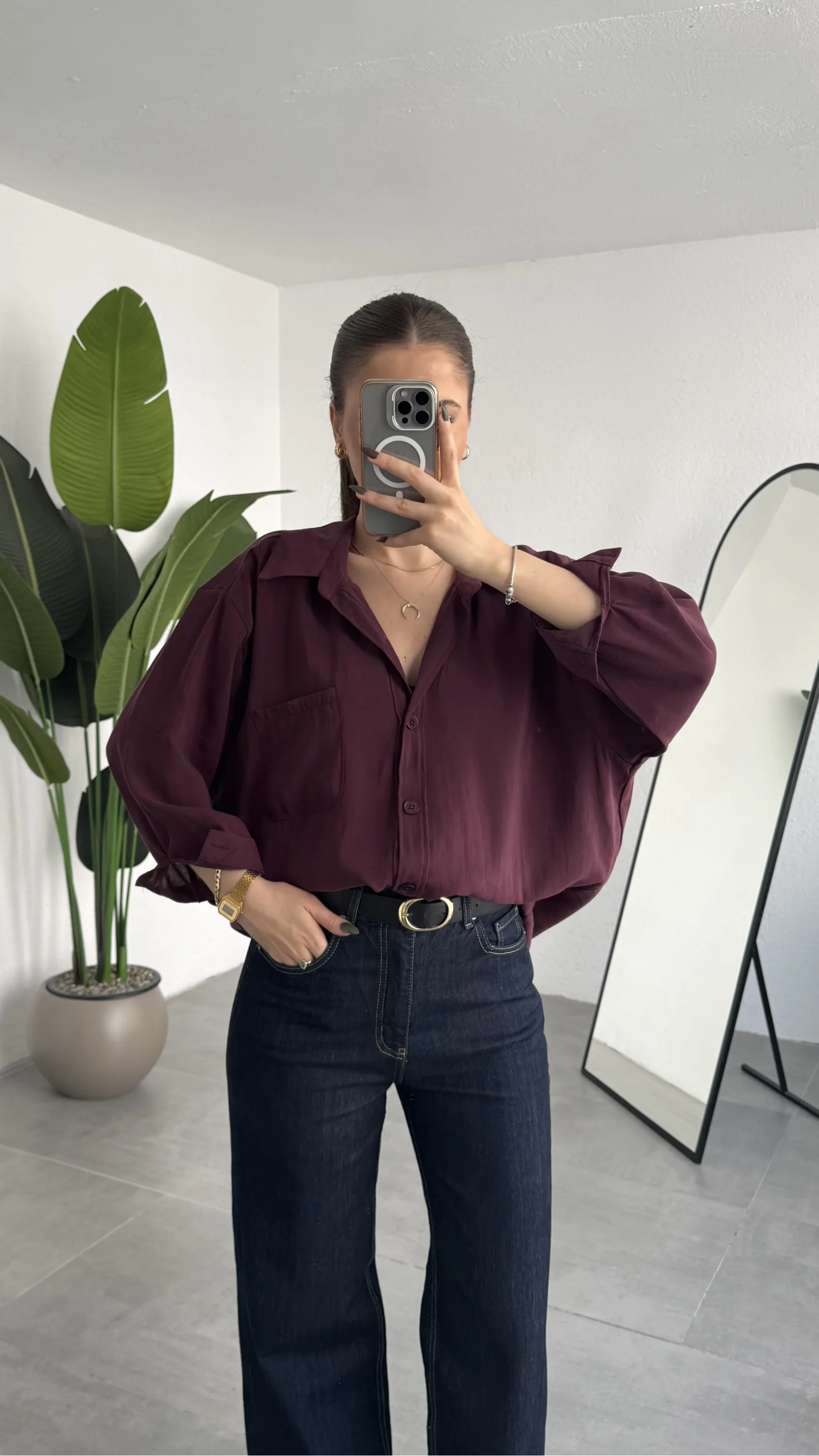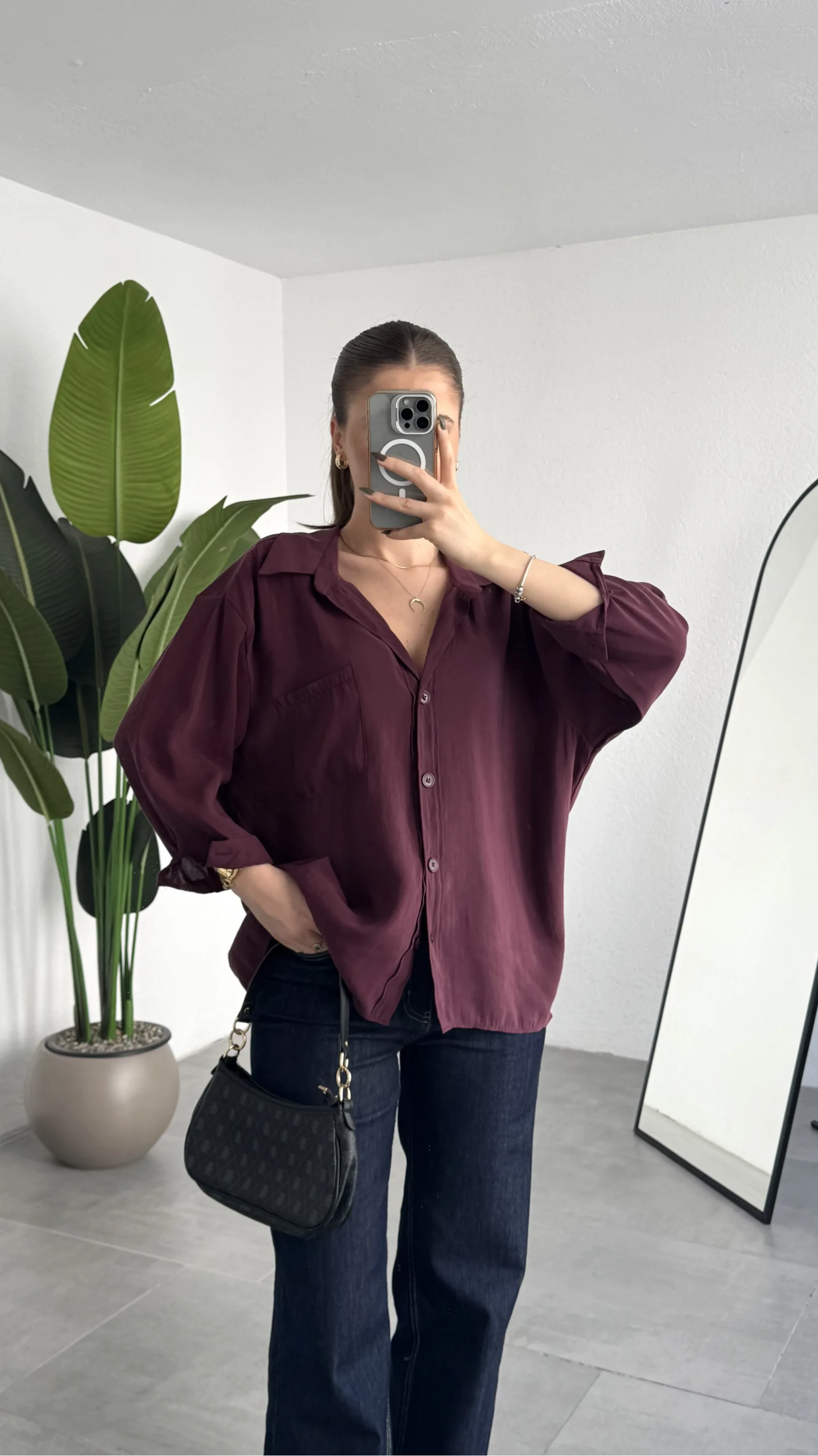 Günümüz kadınının stil beklentisi artık sadece şık görünmek değil; aynı zamanda konfor, çok yönlülük ve zahmetsiz kombinlenebilirlik. Bu bordo oversize gömlek, tam olarak bu üç ihtiyaca stratejik bir çözüm sunar.