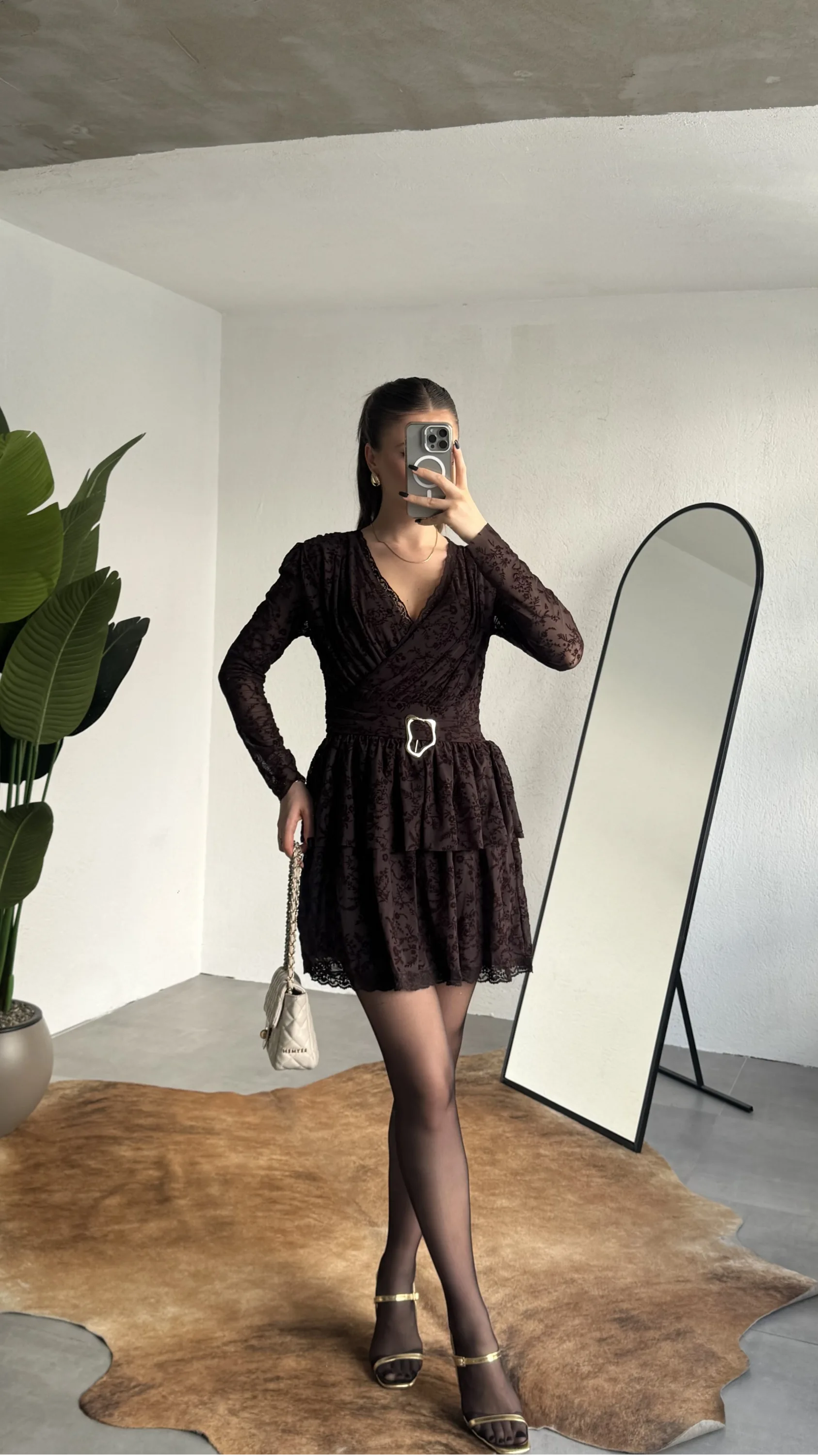 ✔ Bel vurgulayan gold kemer detayı