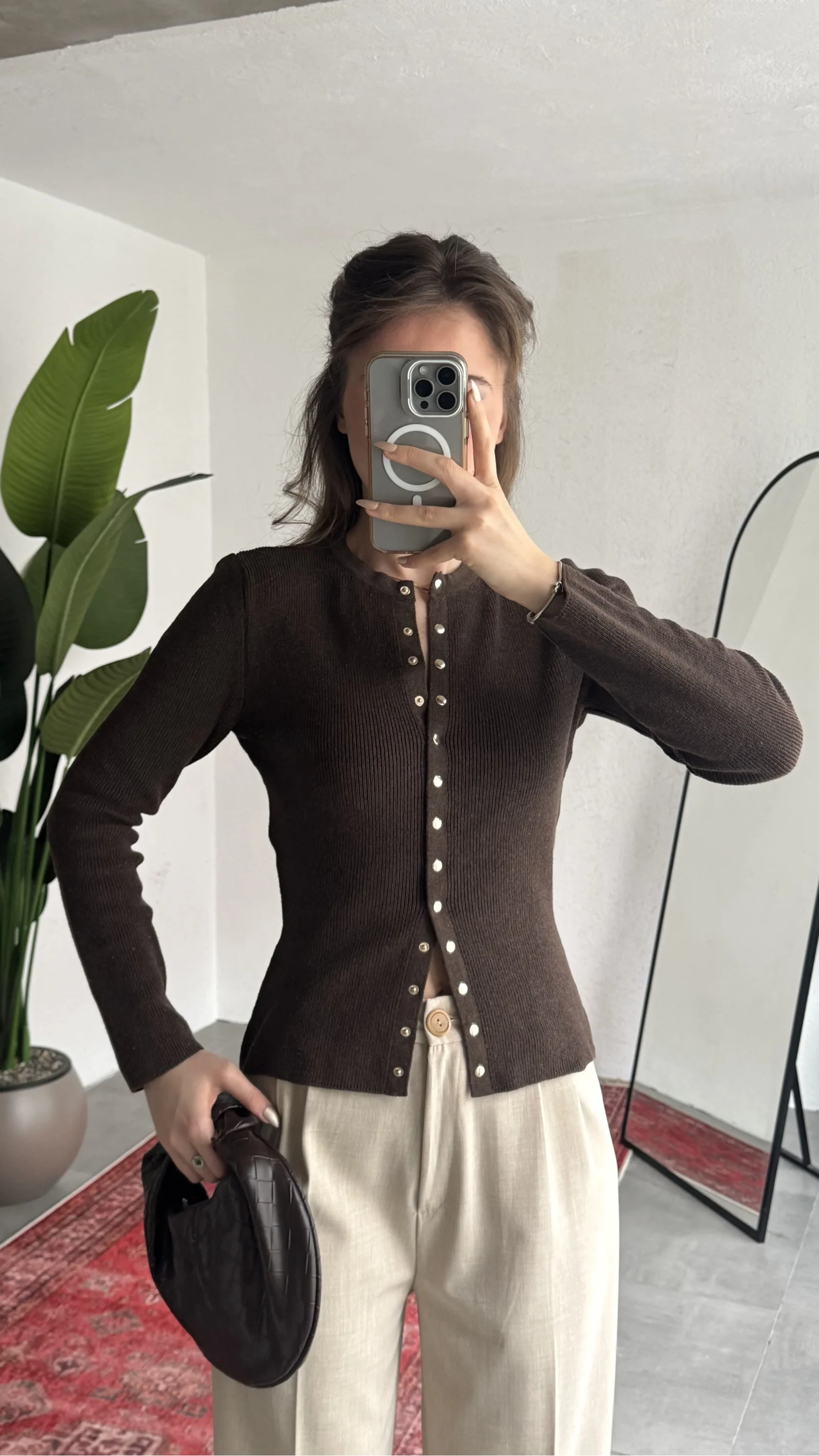 Fitilli triko dokusu ve vücuda oturan slim fit kalıbıyla tasarlanan düğmeli kadın hırka, hem günlük hem ofis kombinleri için ideal bir tamamlayıcıdır. Tonunun sade ve sofistike duruşu sayesinde her kombinle kolayca uyum sağlar.
