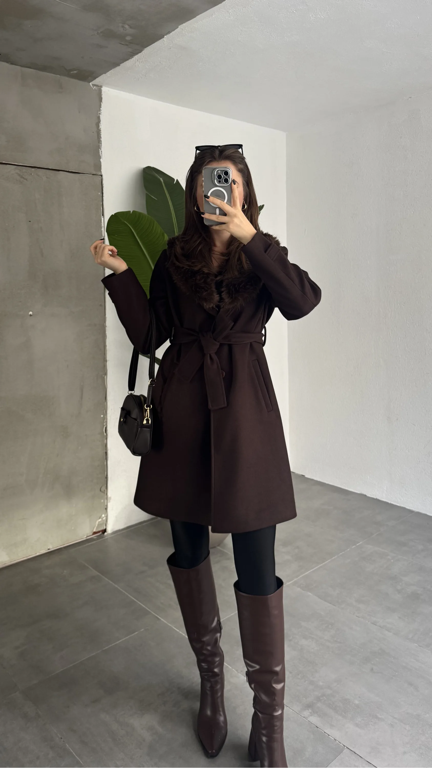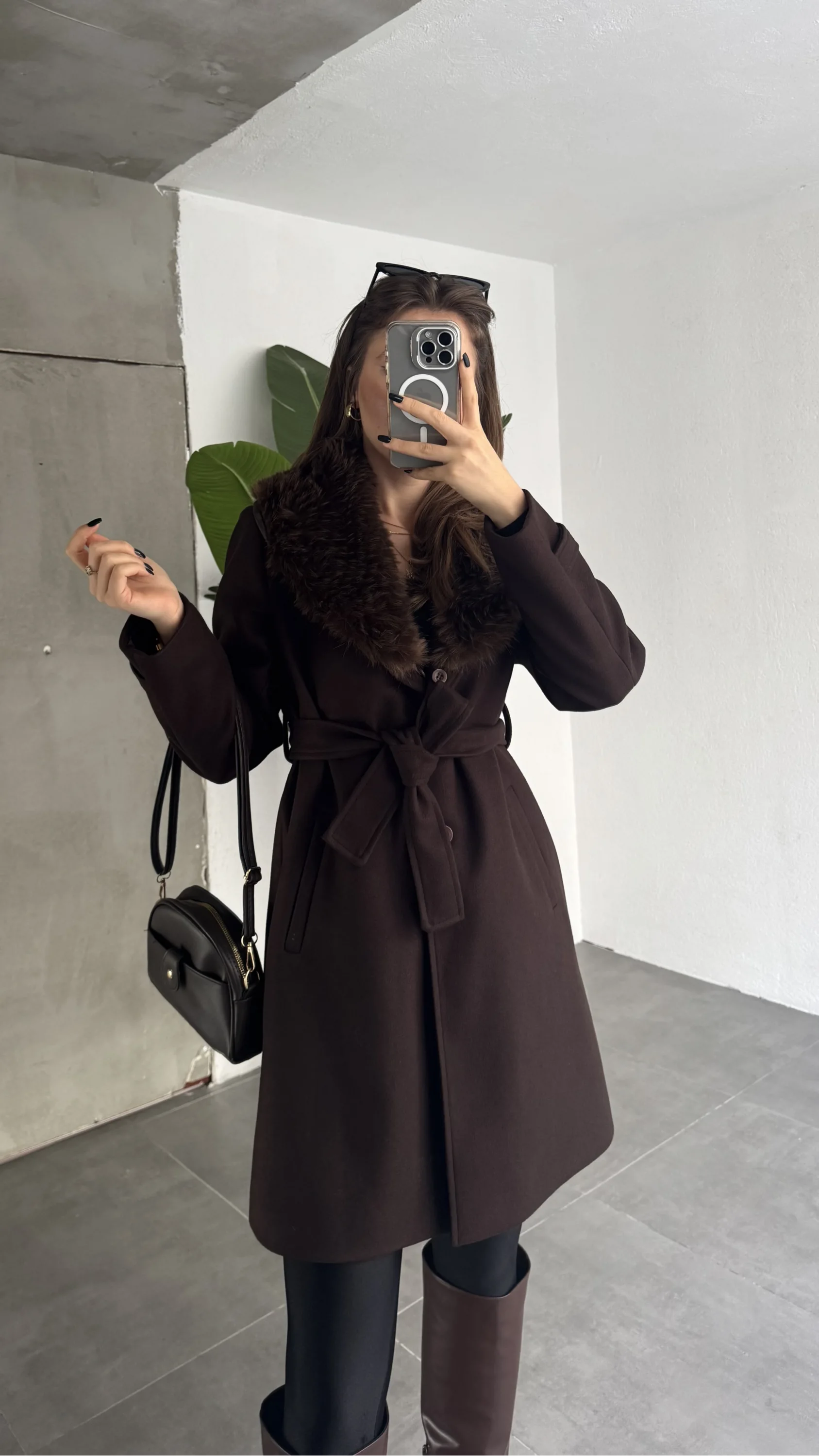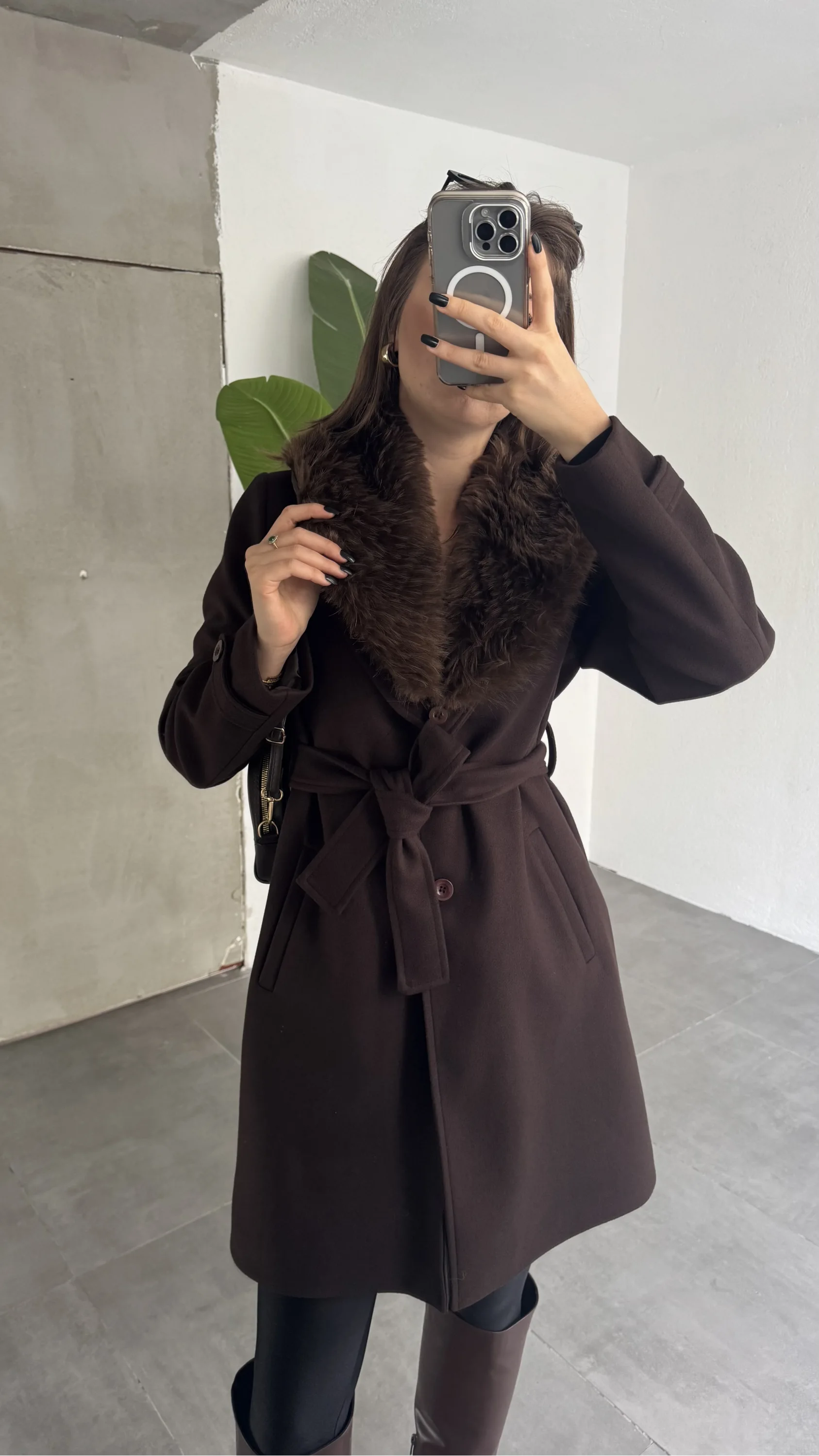 Soğuk havalarda şıklığından ödün vermek istemeyen kadınlar için tasarlanan kürk yakalı kuşaklı kaşe kaban, zarif ve güçlü duruşuyla kış kombinlerinin vazgeçilmez parçasıdır. Kaşe kumaş yapısı, sıcak tutan dokusuyla konforlu kullanım sunarken kürk yaka detayı modele lüks ve feminen bir hava katar.