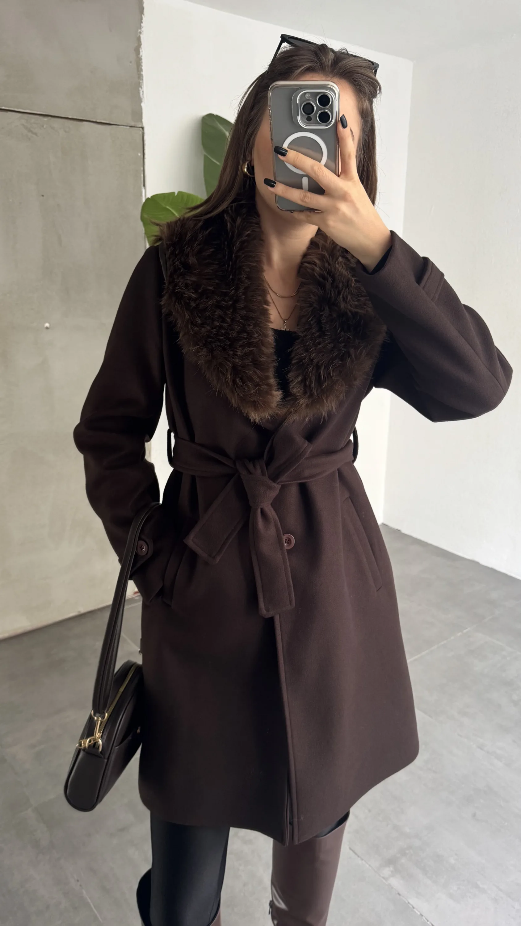 ✔ Kürk yaka şık detay