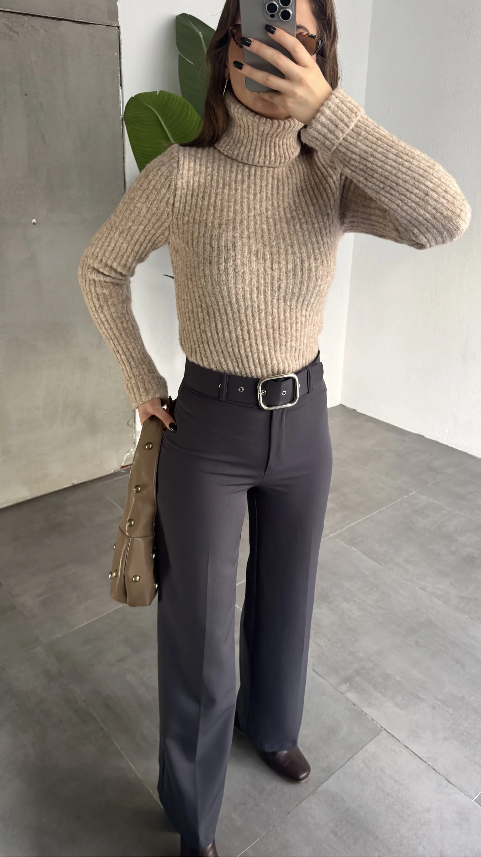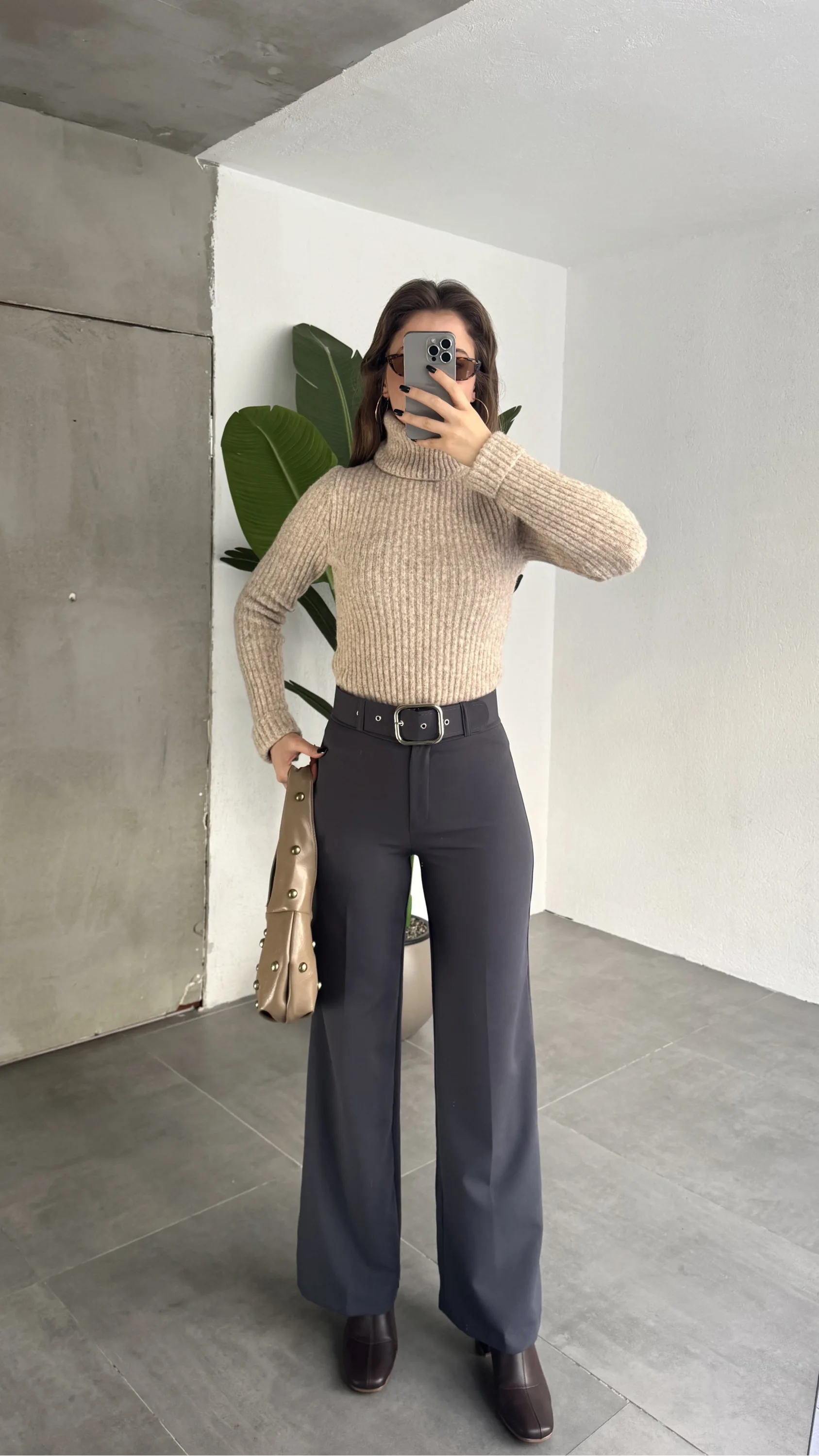 Şıklığı ve konforu bir arada sunan kadın yüksek bel geniş paça kumaş pantolon, modern kesimiyle günlük ve klasik kombinler için ideal bir tercihtir. Yüksek bel yapısı, beli toparlayarak daha fit bir görünüm sunarken geniş paça kesimi bacak boyunu daha uzun gösterir.
