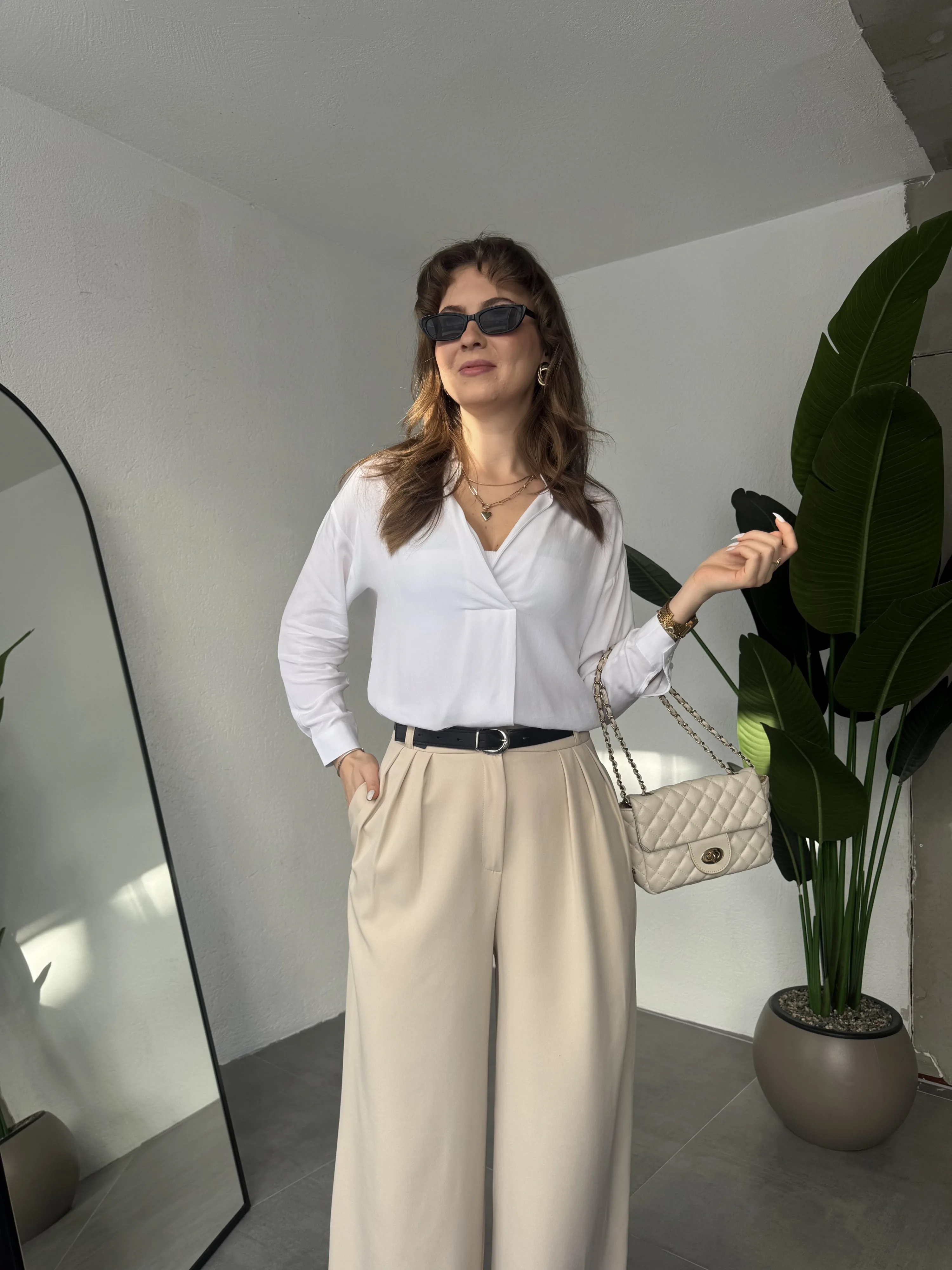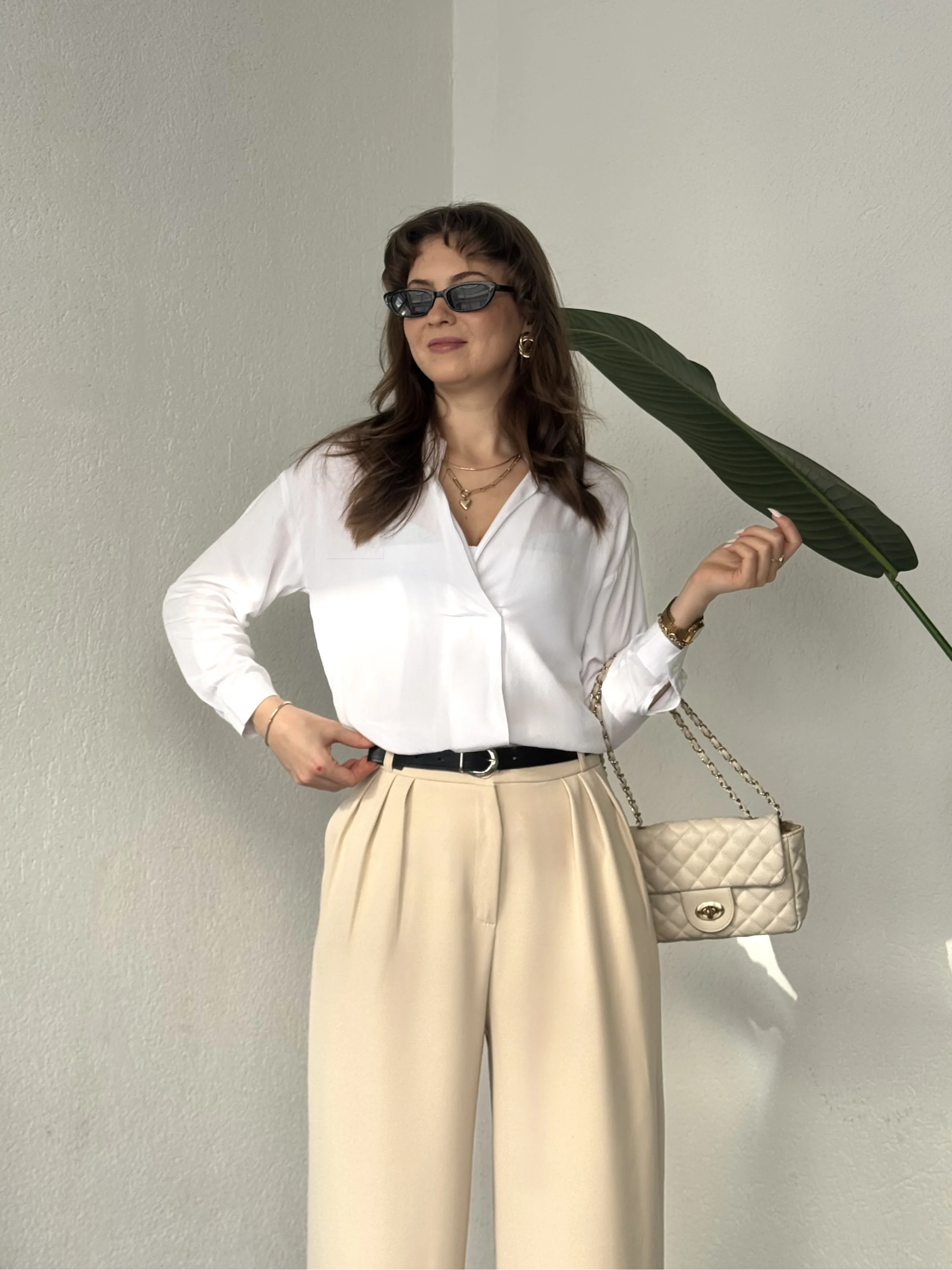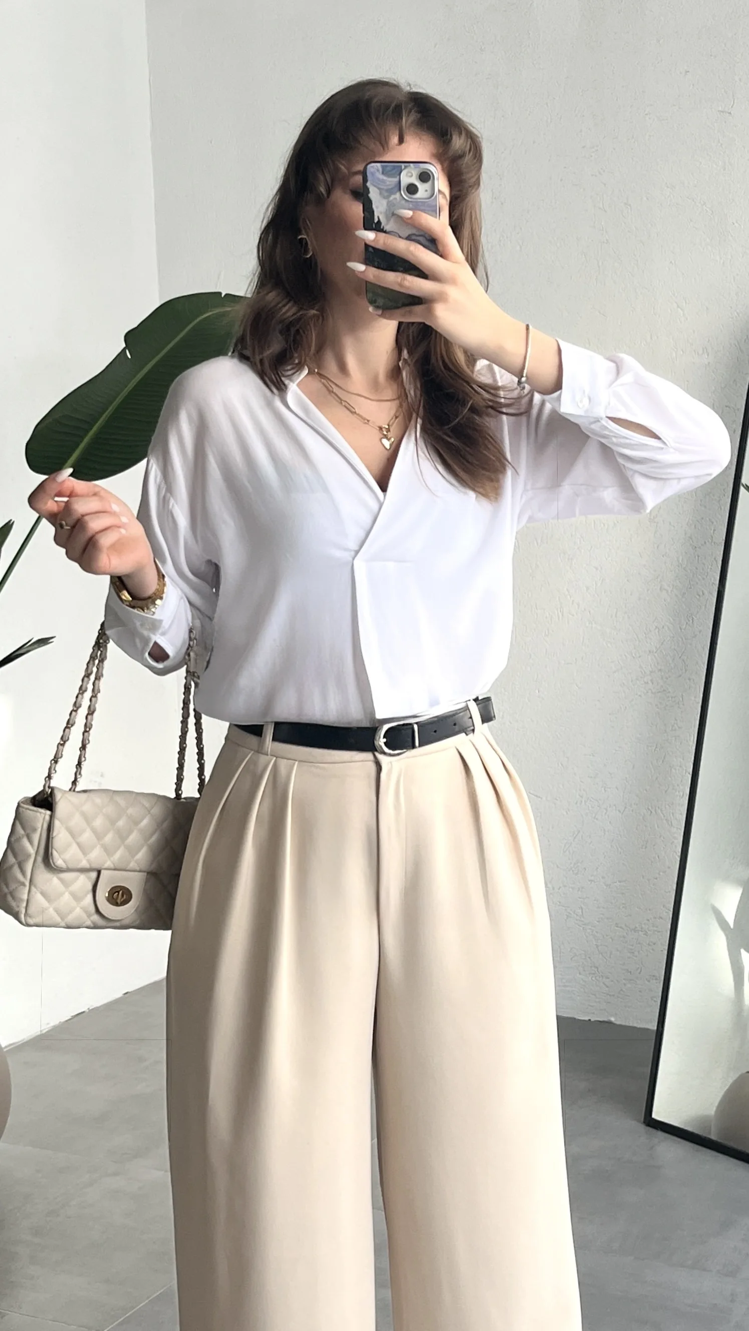Minimal ve kurtarıcı bir parça arayanlar için tasarlanan bu pantolon, en çok tercih edilen yüksek bel bol paça pantolon modelleri arasında yer almaktadır.