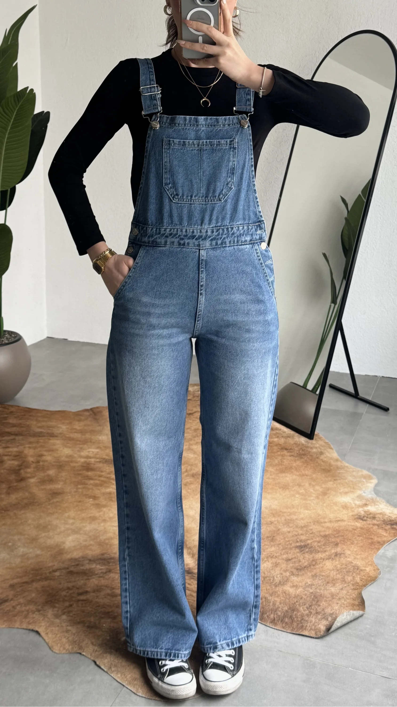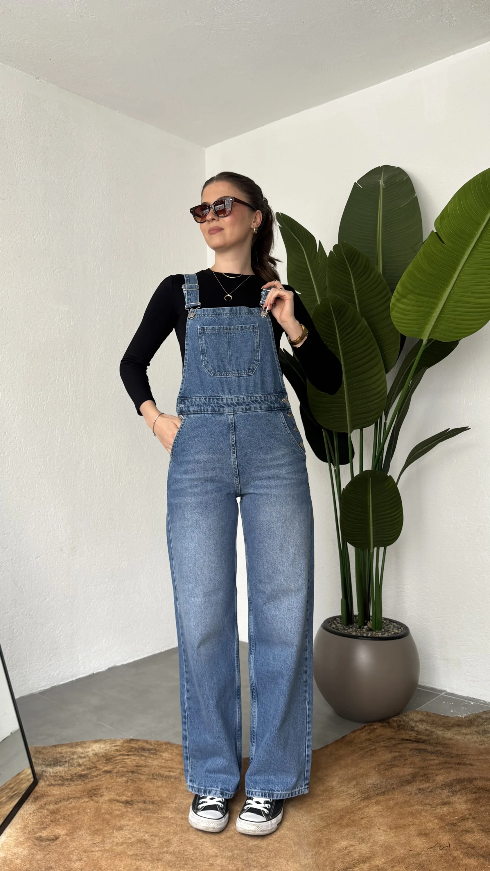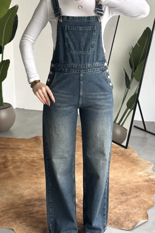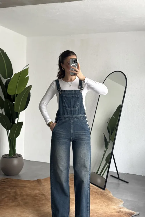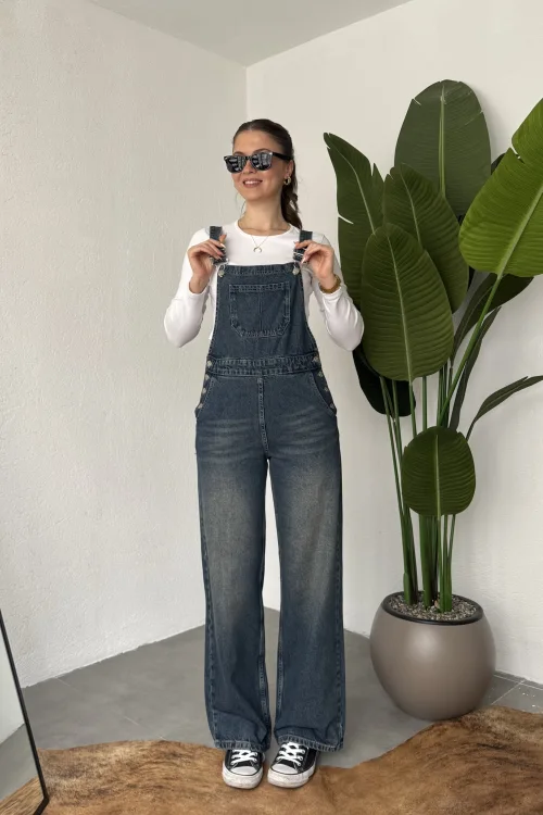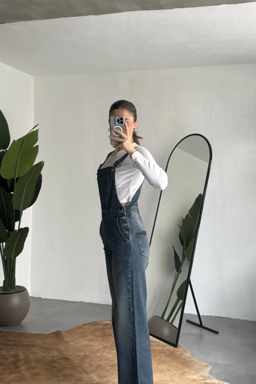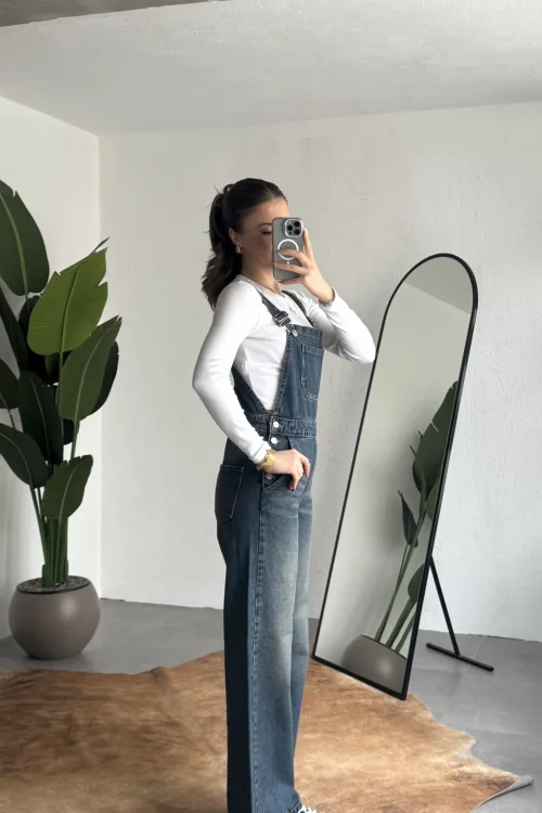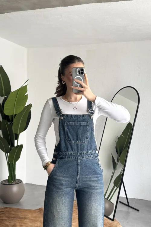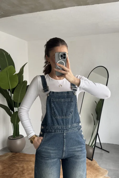 Ayarlanabilir askıları sayesinde kişisel konforunuza göre kullanım imkanı sunan bu denim tulum, basic tişörtler ve crop üstlerle mükemmel uyum sağlar. Spor ayakkabı veya botlarla kombinleyerek hem günlük hem şehir stilinde rahatlıkla tercih edebilirsiniz.