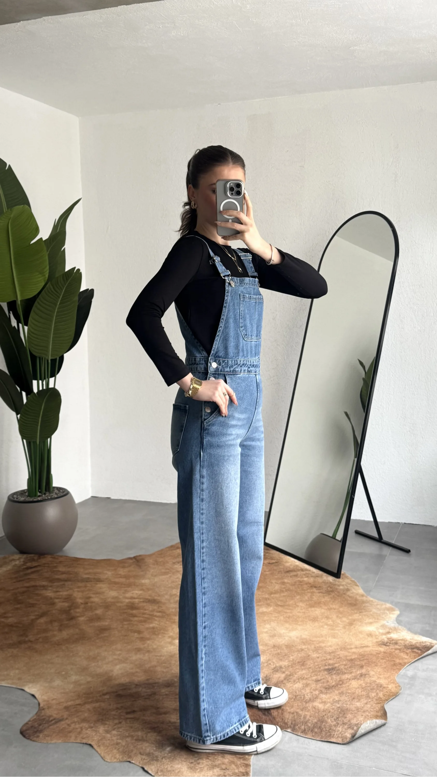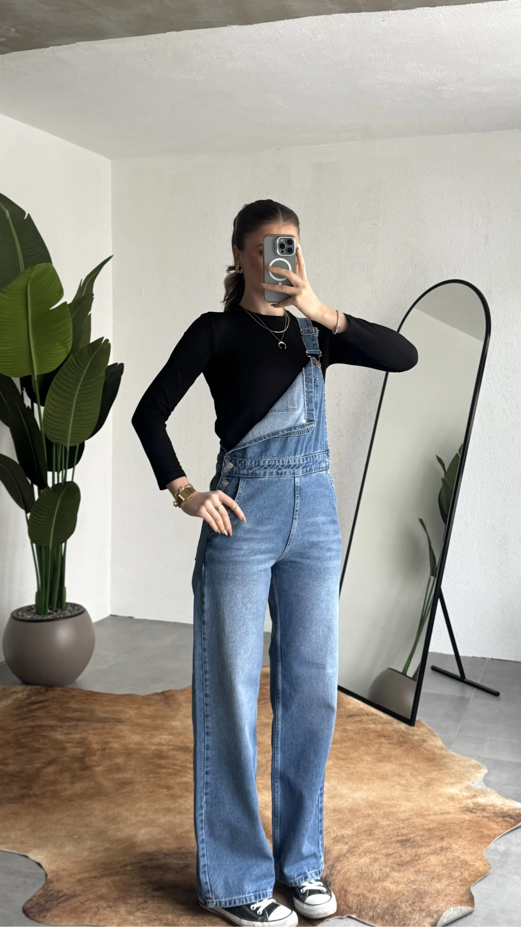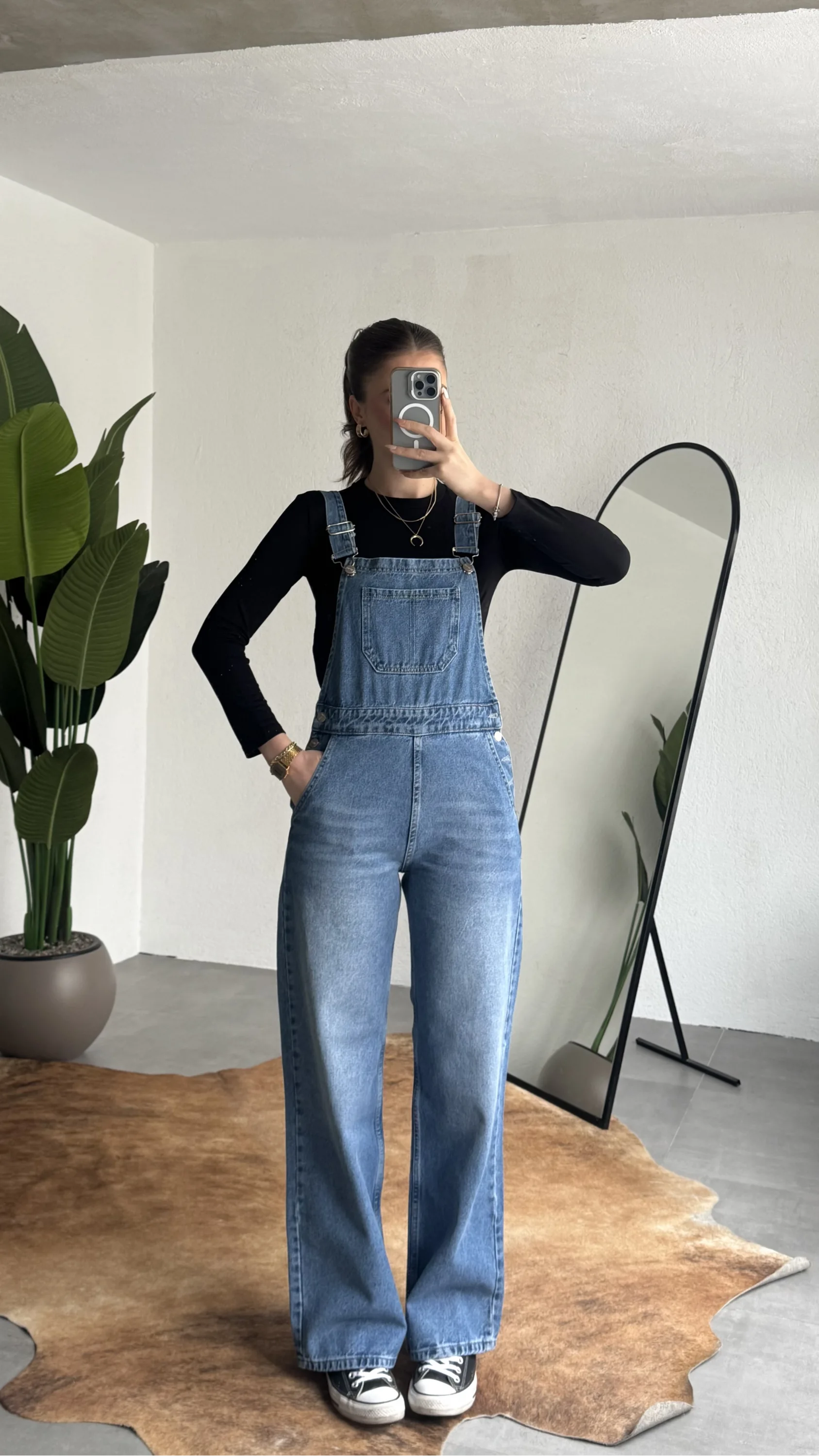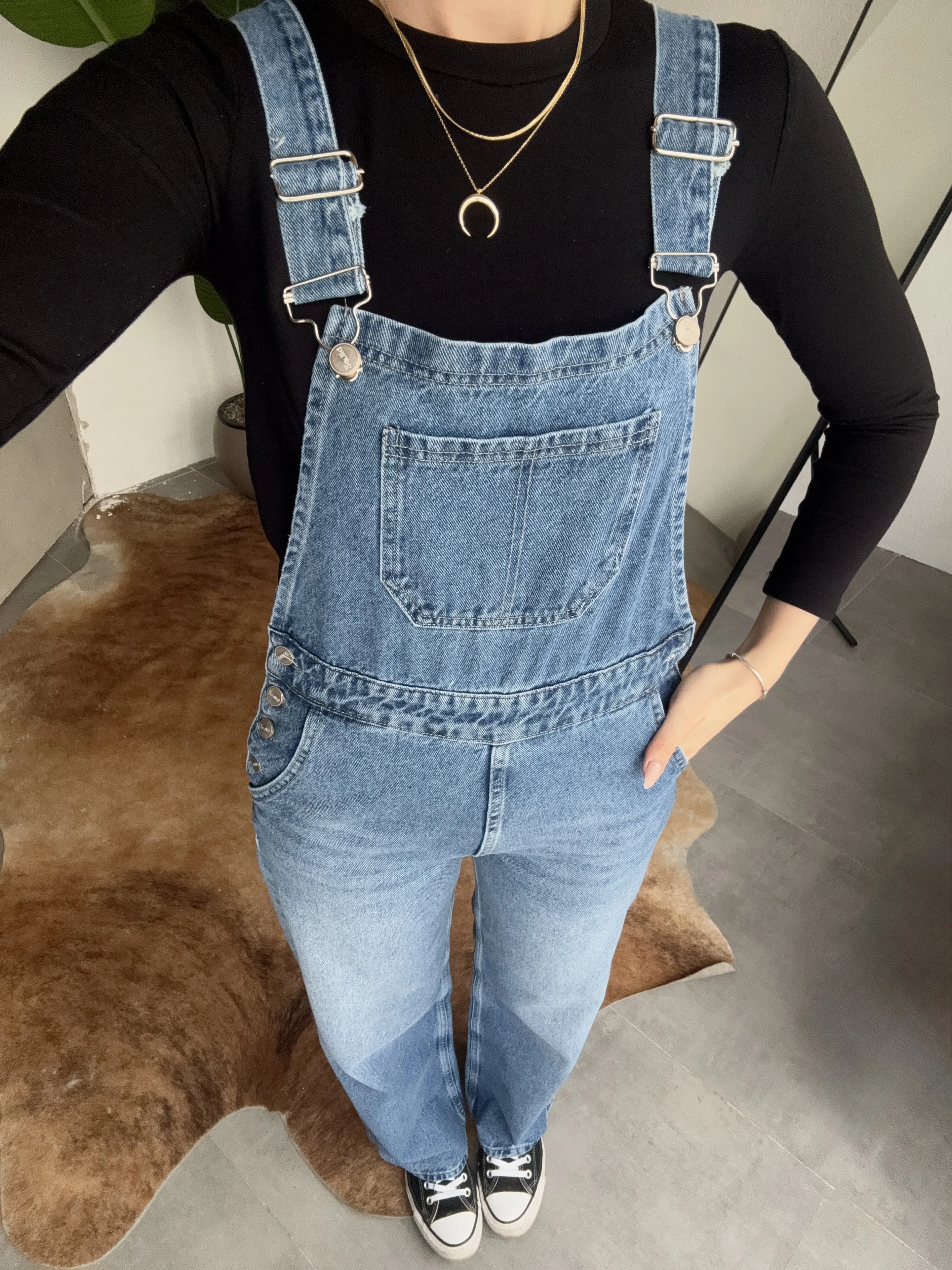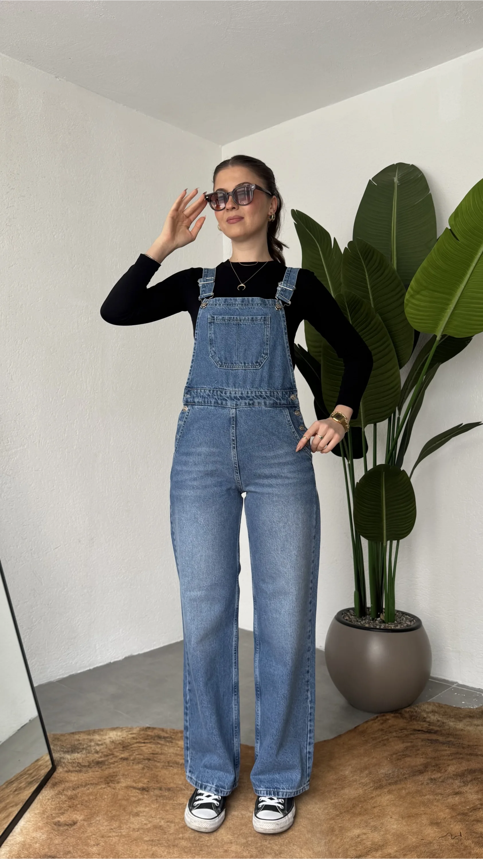Ayarlanabilir askıları sayesinde kişisel konforunuza göre kullanım imkanı sunan bu denim tulum, basic tişörtler ve crop üstlerle mükemmel uyum sağlar. Spor ayakkabı veya botlarla kombinleyerek hem günlük hem şehir stilinde rahatlıkla tercih edebilirsiniz.