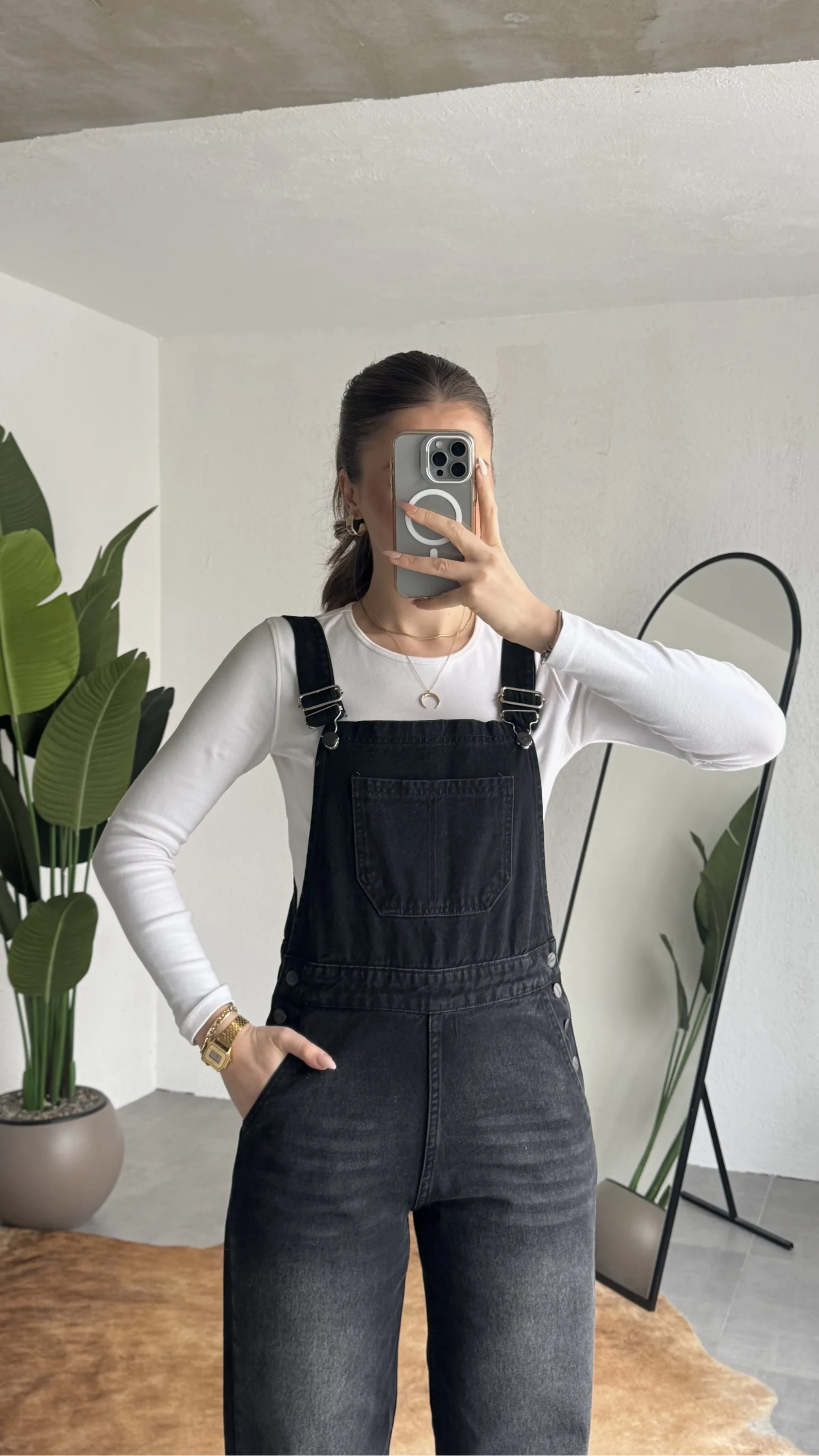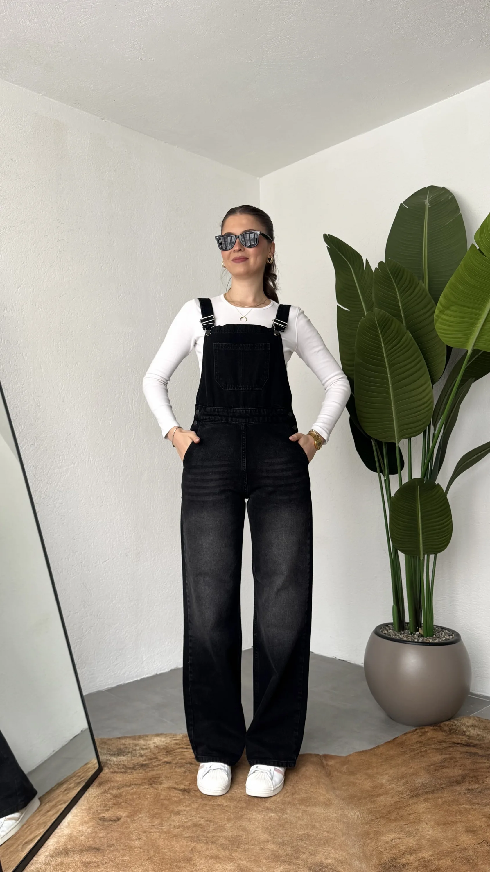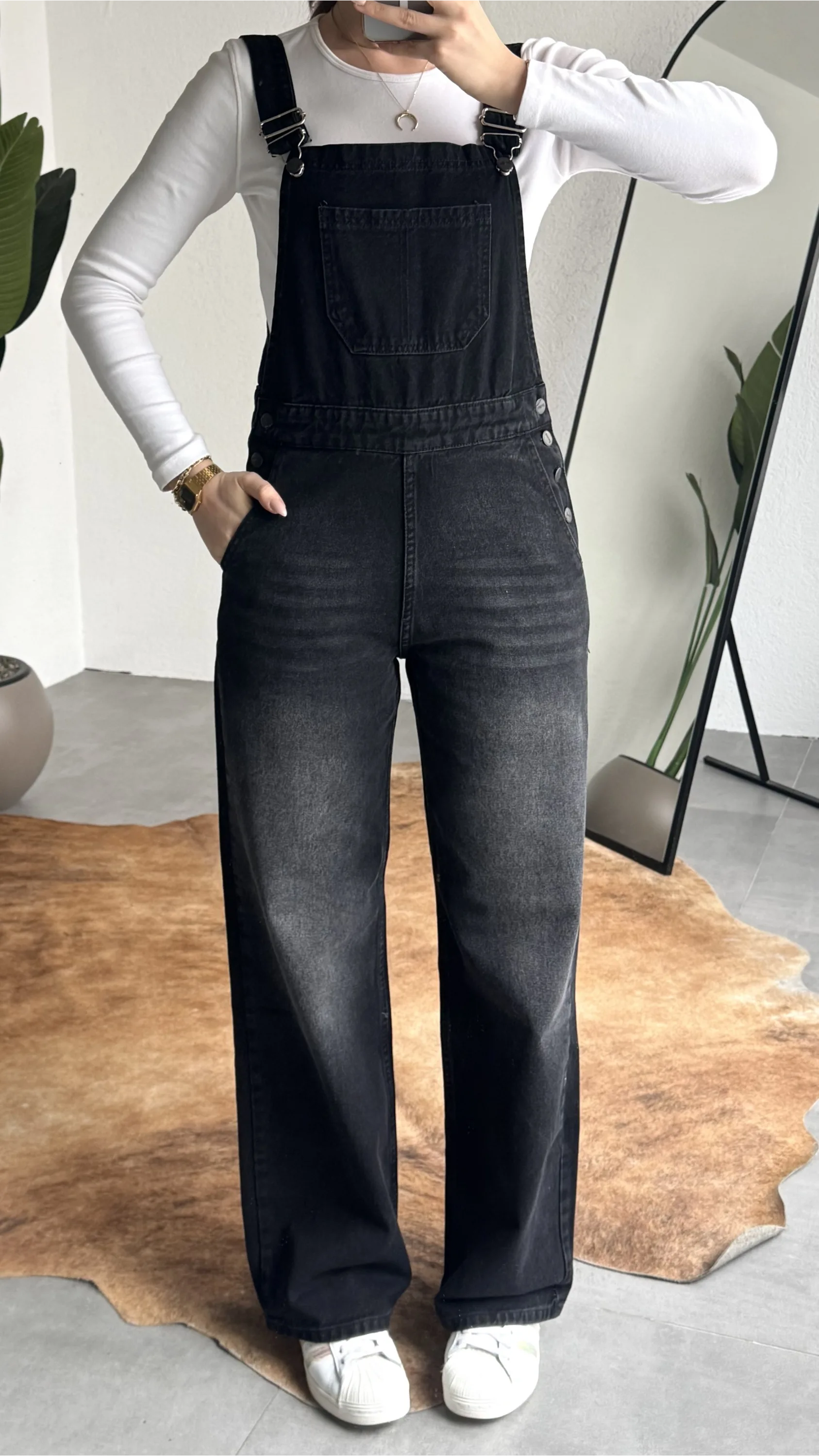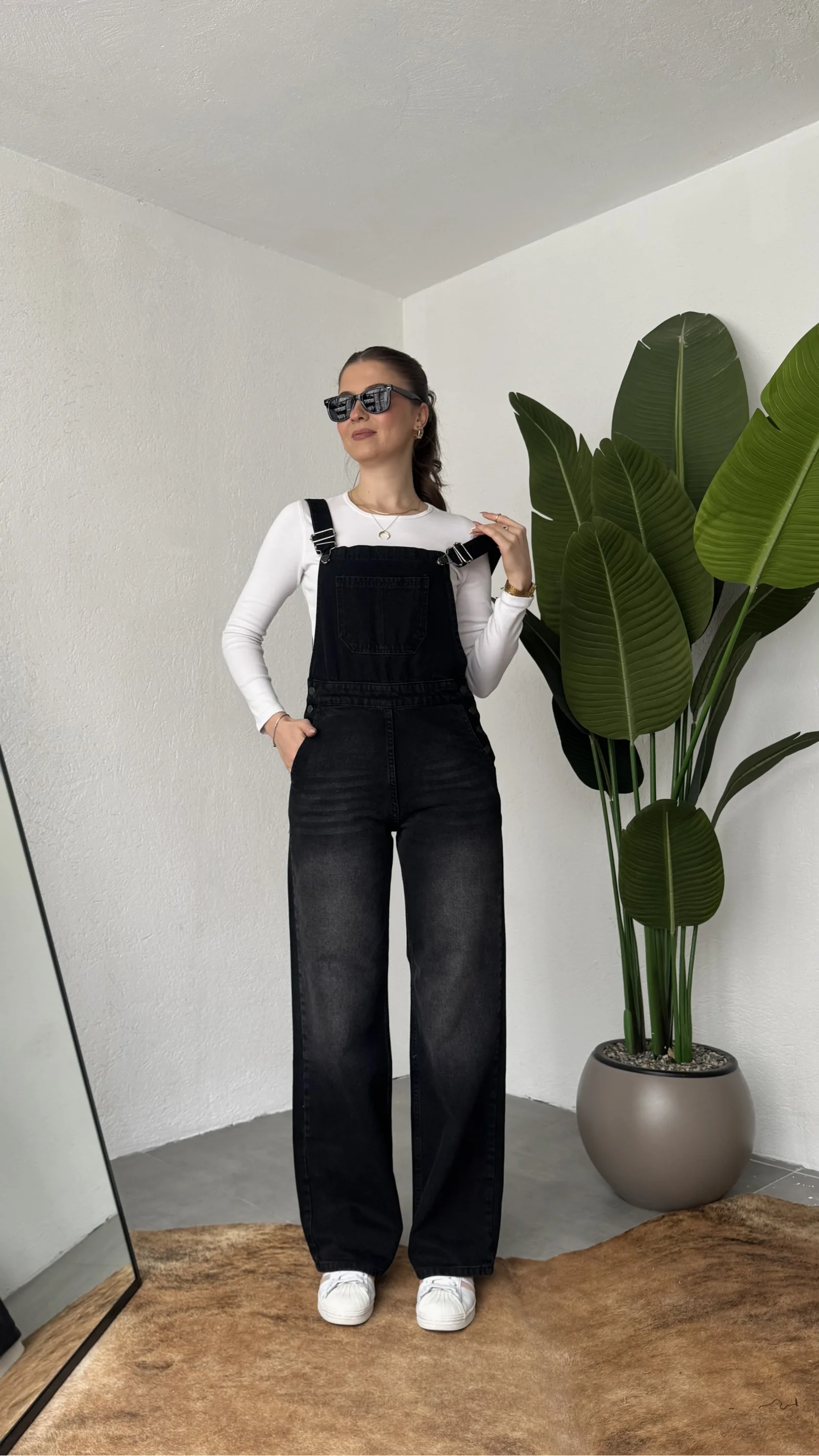 Ayarlanabilir askıları sayesinde kişisel konforunuza göre kullanım imkanı sunan bu denim tulum, basic tişörtler ve crop üstlerle mükemmel uyum sağlar. Spor ayakkabı veya botlarla kombinleyerek hem günlük hem şehir stilinde rahatlıkla tercih edebilirsiniz.