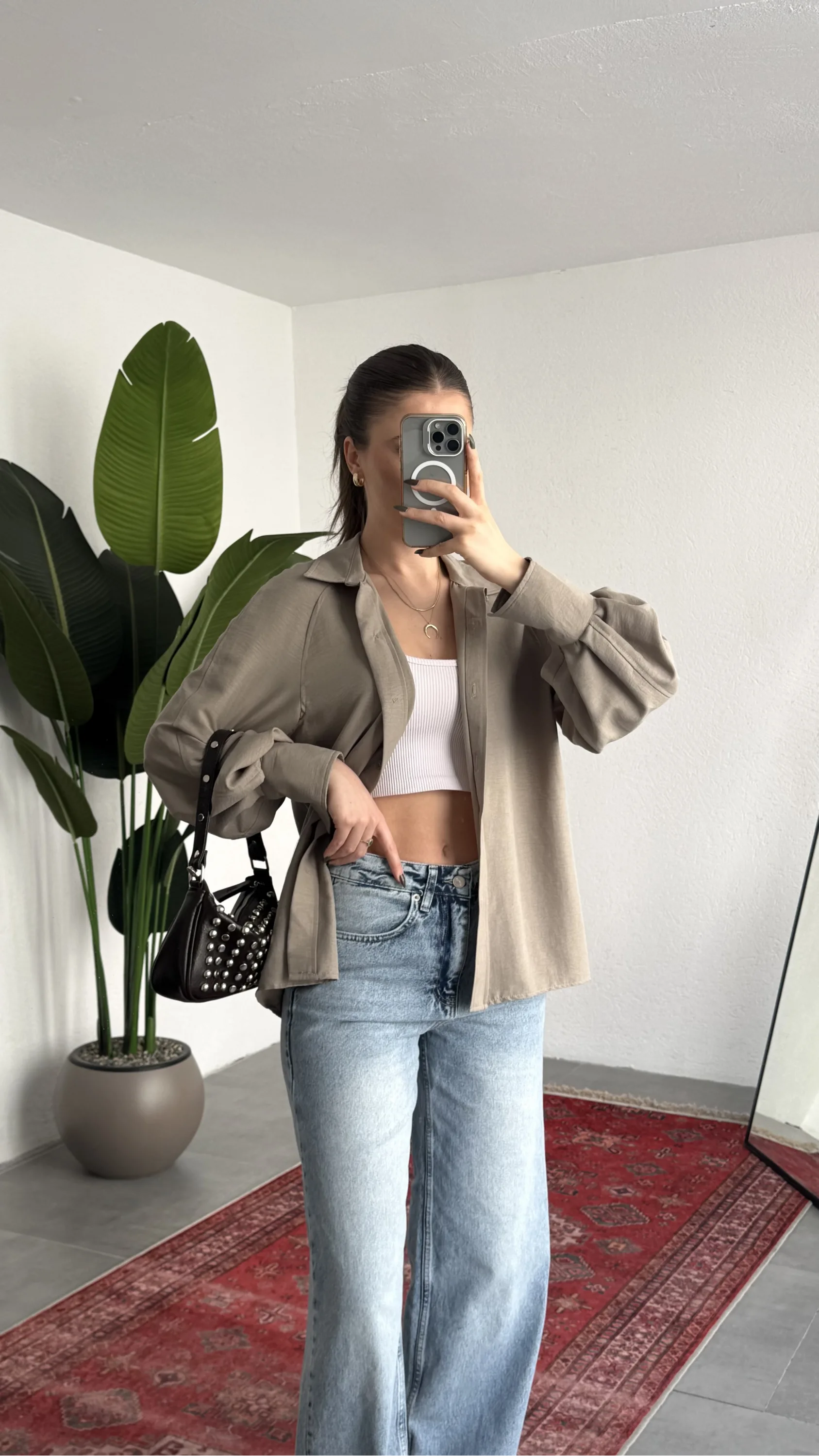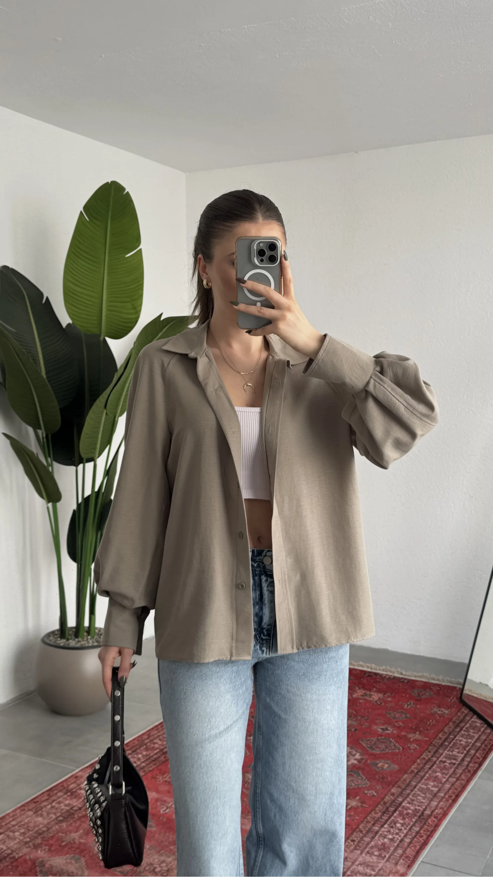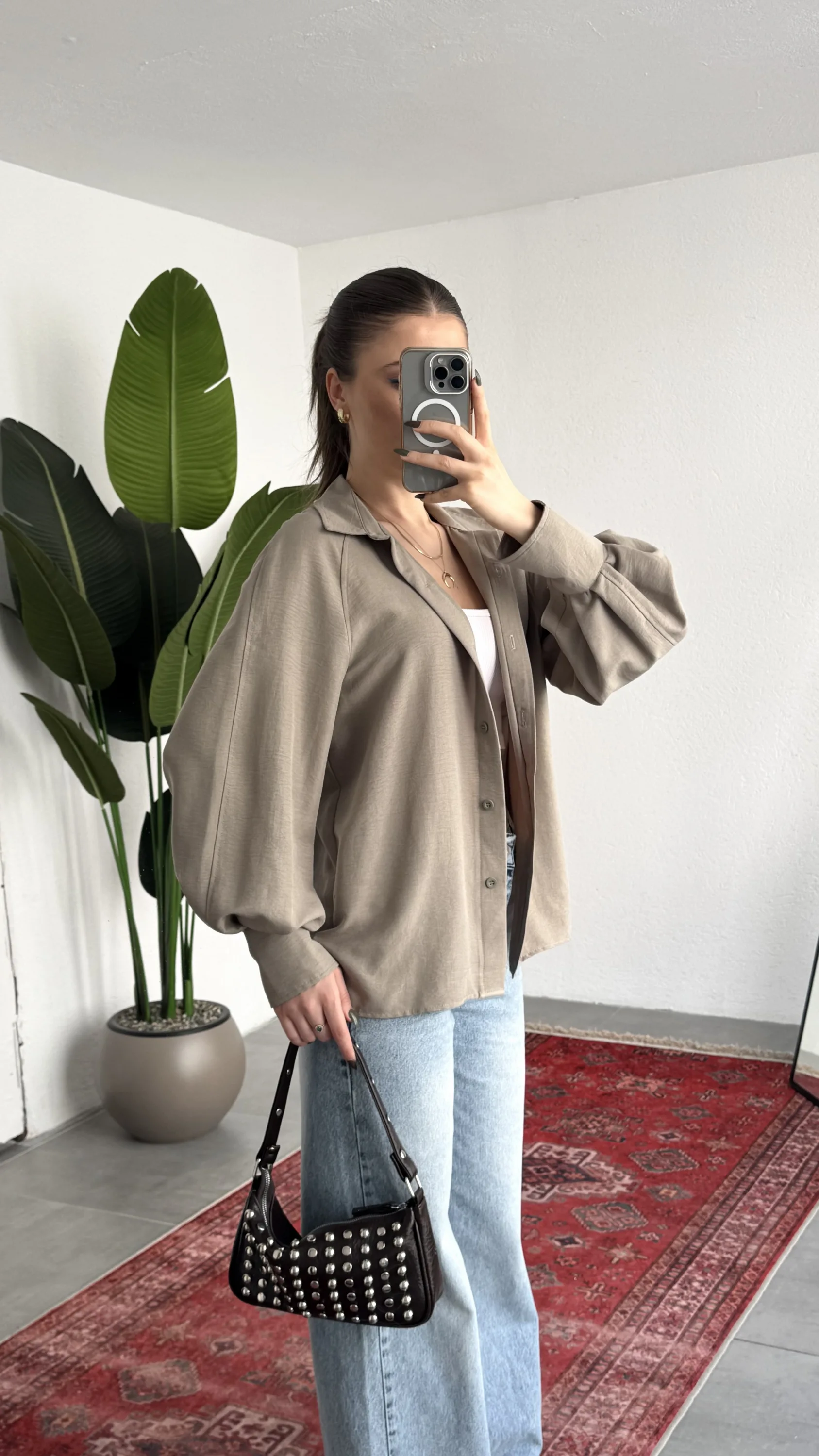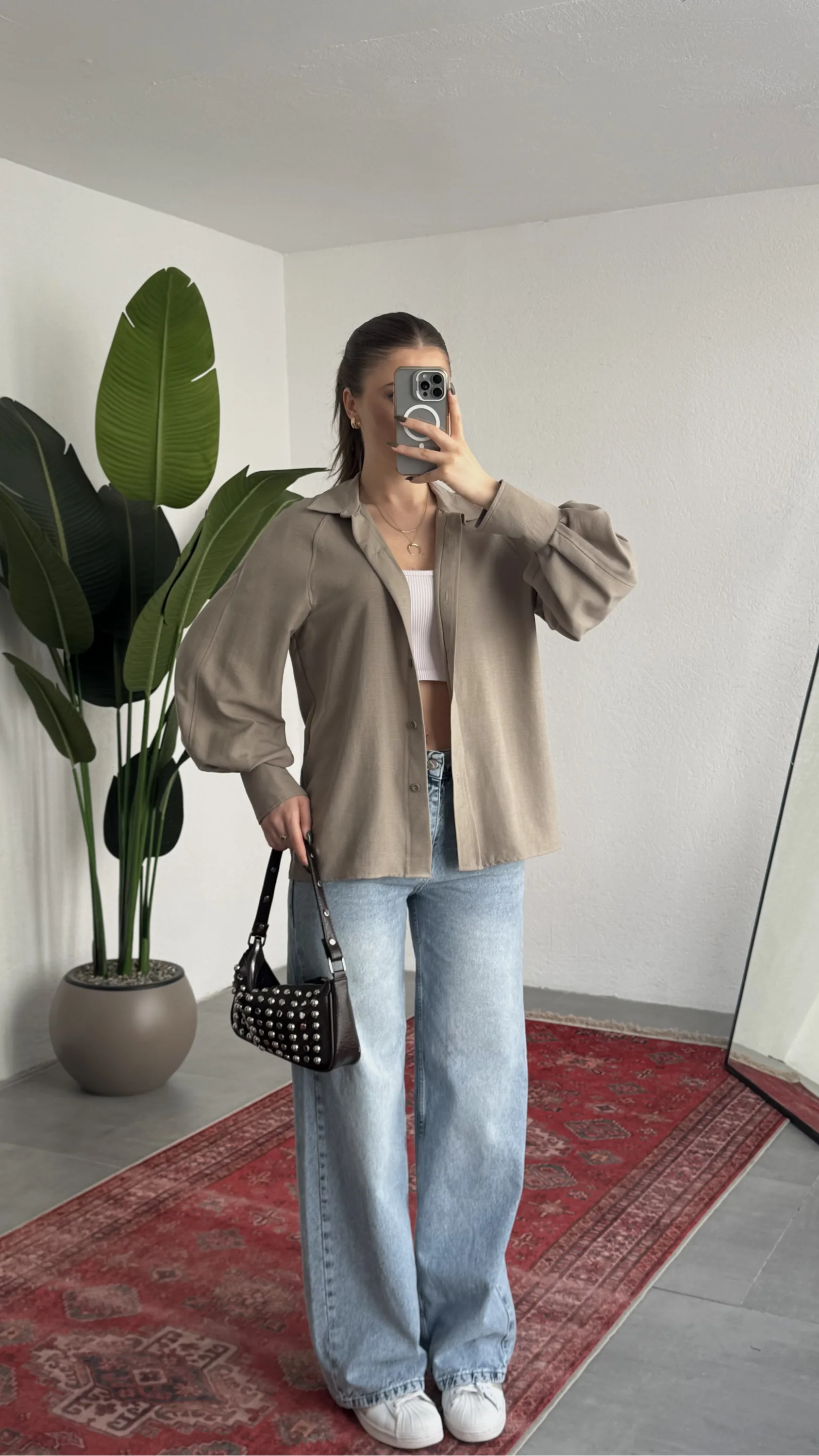 Modern ve zamansız tarzın vazgeçilmezi olan vizon oversize gömlek, rahat kesimi ve şık duruşuyla günlük kombinlerinizi bir üst seviyeye taşır. Hafif ve akışkan kumaşı sayesinde gün boyu konfor sunarken, salaş kesimi ile trend bir görünüm sağlar.