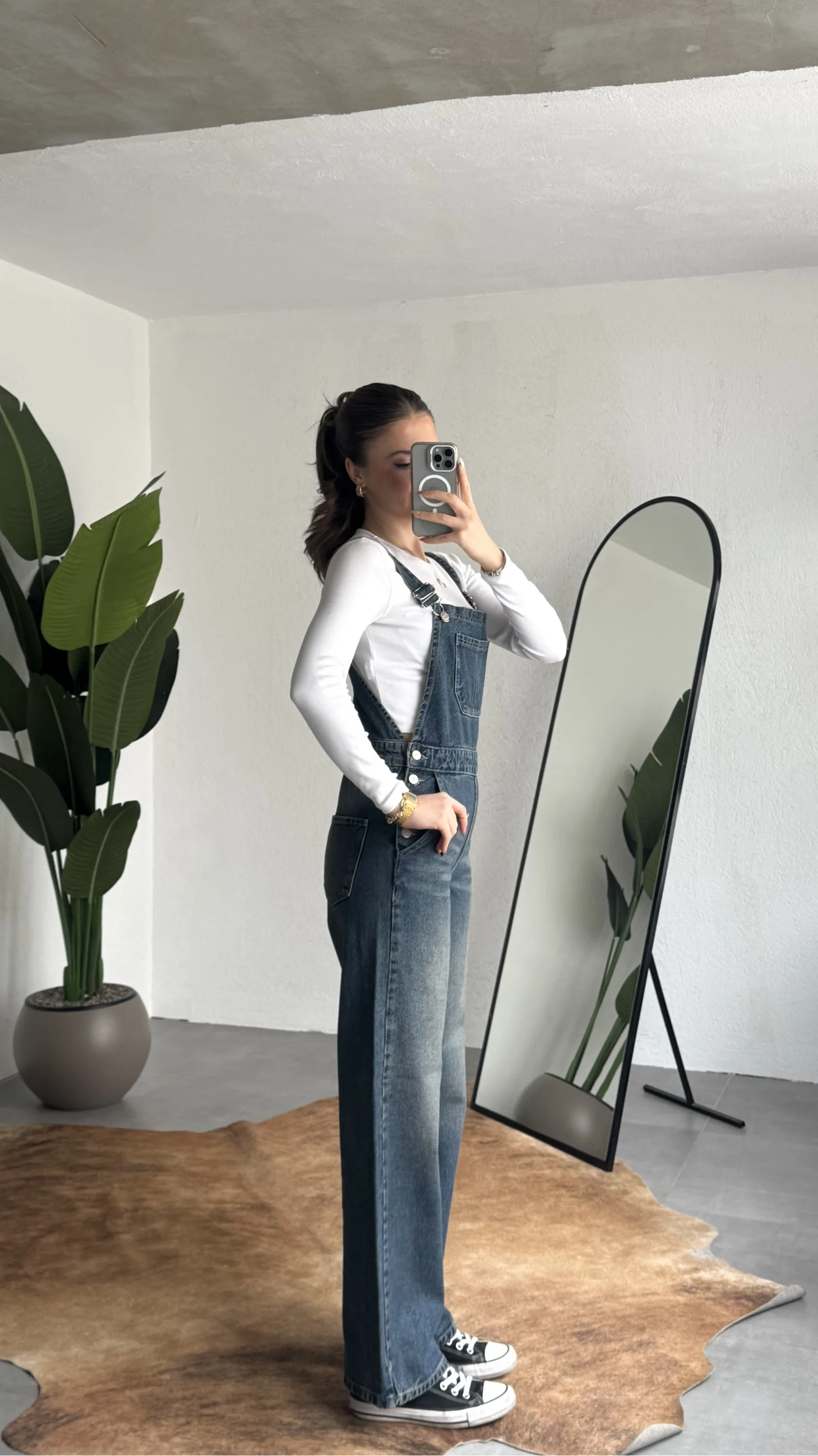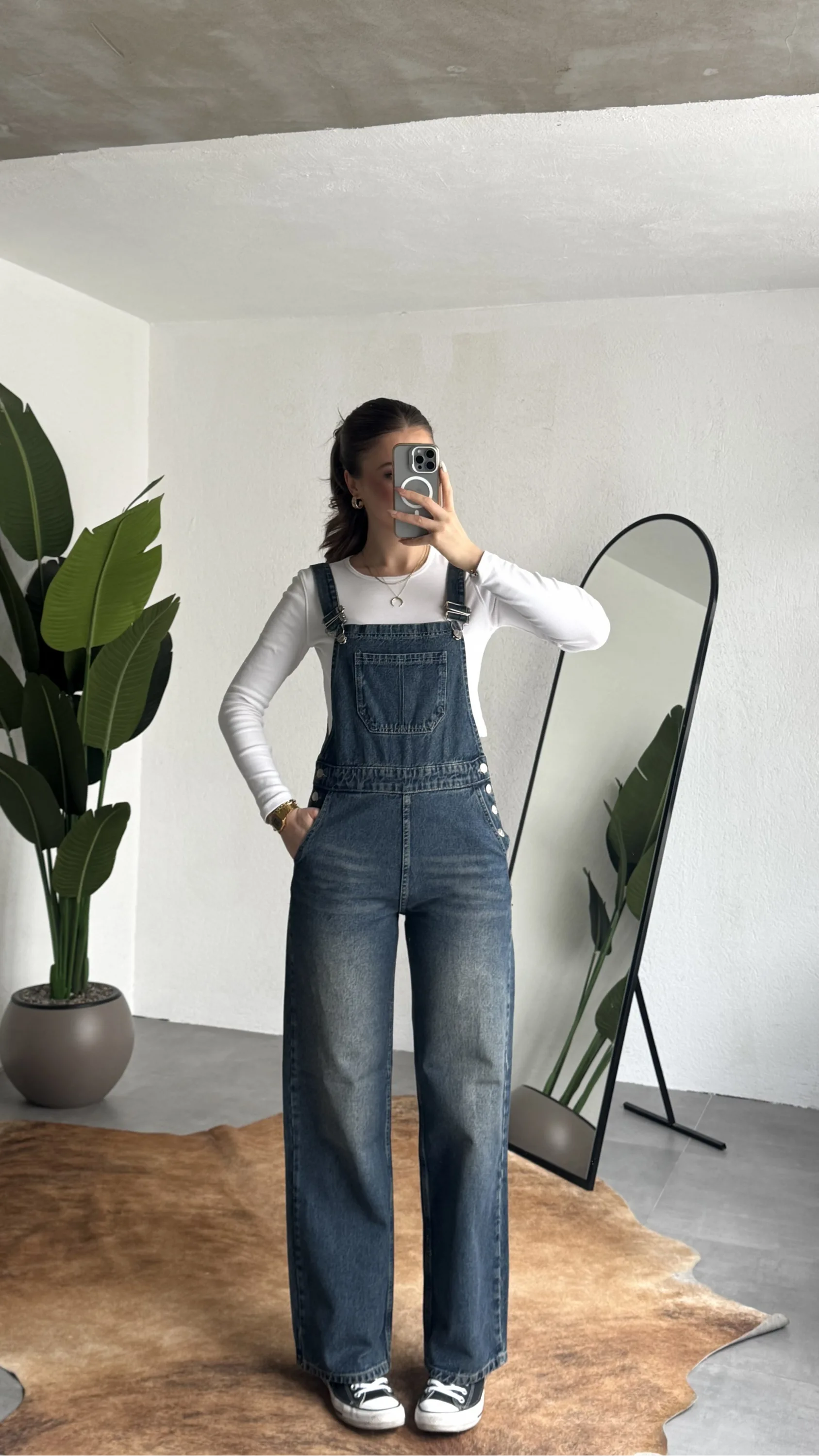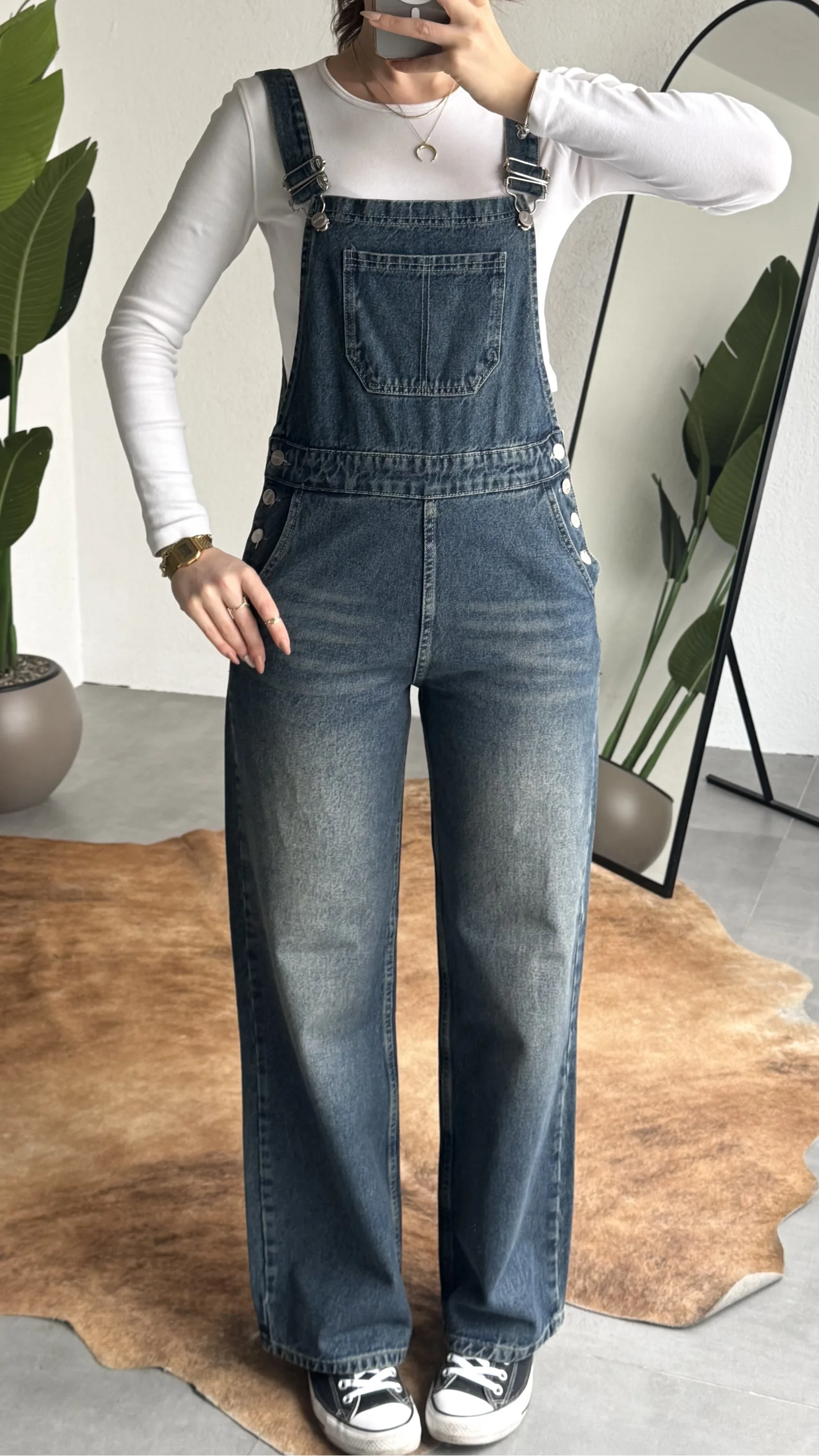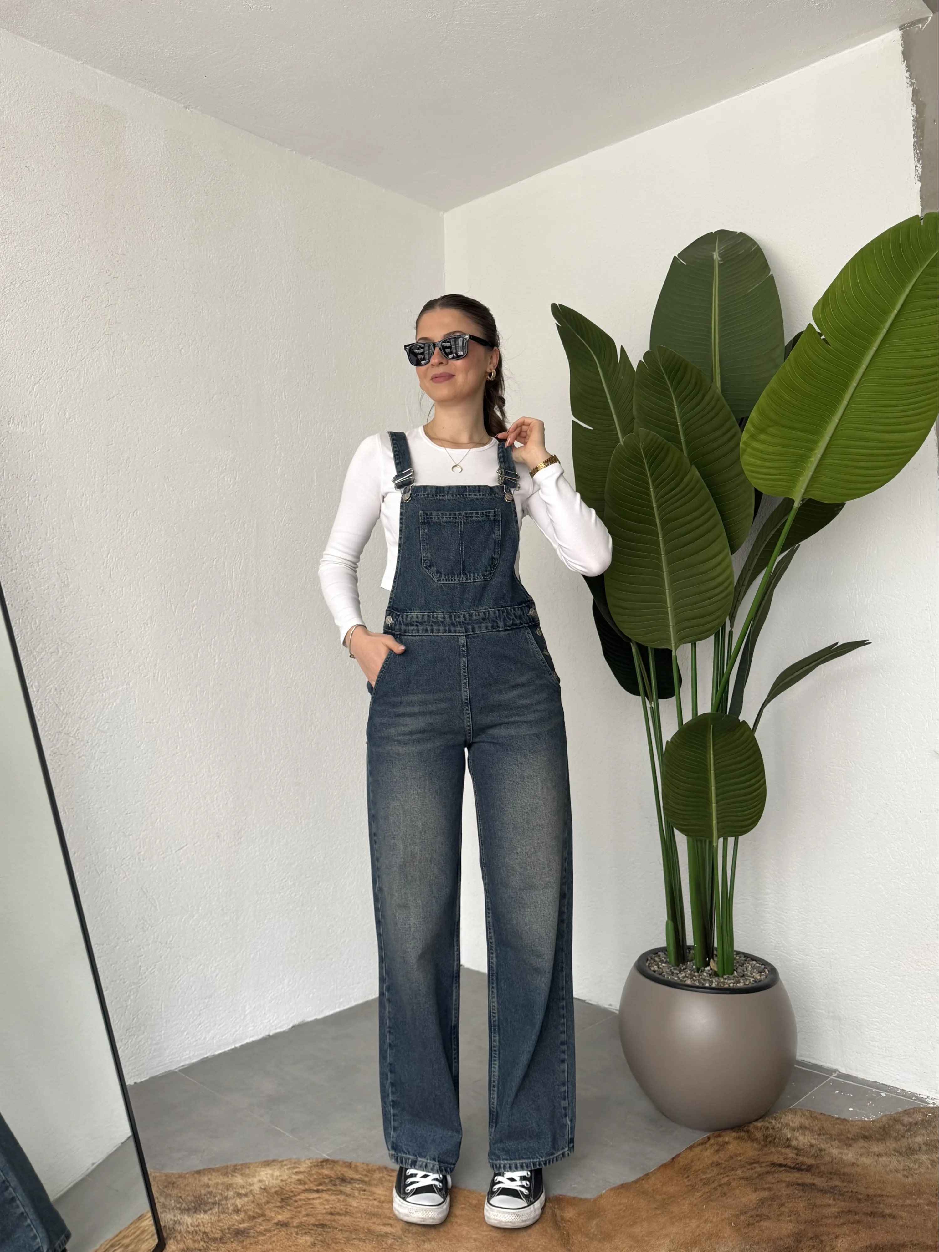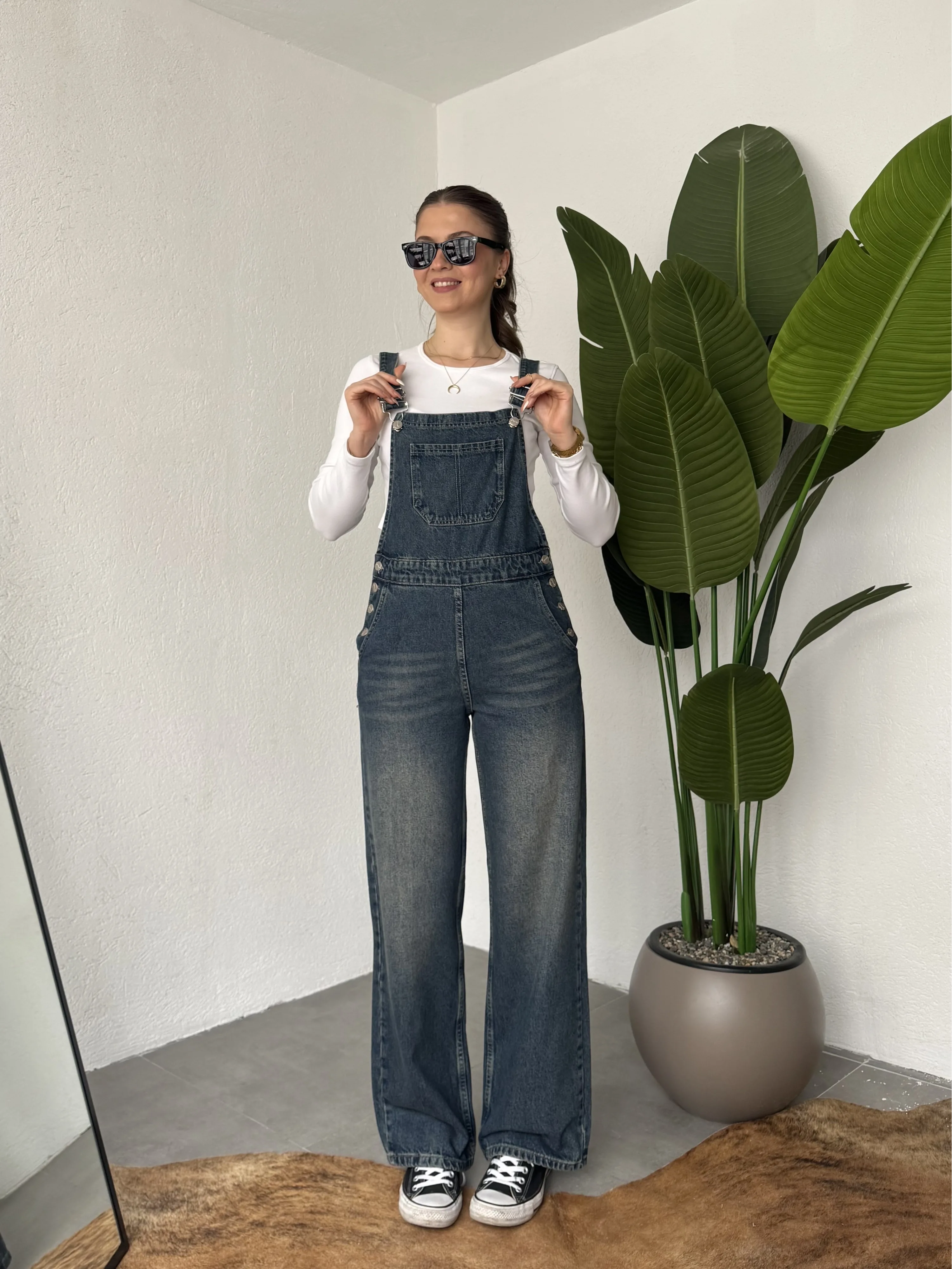 Ayarlanabilir askıları sayesinde kişisel konforunuza göre kullanım imkanı sunan bu denim tulum, basic tişörtler ve crop üstlerle mükemmel uyum sağlar. Spor ayakkabı veya botlarla kombinleyerek hem günlük hem şehir stilinde rahatlıkla tercih edebilirsiniz.