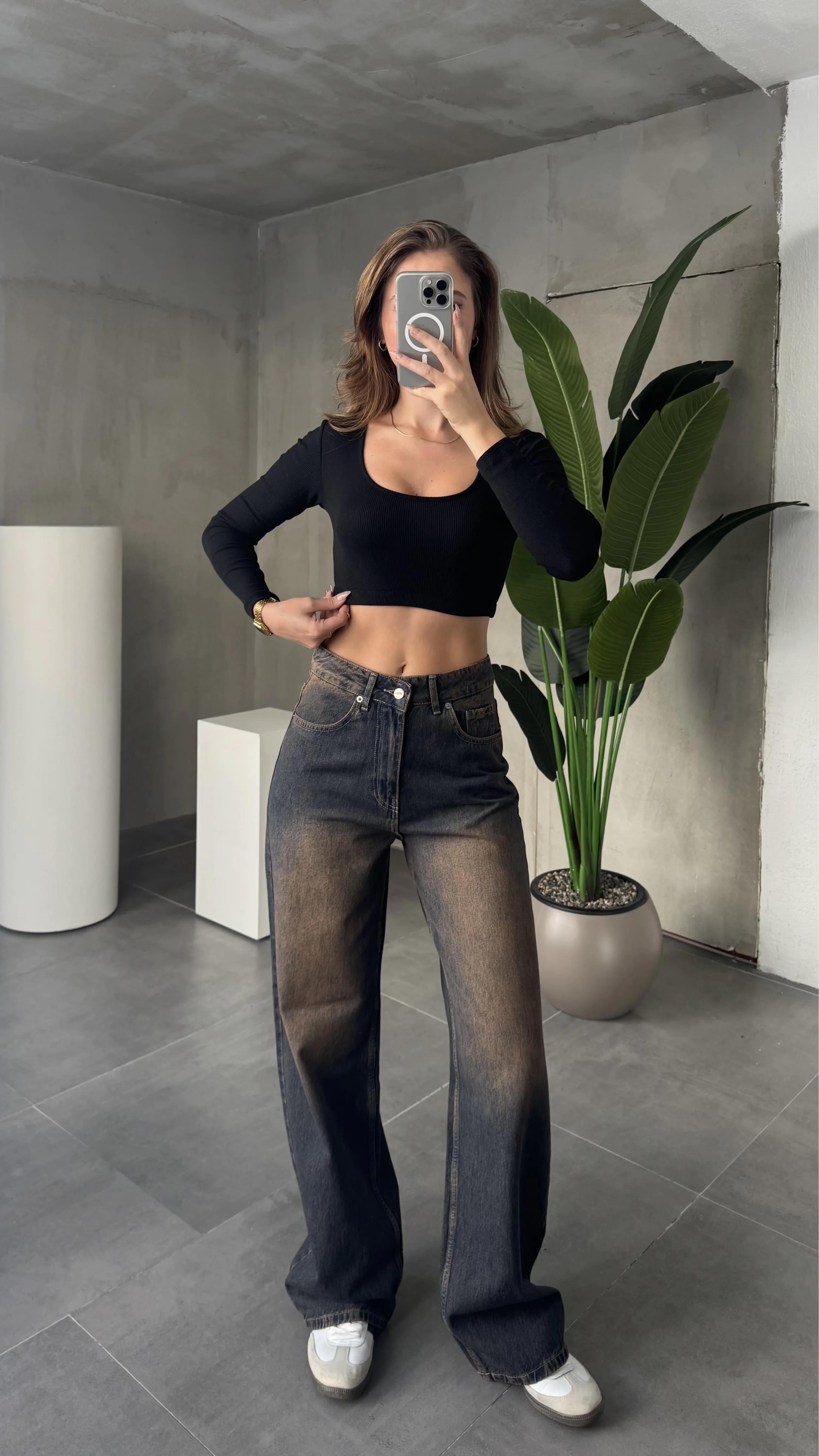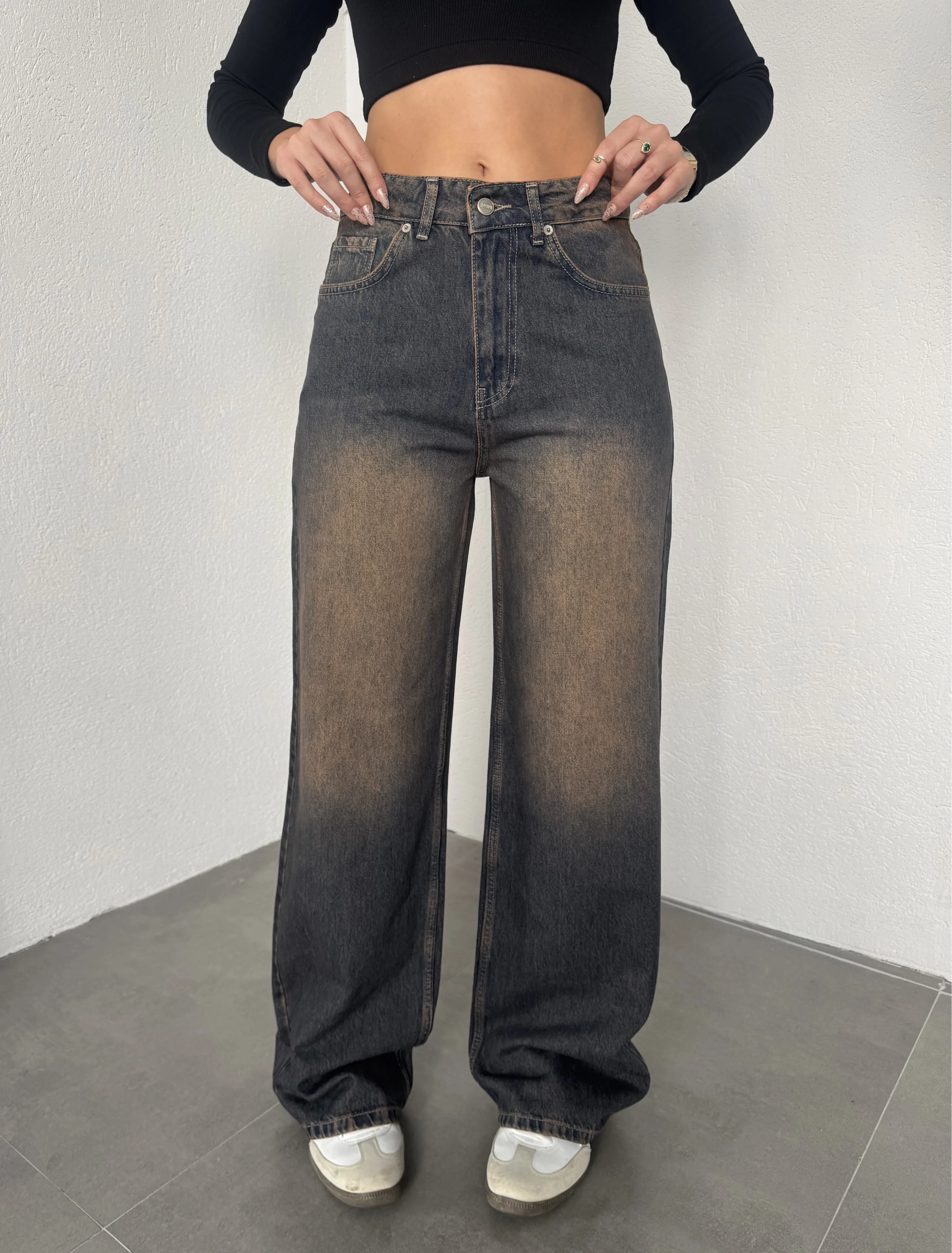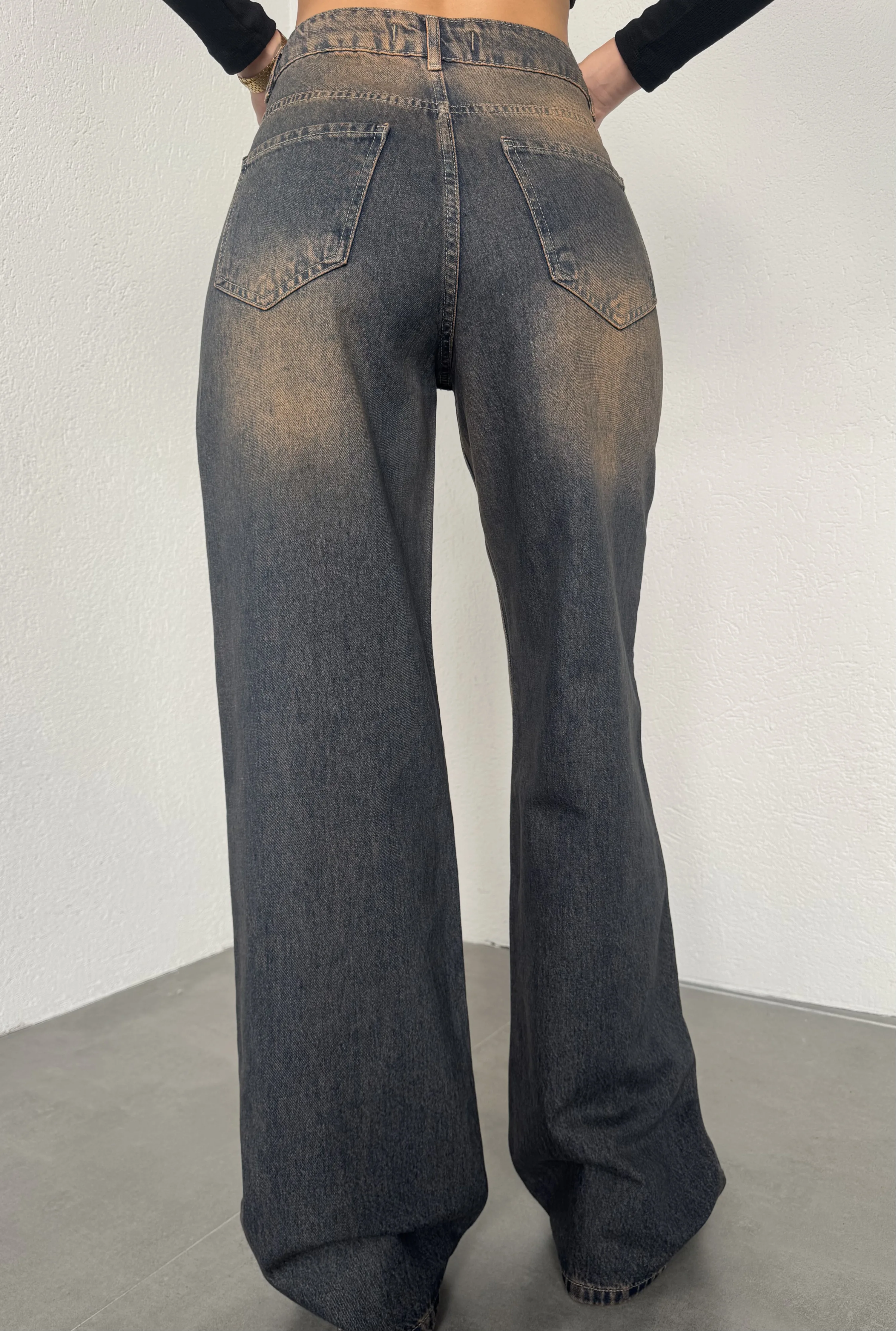 Yıkamalı Süper Baggy Ektra Geniş Paça Yüksek Bel Jean Kot Pantolon