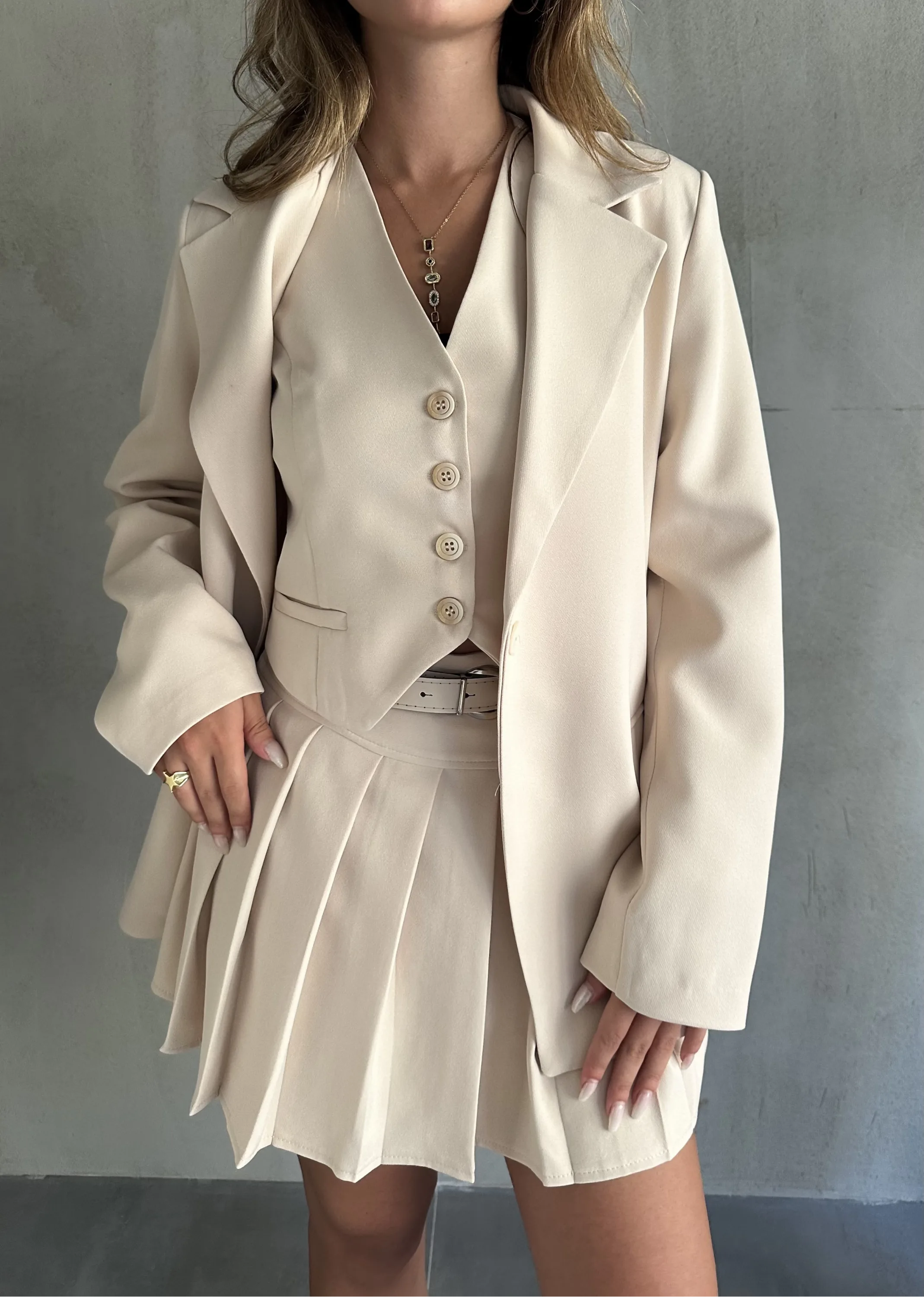 Krem Double Yelek-Etek & Blazer Ceket Üçlü Set Takım