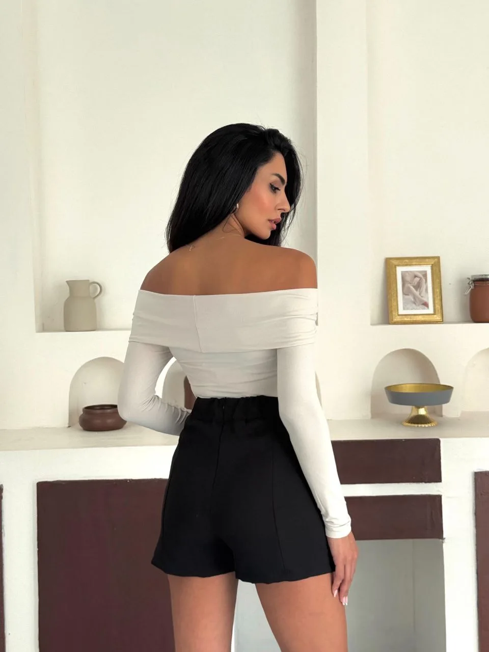 Beyaz Madonna Yaka Yumoş Triko Kazak