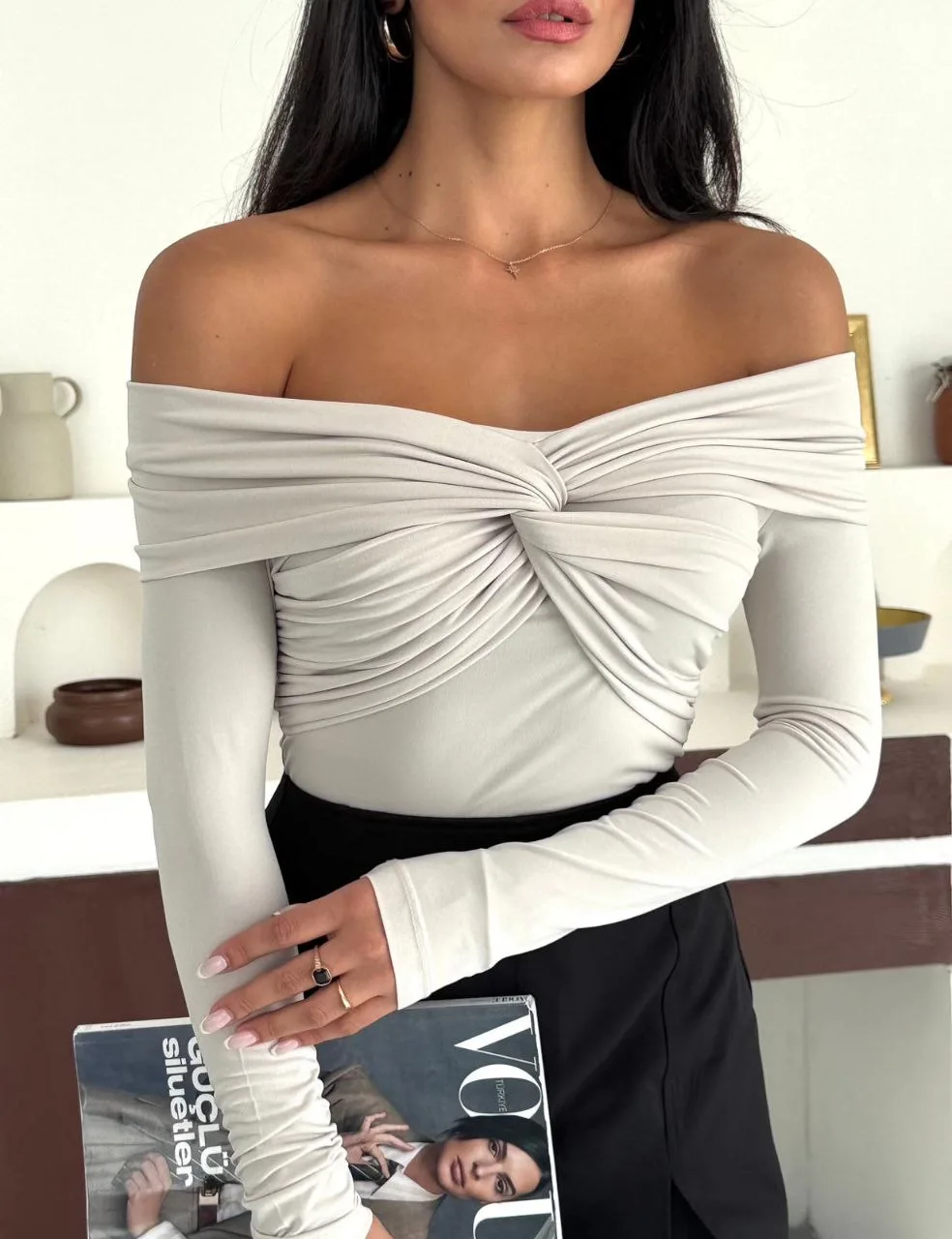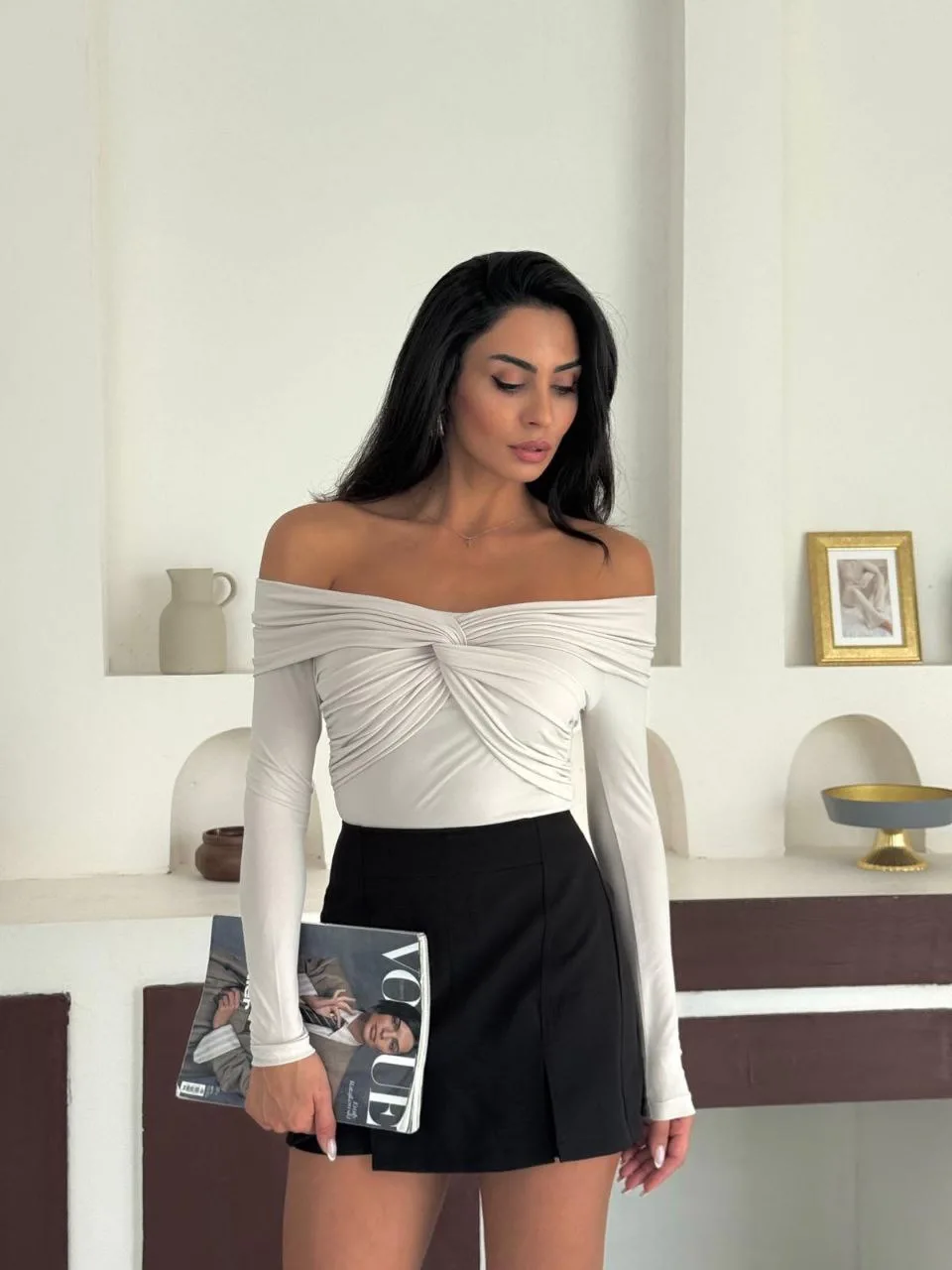 Krem Madonna Yaka Düğümlü Sandy Bluz