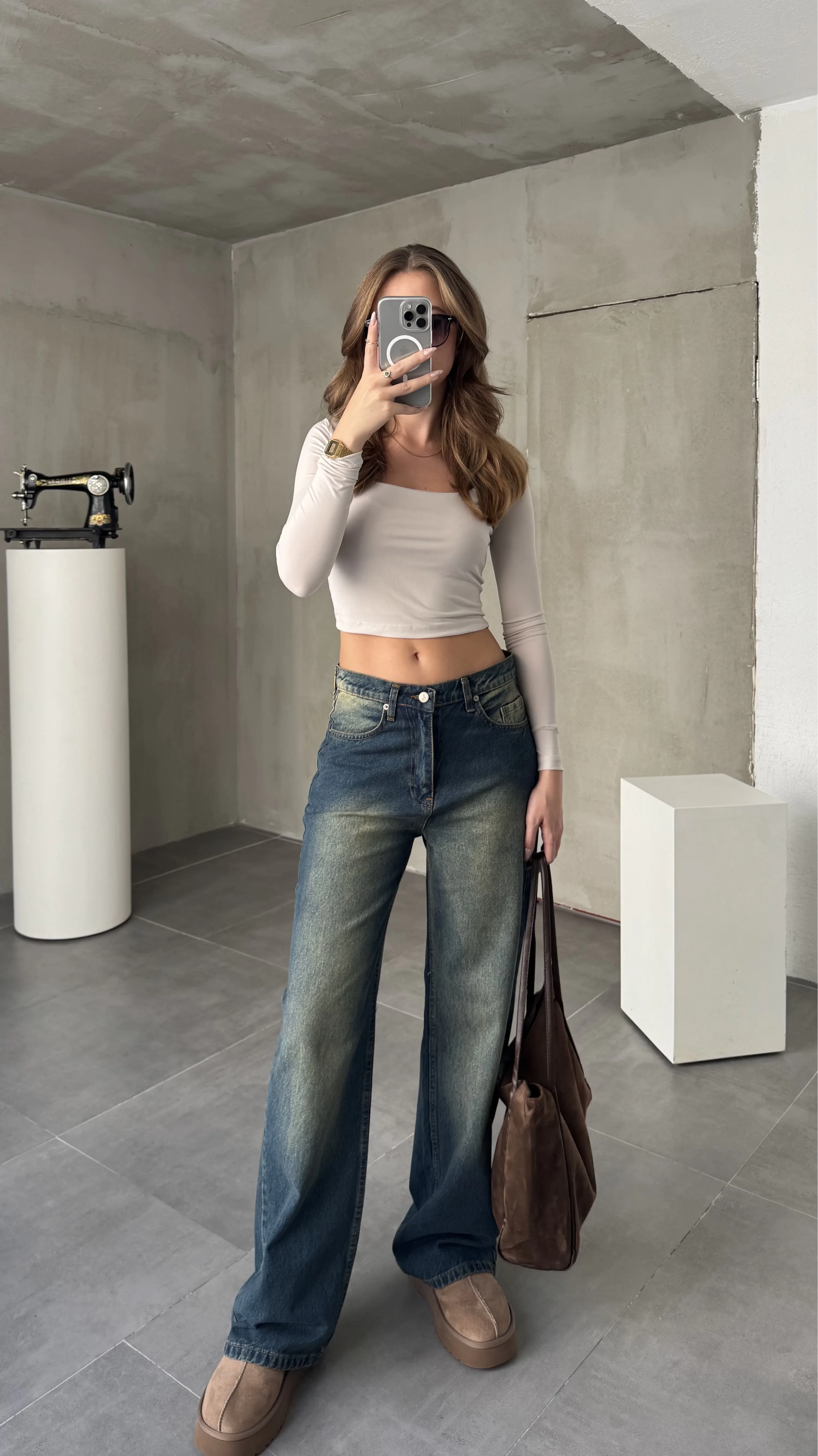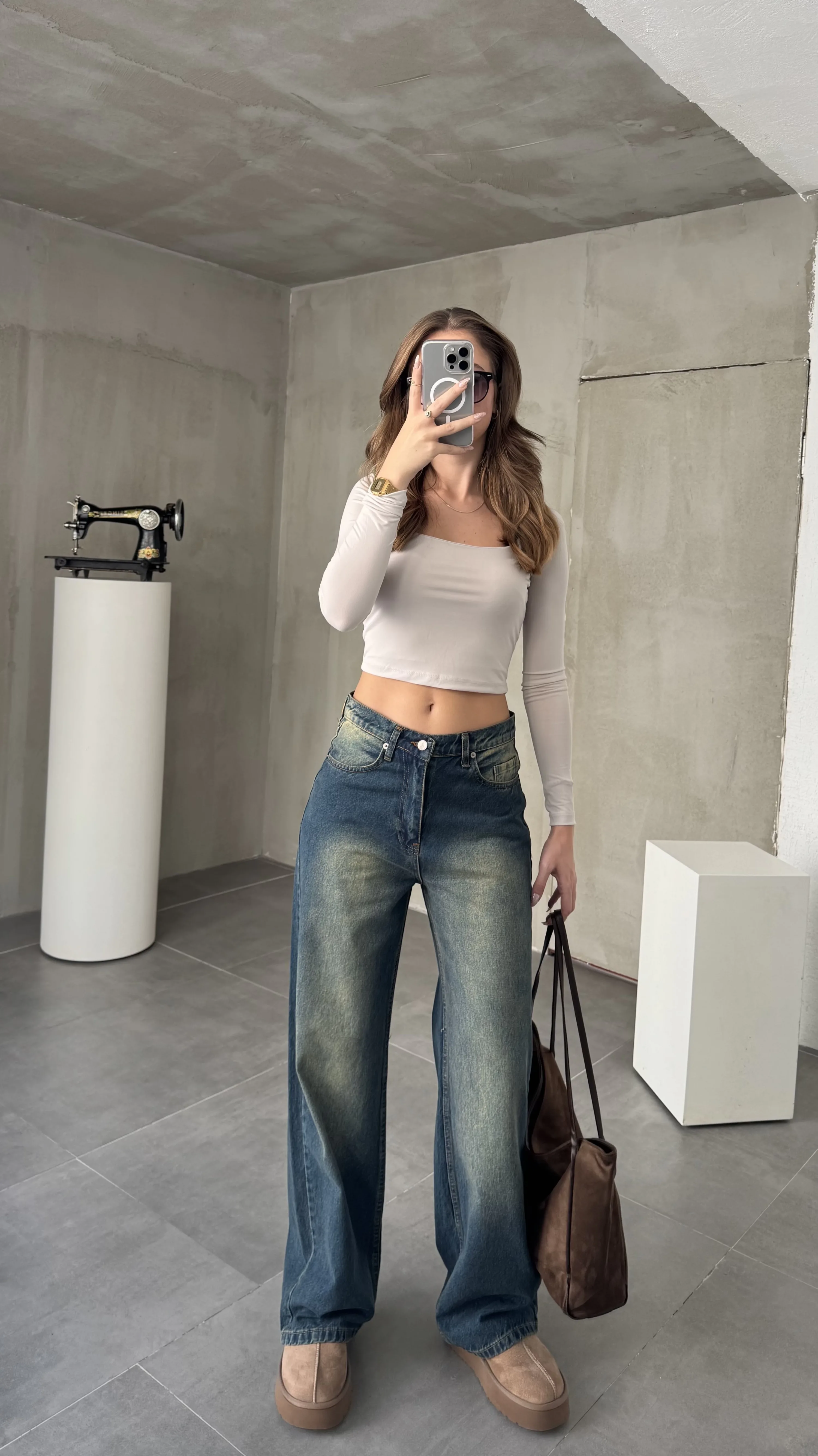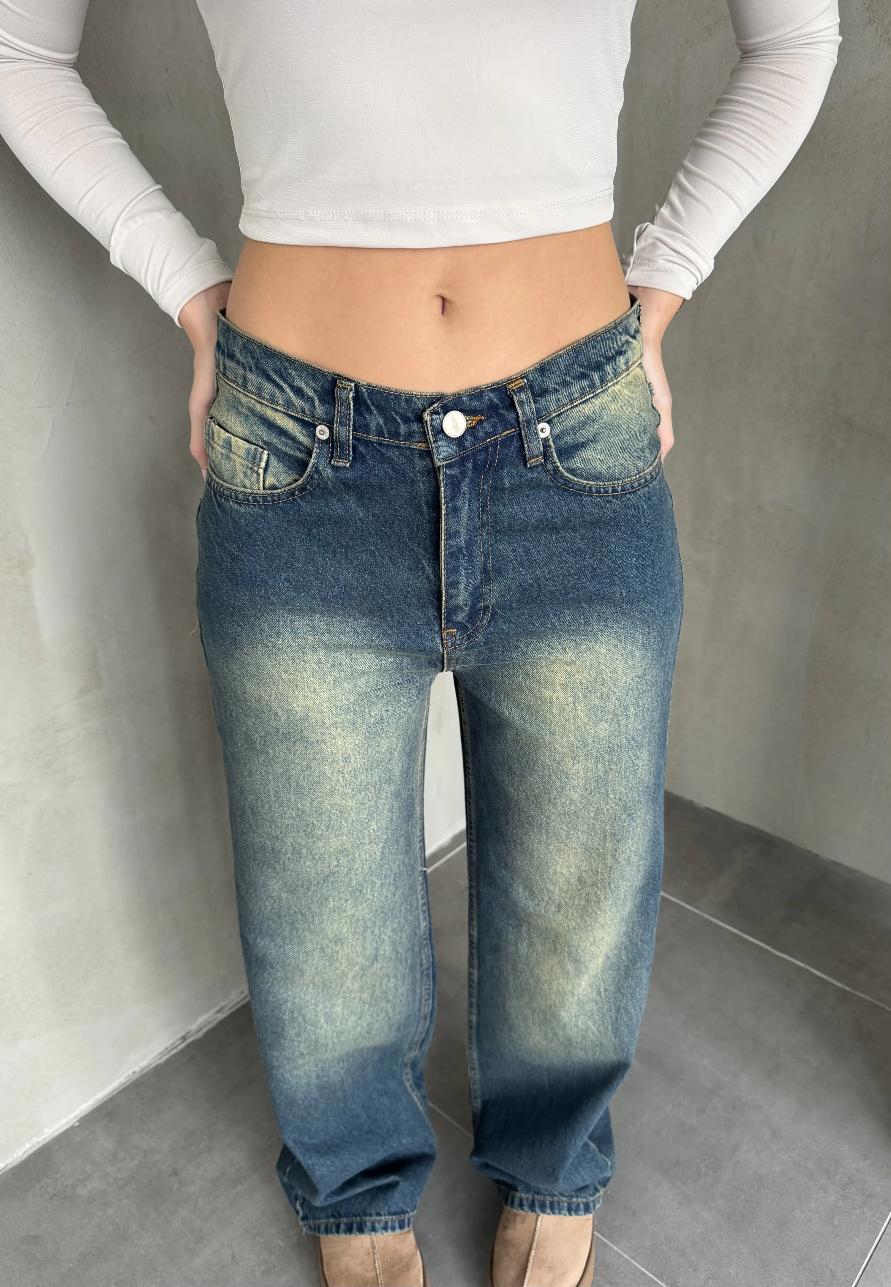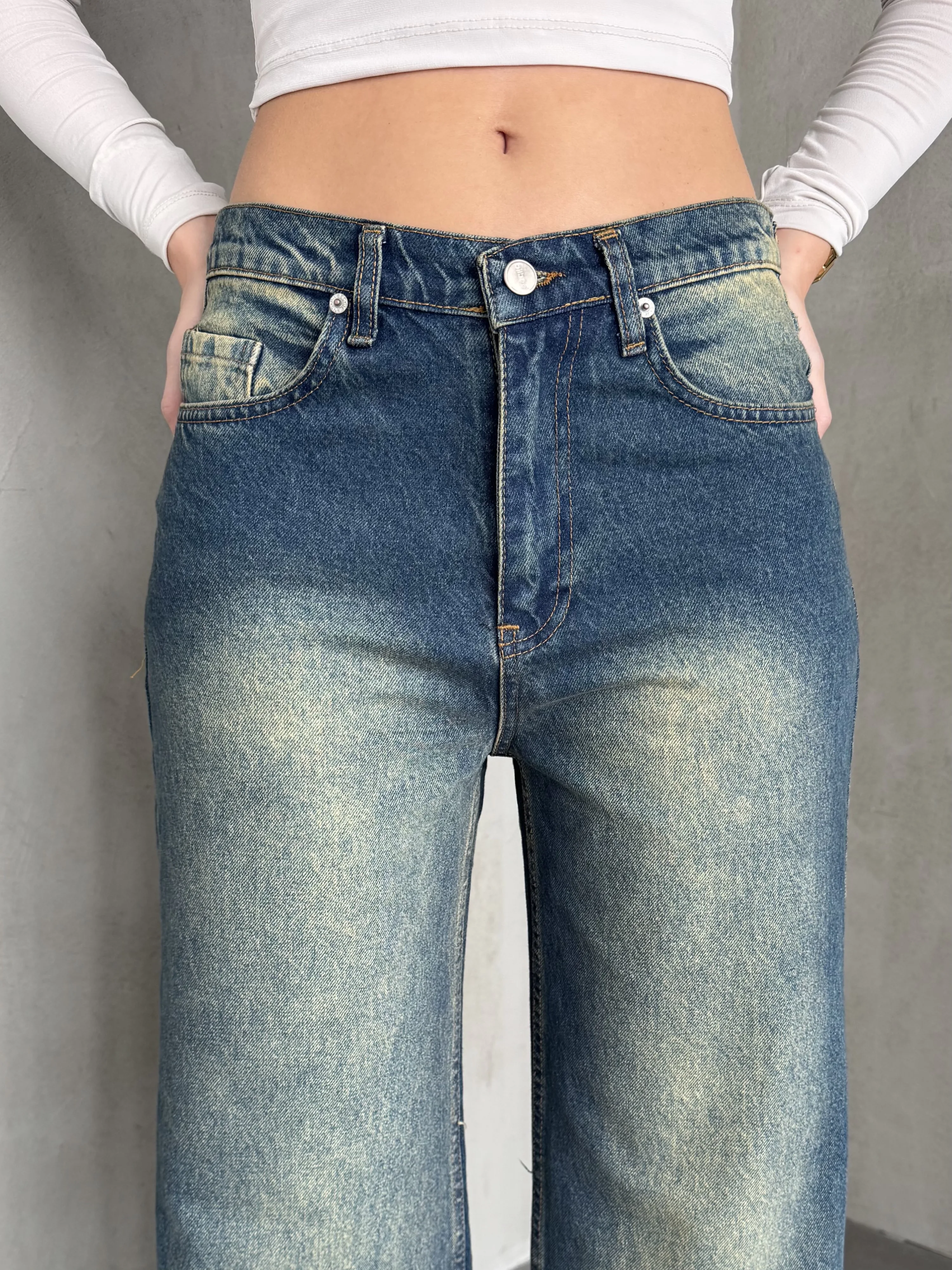 Yıkamalı Baggy Geniş Paça Yüksek Bel Wide Leg Jean Kot Pantolon