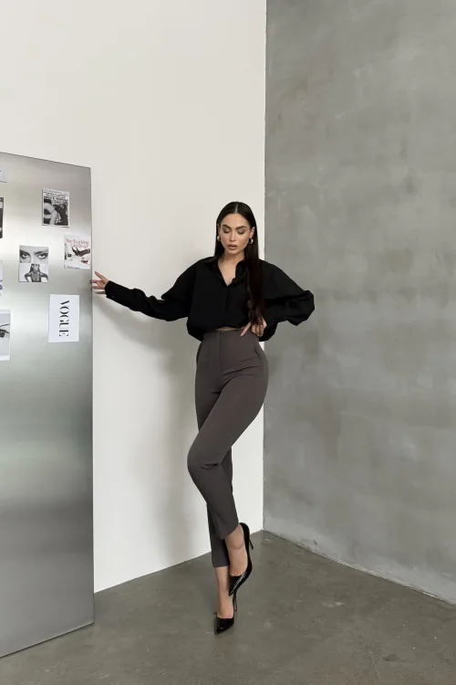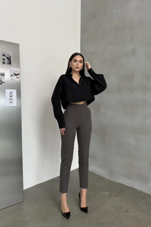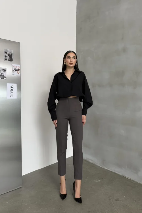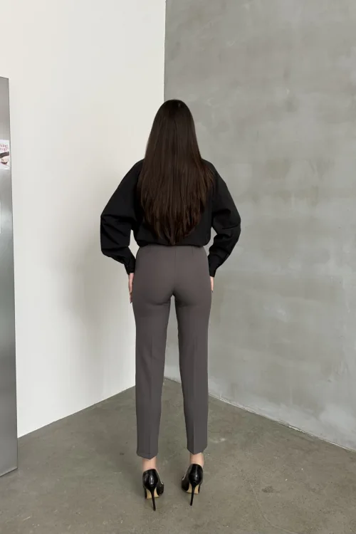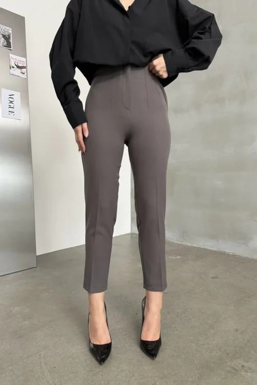 Antrasit ZR Model Piliseli Bel Oturtmalı Düğmesiz Pantolon
