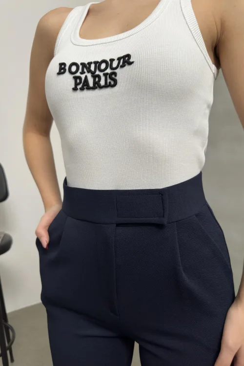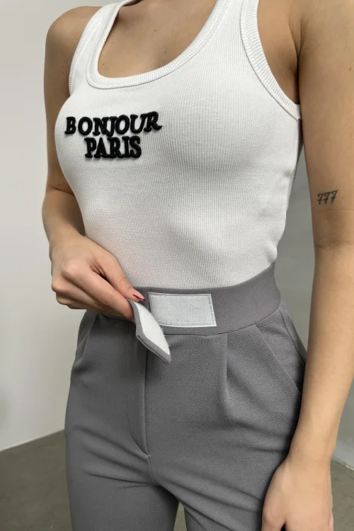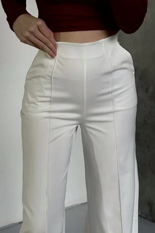 Beyaz ZR Model Piliseli Bel Oturtmalı Düğmesiz Pantolon