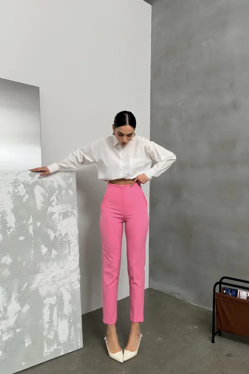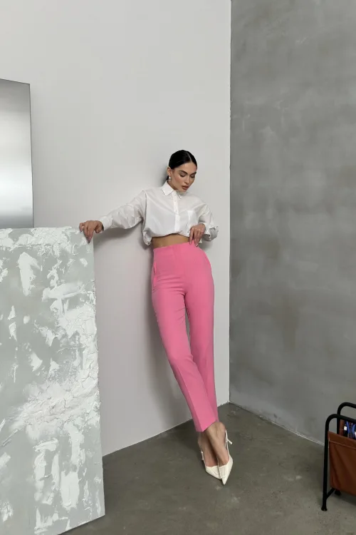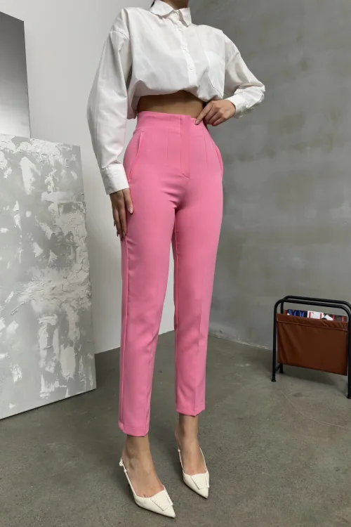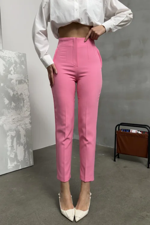Pembe ZR Model Piliseli Bel Oturtmalı Düğmesiz Pantolon