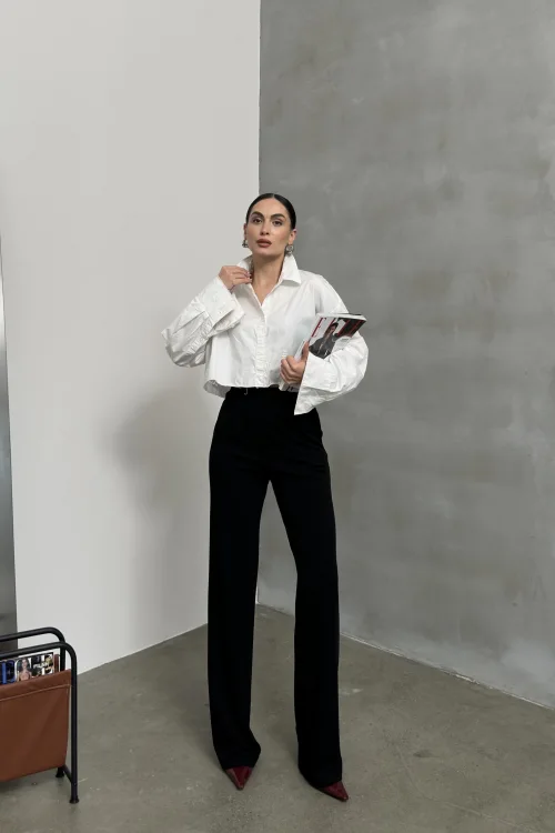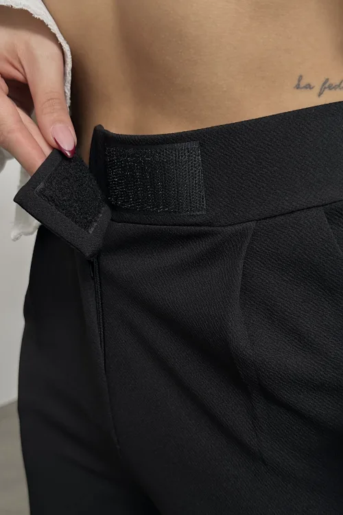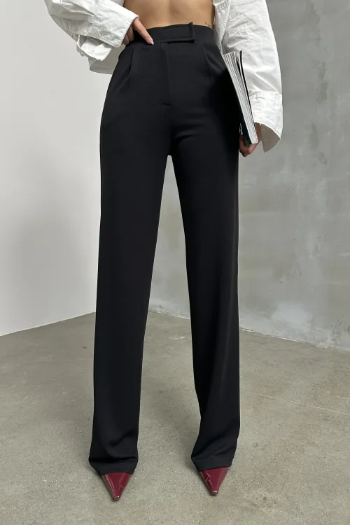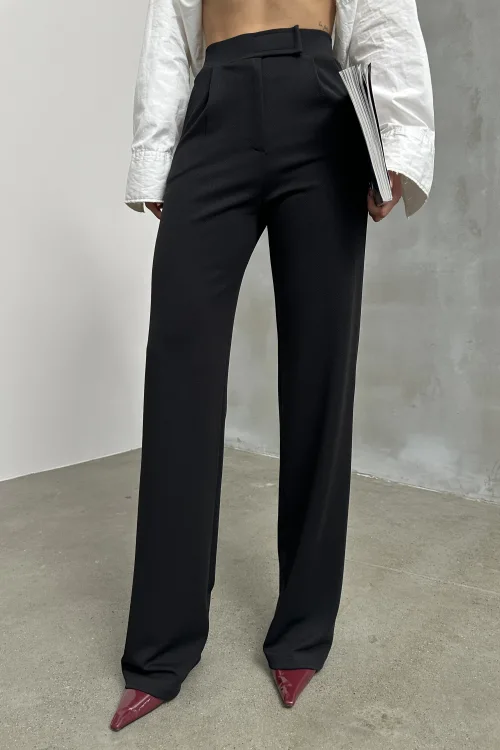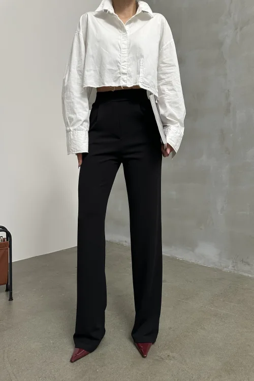 Siyah Yüksek Bel Cırtlı Bel Oturtmalı Palazzo Pantolon