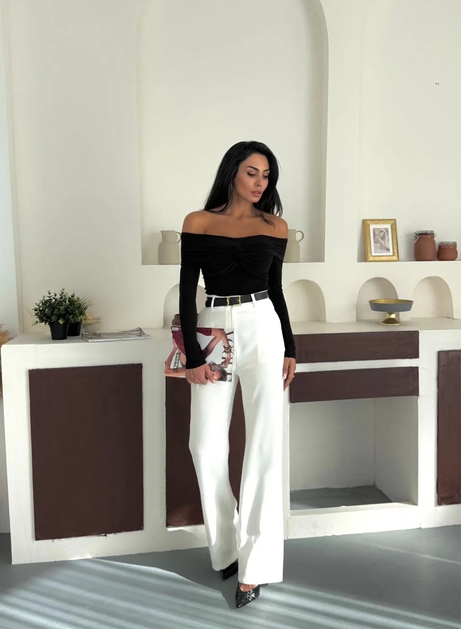 Siyah Madonna Yaka Düğümlü Sandy Bluz