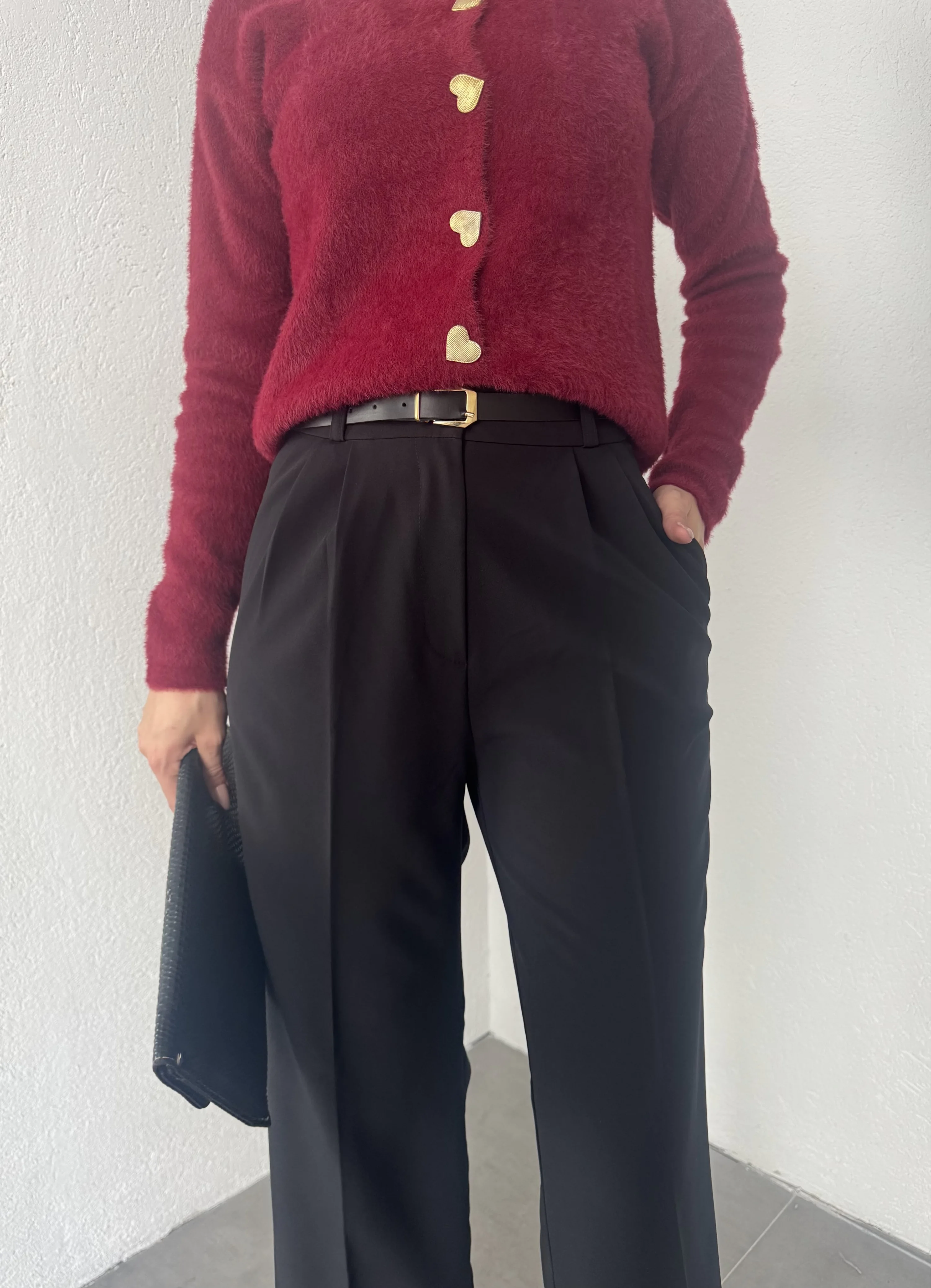 Siyah Pileli Tam Kalıp Bel Oturtmalı Geniş Paça Palazzo Pantolon