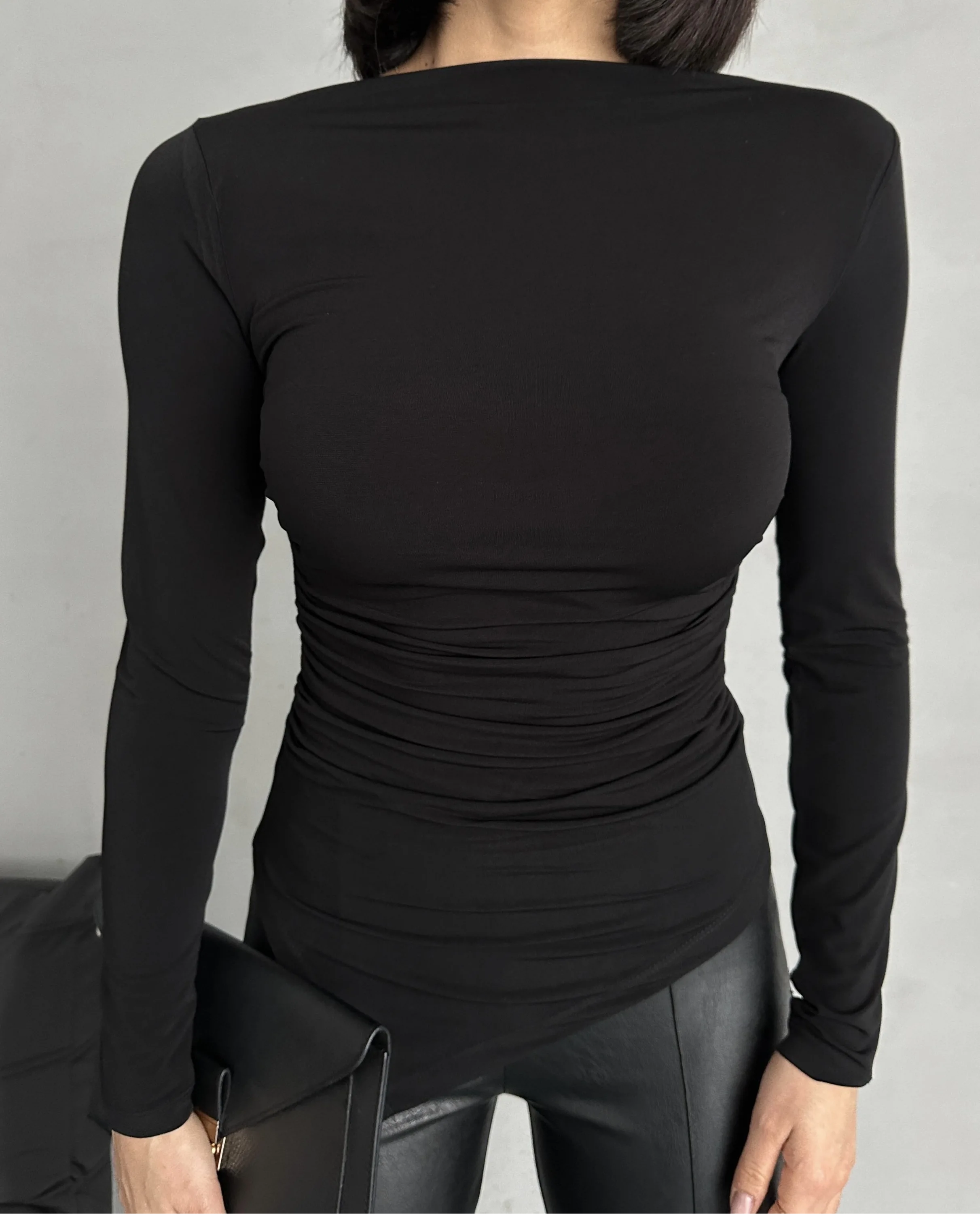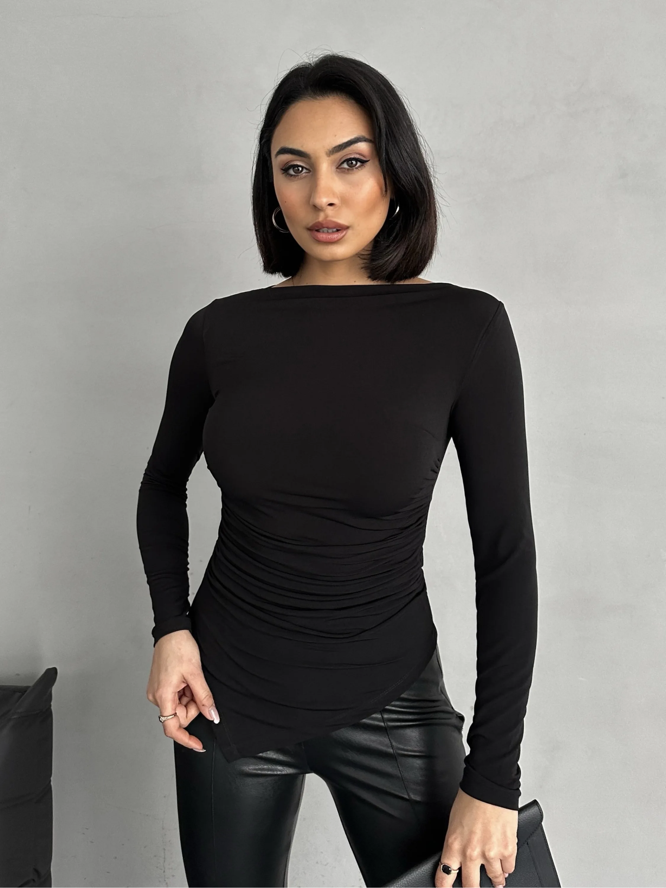 Siyah Zr Model Asimetrik Kesim Drapeli Büzgülü Candy Body Bluz