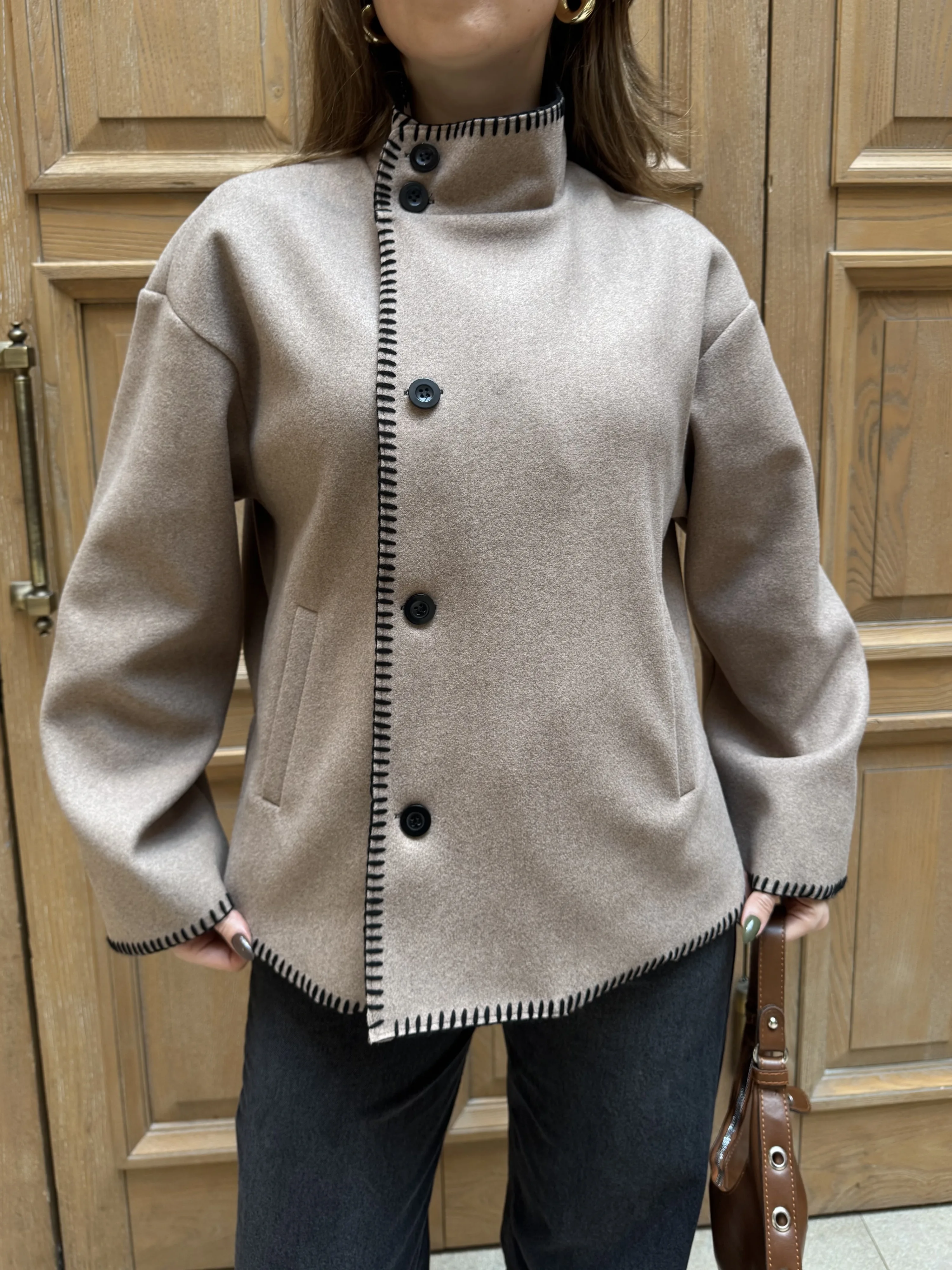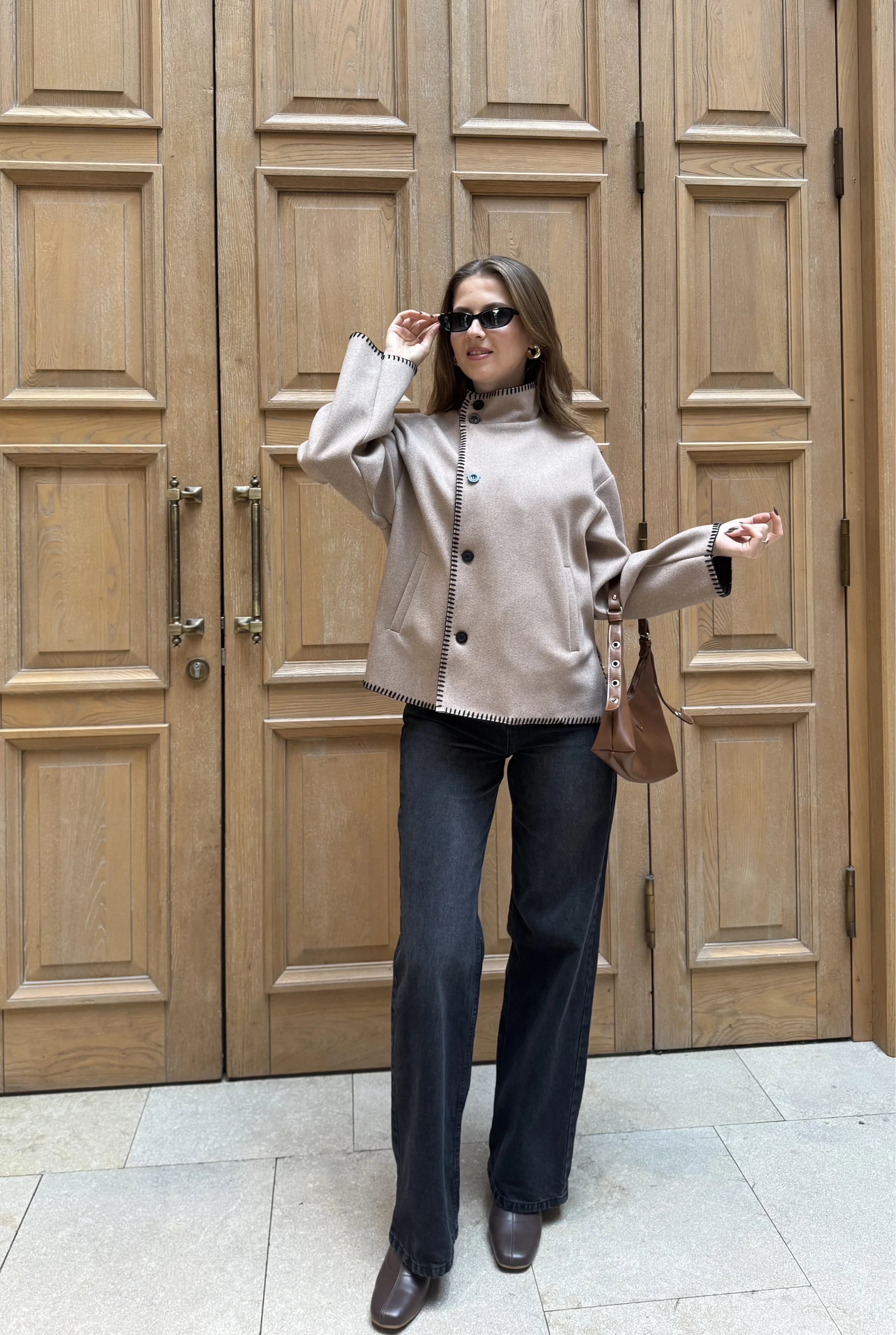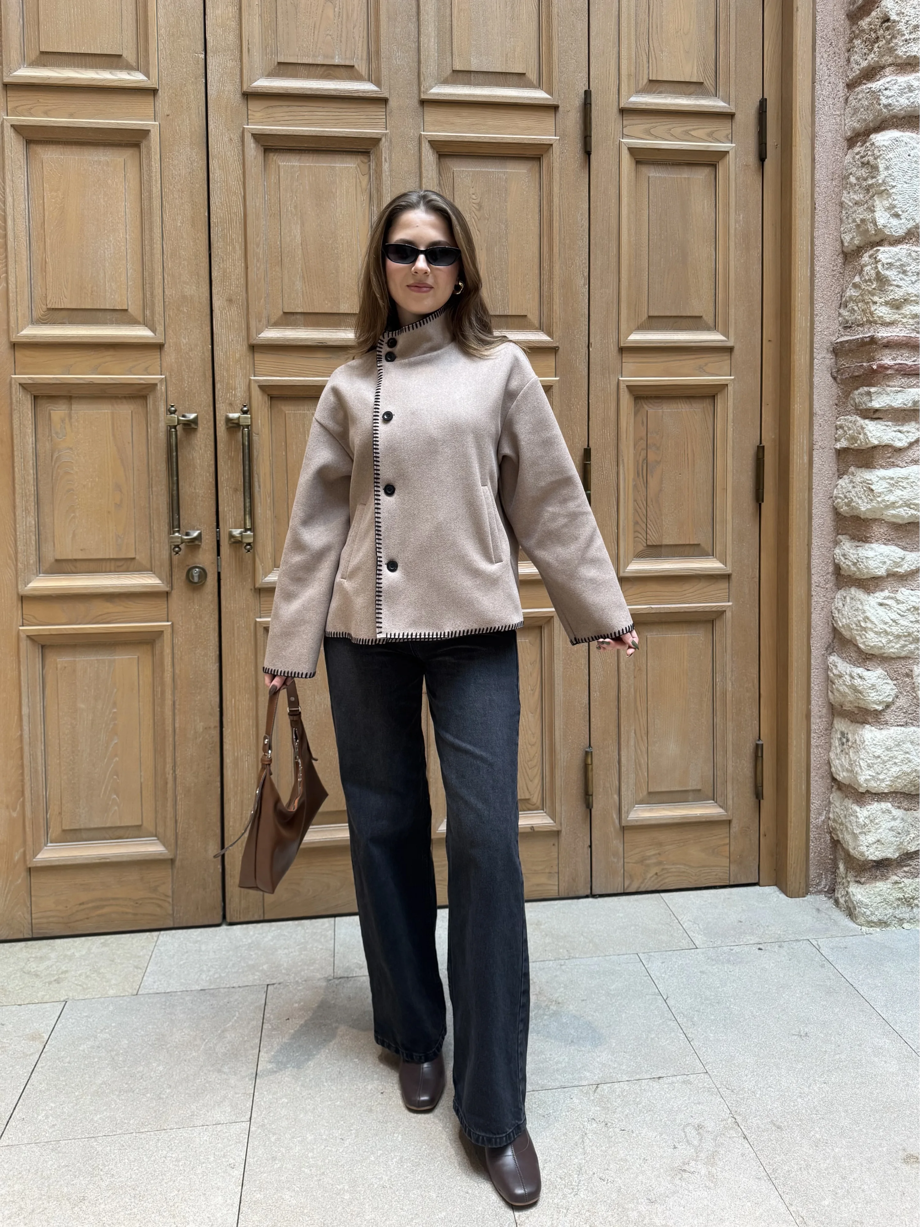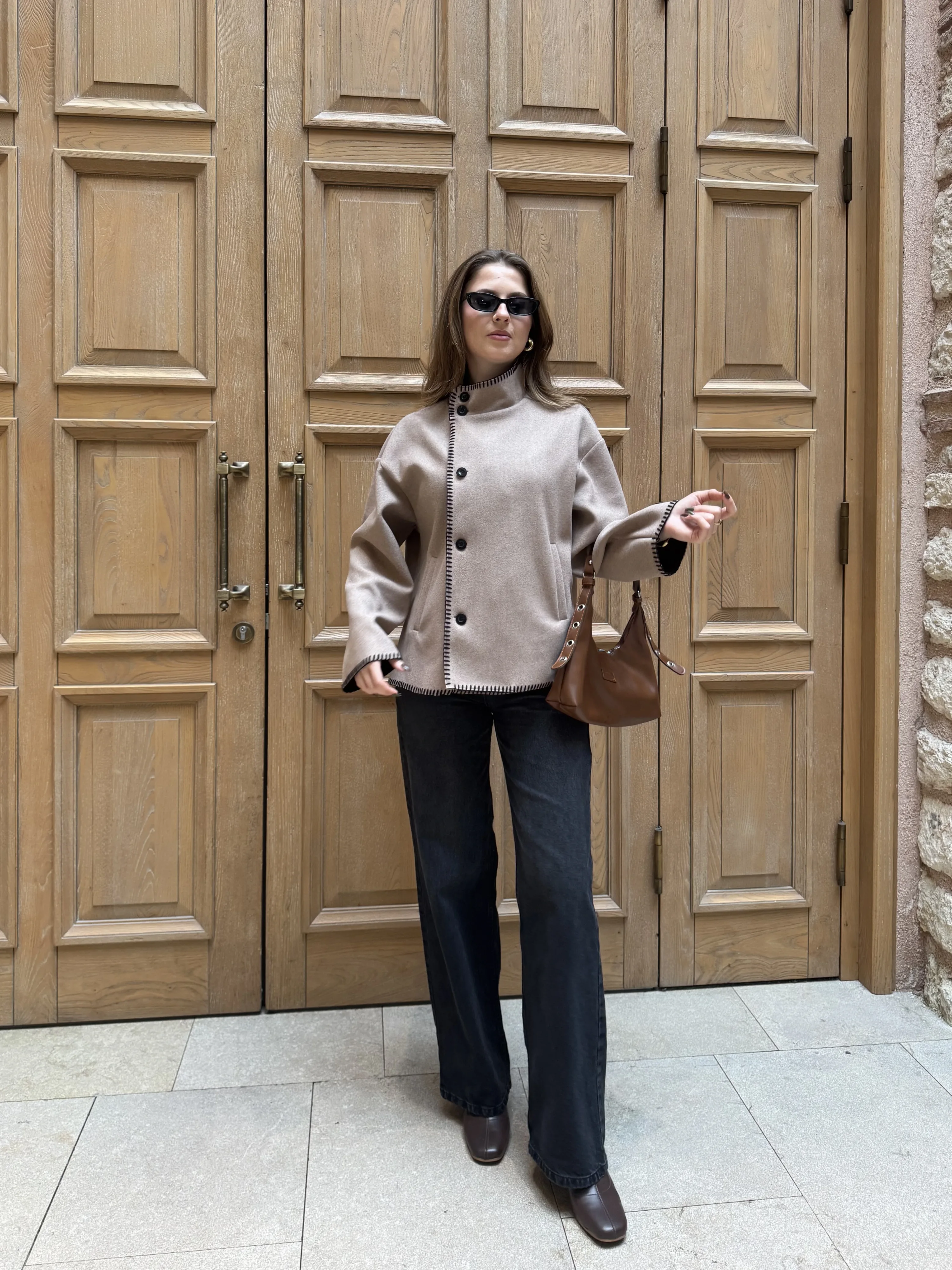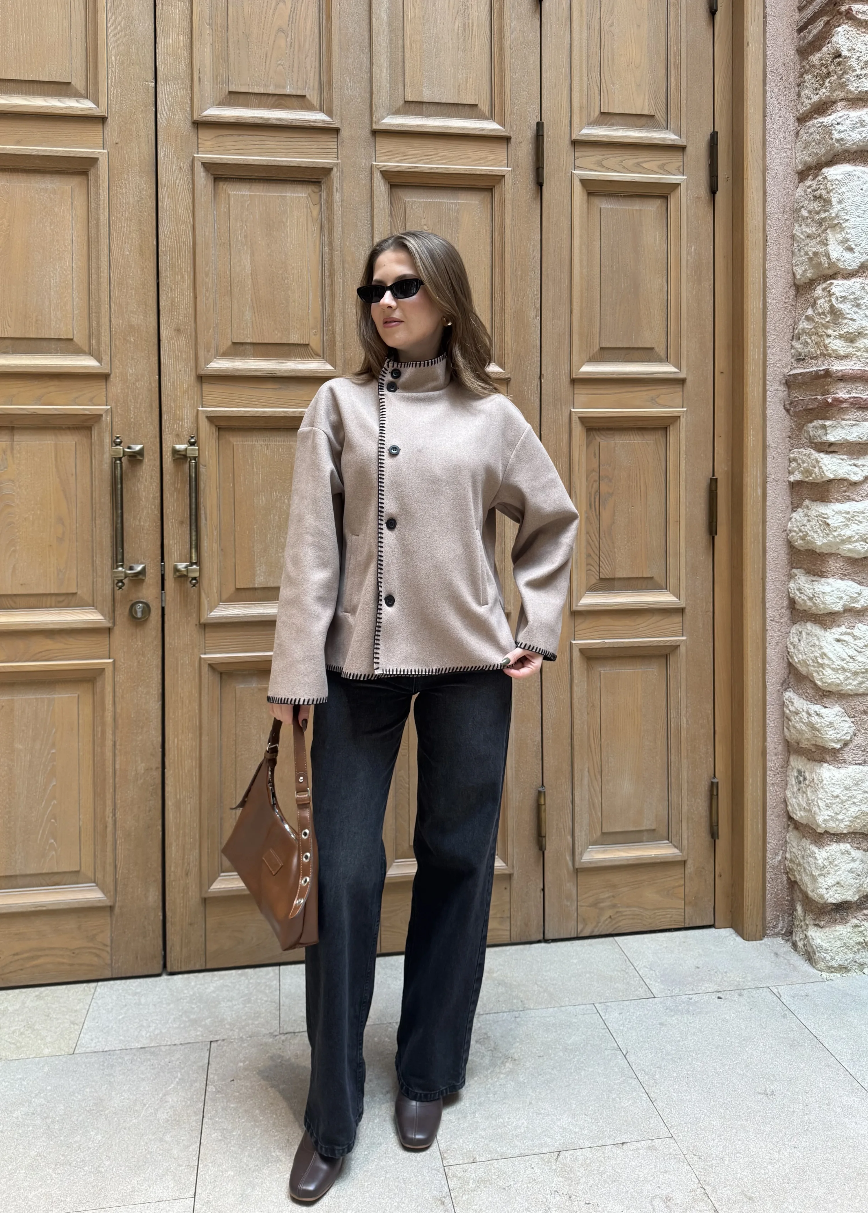 Vizon Çoban Dikişli Kaşe Düğmeli Kaşe Hırka
