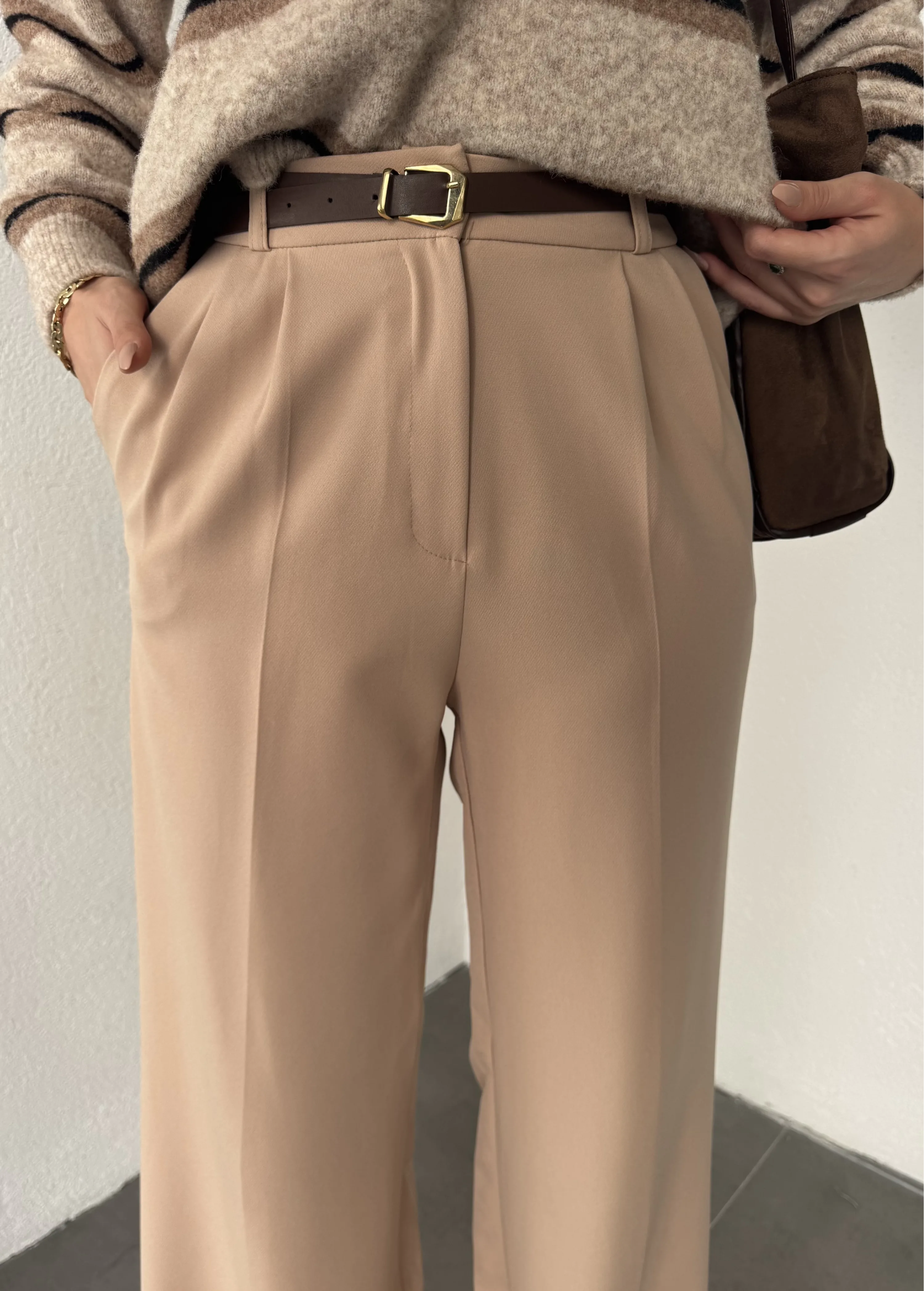 Pileli Tam Kalıp Bel Oturtmalı Geniş Paça Palazzo Pantolon