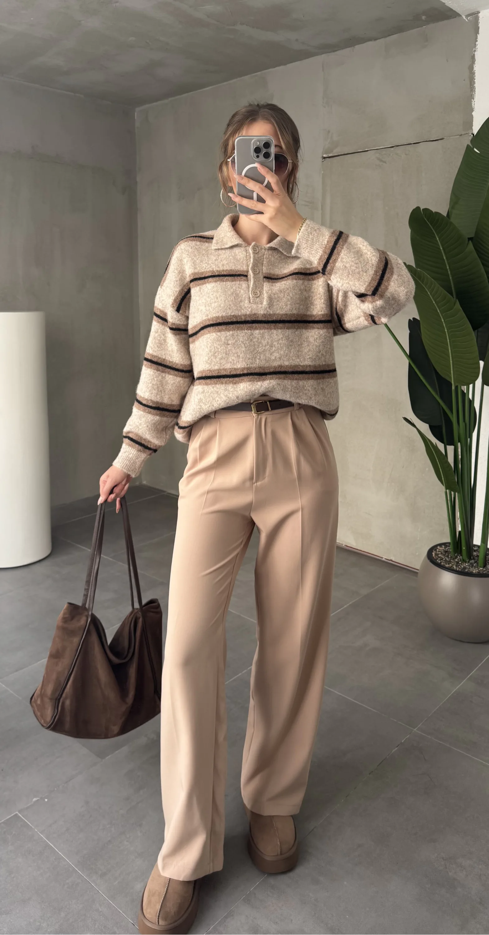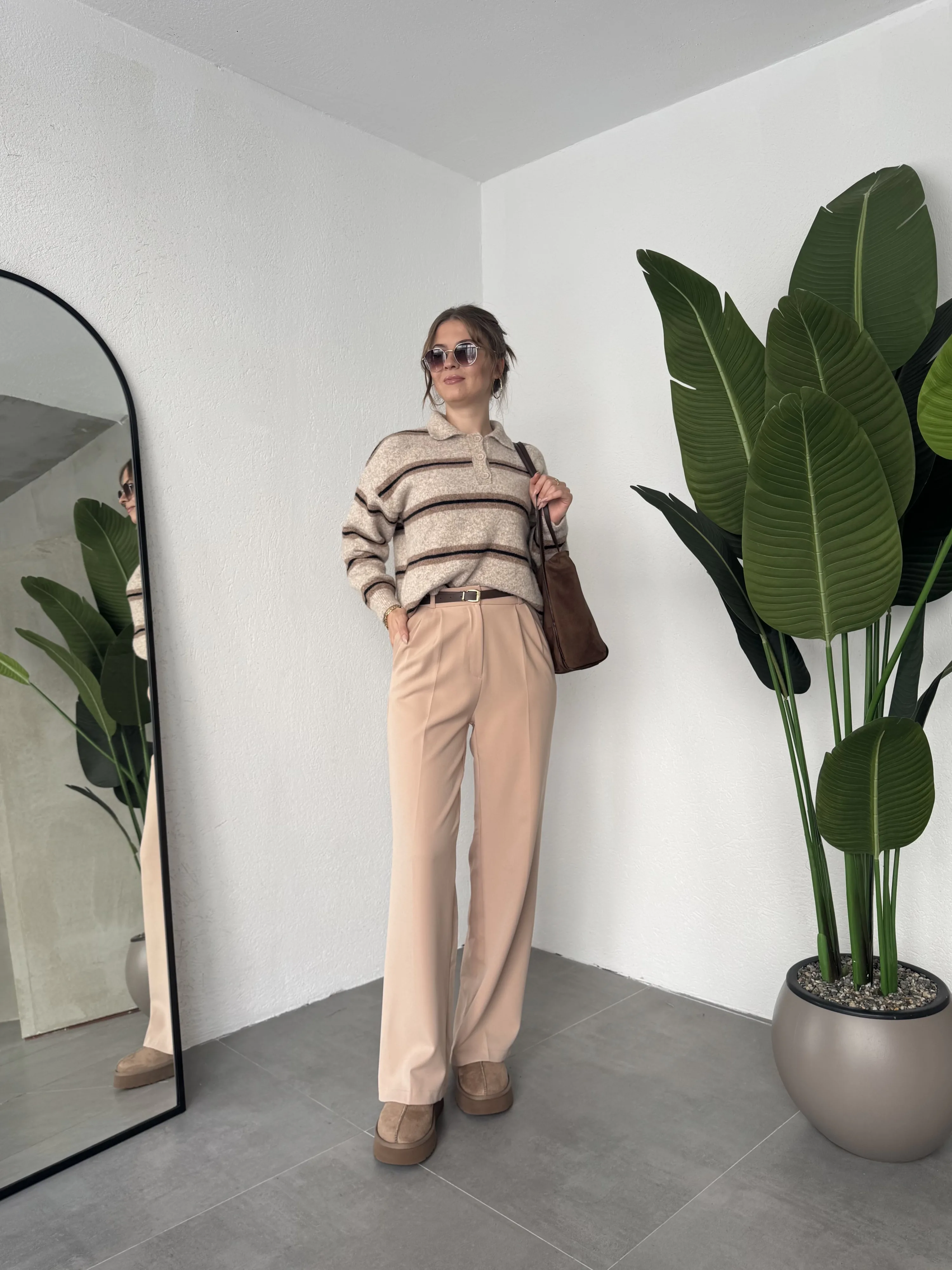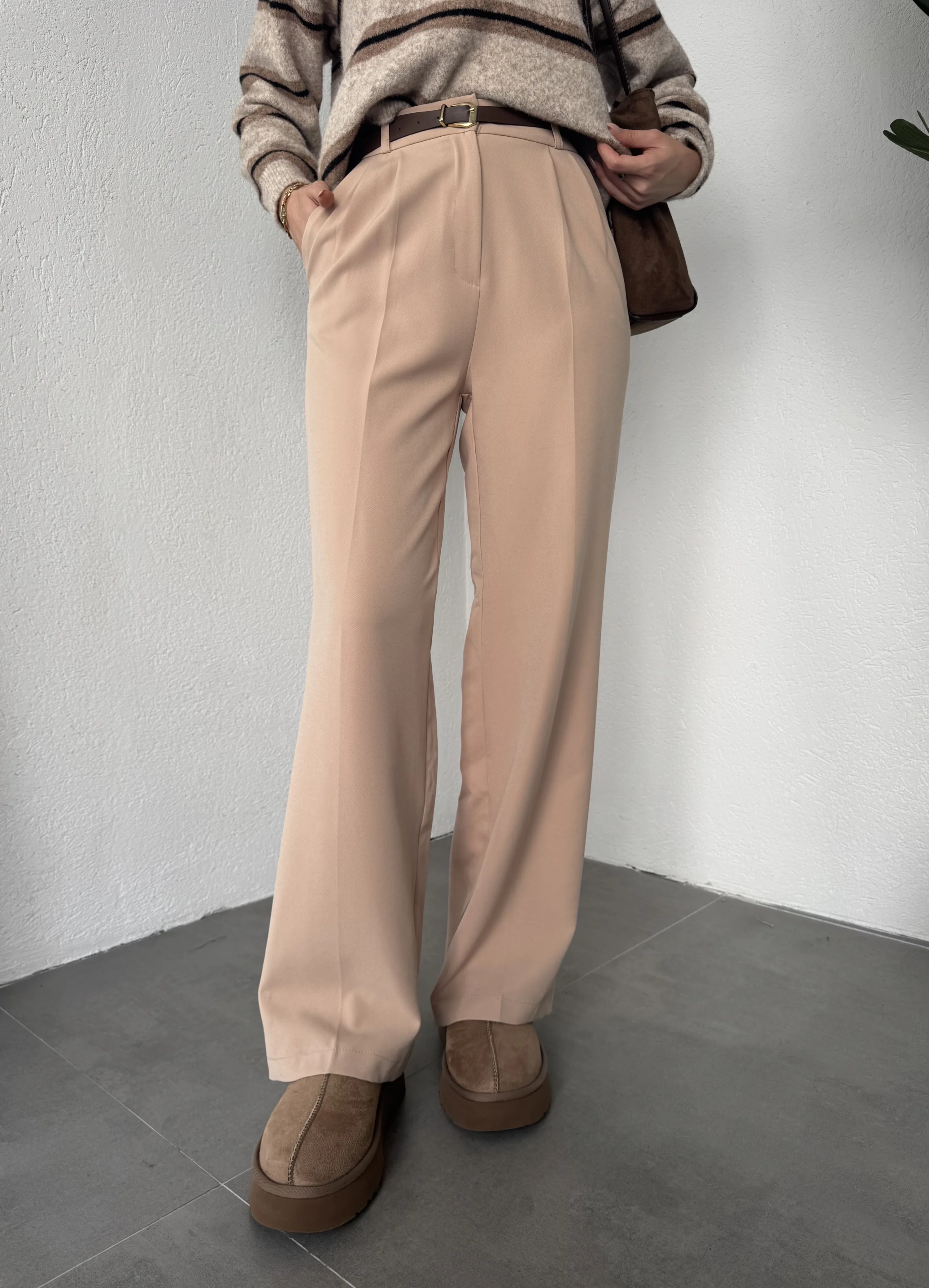 Vizon Pileli Tam Kalıp Bel Oturtmalı Geniş Paça Palazzo Pantolon