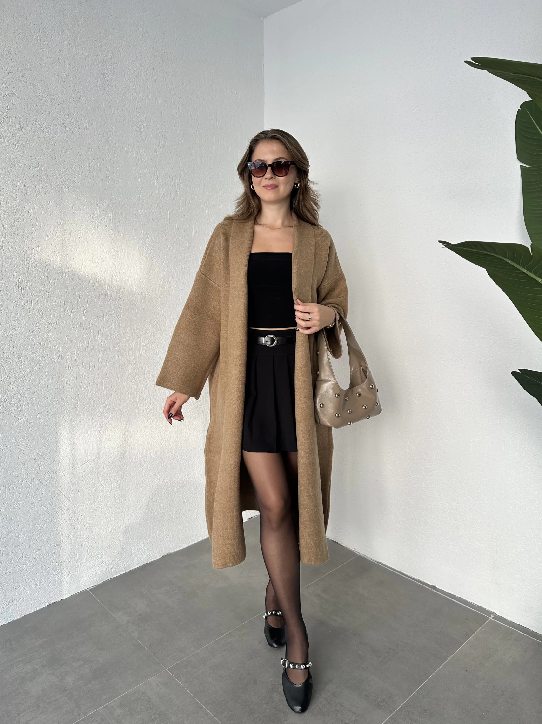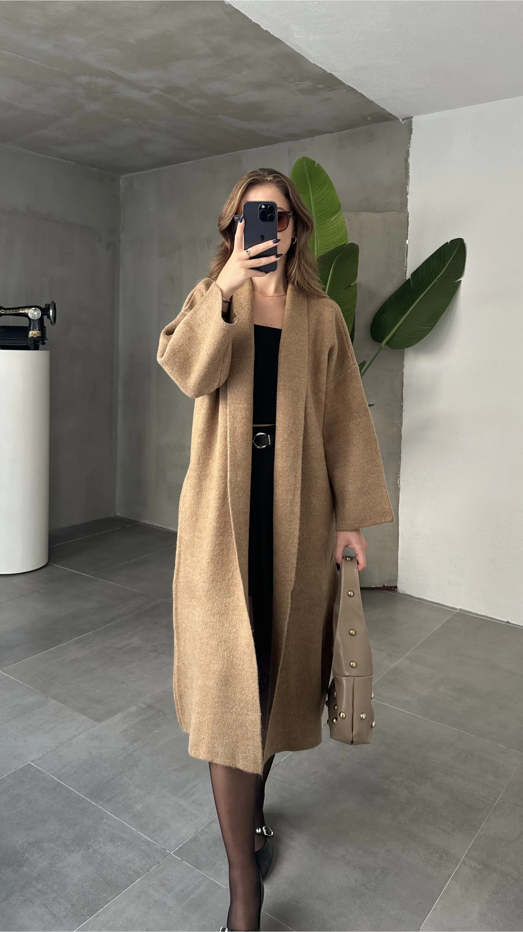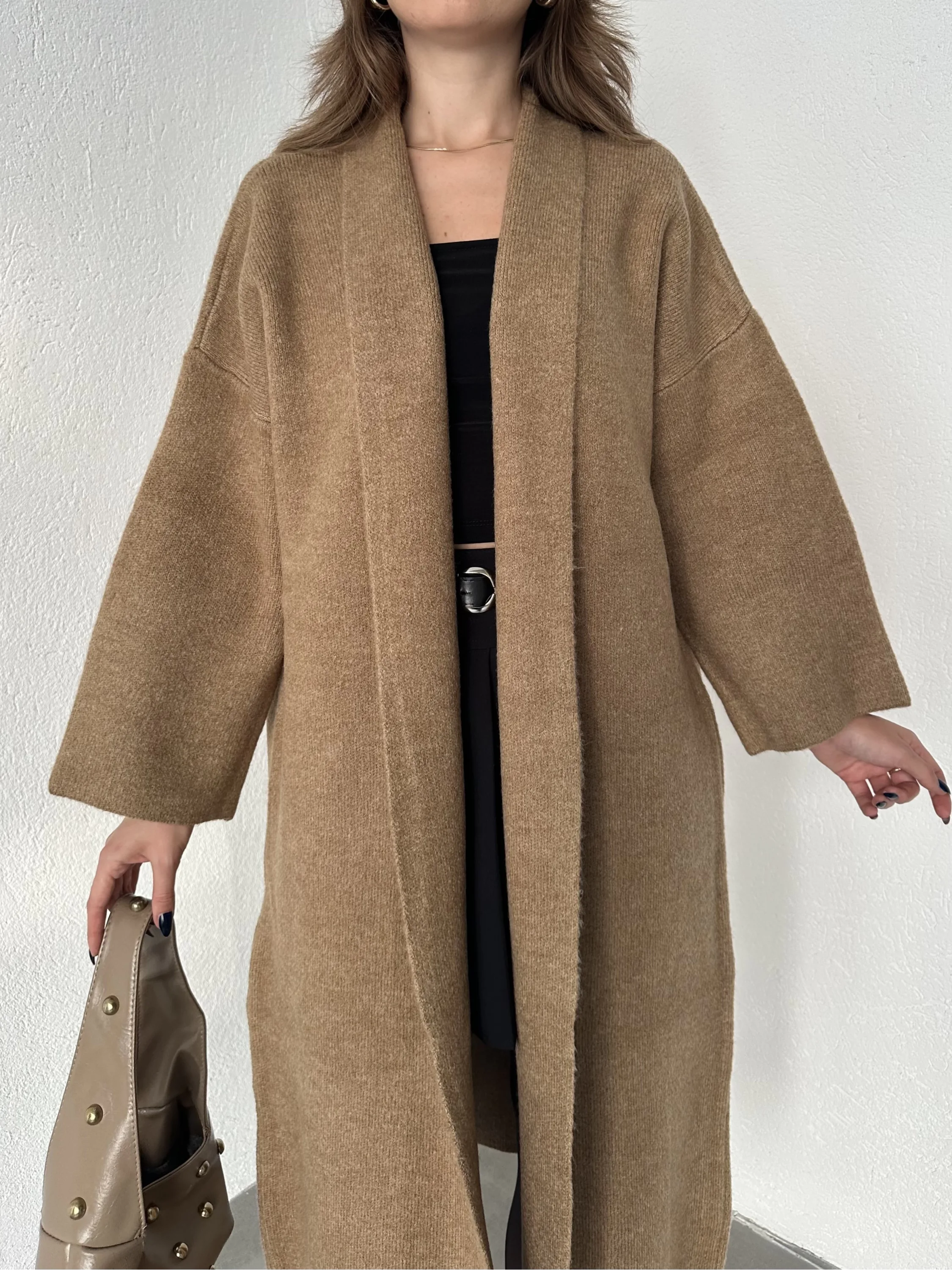 ŞAL YAKA TAM BOY UZUN SALAŞ OVERSİZE TRİKO HIRKA